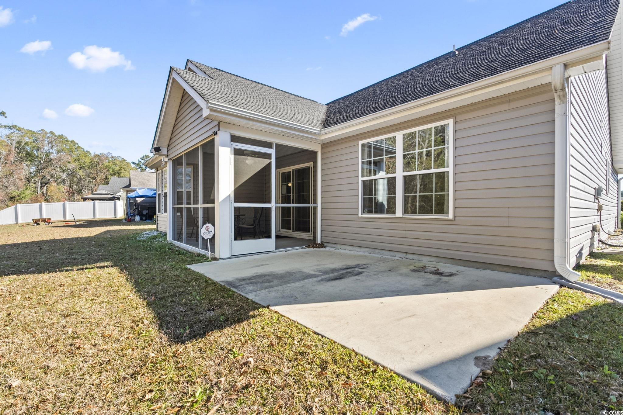 Welcome to 209 Foxpath Loop, a pristine single-level 3-bedroom, 2-bath home located in the desirable Silver Creek community of Socastee in Myrtle Beach. Built in 2017 and maintained with exceptional care, this property feels like a model home and sits on a premium lot that backs up to peaceful wooded views-offering privacy and a serene backdrop you'll appreciate every day. The moment you enter, you'll notice the bright and open layout, enhanced by vaulted ceilings and a flowing split-bedroom design that provides both comfort and functionality. The kitchen has been thoughtfully upgraded with quality cabinetry, a deep stainless-steel sink, pendant-lit breakfast bar, pantry, and a completely new set of sleek black appliances, including a refrigerator, range, and dishwasher. The adjoining dining space transitions smoothly into the spacious living area, all tied together with low-maintenance LVP flooring. The primary suite is generously sized and features a tray ceiling, walk-in closet, ceiling fan, and its own private bath with a tub/shower combination, single-bowl vanity, and linen closet. Two additional bedrooms offer plenty of versatility-perfect for family, guests, or a home office setup-each equipped with ceiling fans and ample closet storage. Outdoor living is just as enjoyable, thanks to the screened-in porch that overlooks a large backyard and concrete patio area. With no neighbors directly behind the home, you'll enjoy a rare sense of privacy while still being minutes away from everything you need. Silver Creek places you in a prime location just off Highway 707, close to Market Common, Myrtle Beach Airport, Surfside Beach, and Murrells Inlet, with easy access to Highway 31 for convenient travel across the Grand Strand. The community's low HOA fee includes trash service and access to the outdoor pool. Move-in ready and exceptionally well cared for, this home offers the ideal blend of comfort, location, and value. Be sure to schedule your private showing-homes like this one don't come around often!