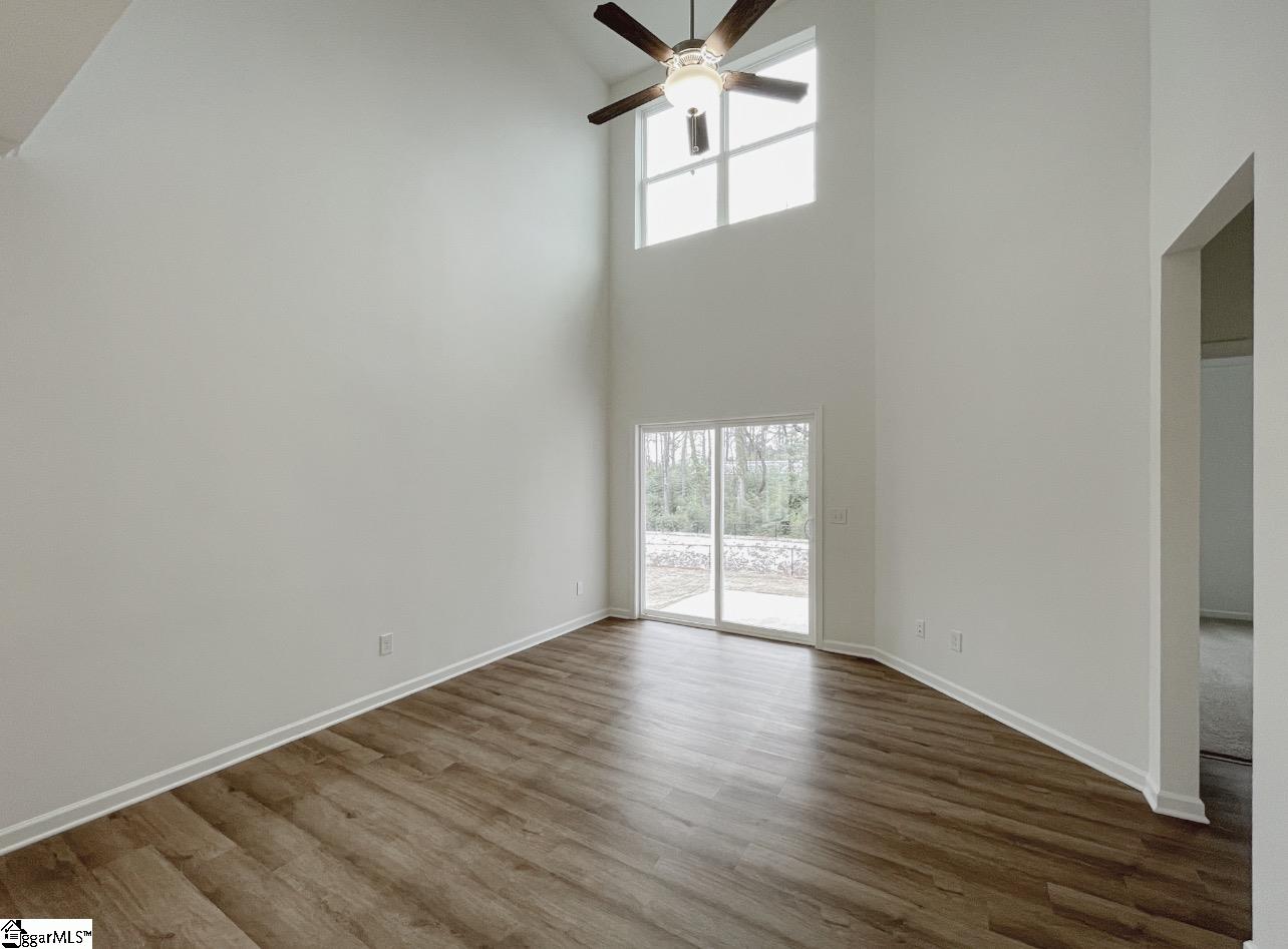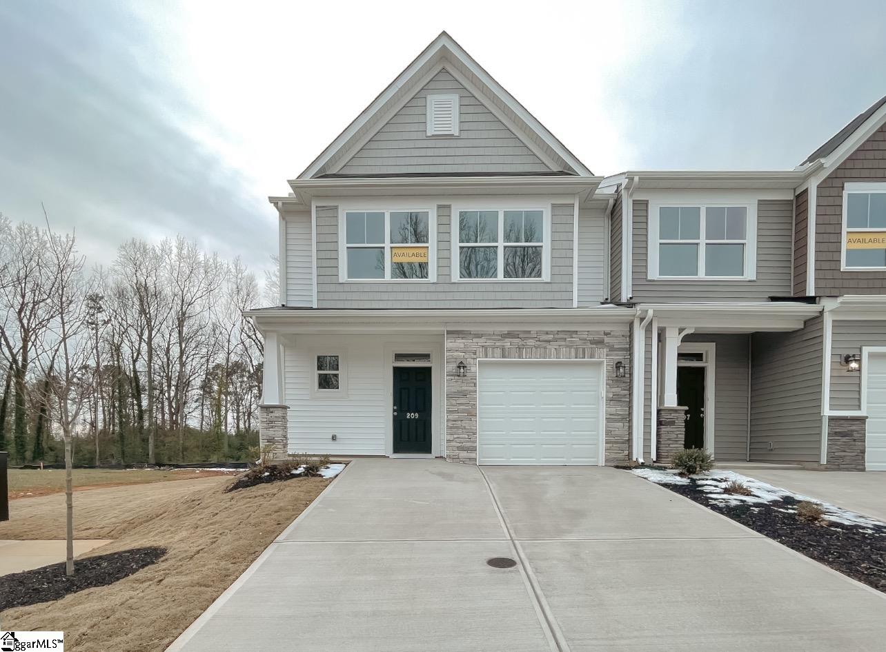 New construction featuring 3 bedrooms, 2.5 baths, and a 1-car garage. The main level includes a defined foyer, kitchen, dining area, and a two-story great room with abundant natural light. The primary suite is located on the main floor and includes a tiled walk-in shower, dual sinks, and a walk-in closet. The kitchen offers LED lighting, upgraded cabinetry, pendant light prewires, quartz countertops, and stainless steel appliances. Upstairs includes 2 additional bedrooms, a full bath, open loft, and a 9x18 flex room. EVP flooring is installed in main living areas, with carpet in the bedrooms. Additional features include a rear covered porch, structured wiring, built-in pest control system, and a finished garage with electrical outlets and lighting.