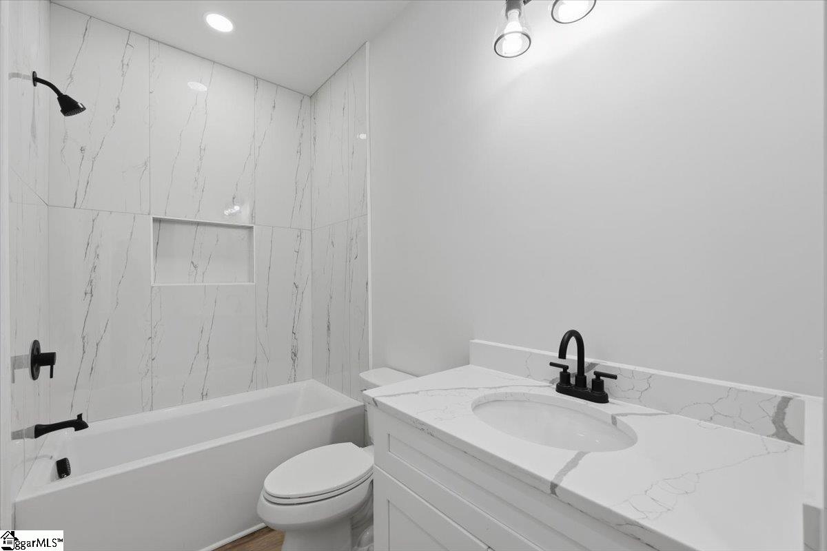 Welcome to 209 Springdale Avenue in Greer, SC, an exceptional new construction residence where modern design meets timeless elegance, located less than 1 mile from charming Downtown Greer. This thoughtfully crafted home features 3 bedrooms, 2.5 bathrooms, and approximately 2,071 square feet of beautifully designed living space. Abundant windows flood the home with natural light, enhancing the bright, open floor plan ideal for both everyday living and gracious entertaining. The kitchen is a statement of style and function, showcasing quartz countertops, custom soft-close cabinetry, and seamless connectivity to the main living areas. A ventless fireplace anchors the living room, creating a warm and inviting atmosphere to unwind at day’s end. Designed with entertaining in mind, the kitchen opens effortlessly to the formal dining room and extends to the covered back porch, perfect for al fresco dining and effortless indoor-outdoor living. Throughout the home, low-maintenance, sustainable finishes—including low-E windows, concrete plank exterior, luxury vinyl plank flooring, and ceramic tile—offer enduring beauty and ease of care. The expansive owner’s suite serves as a private sanctuary, highlighted by a cathedral tray ceiling, striking millwork accent wall, and serene design elements throughout. The spa-inspired bathroom features dual vanities, a generous walk-in shower with a rainfall shower head & separate body sprayer (mirrors and glass enclosure to be installed). Primary suite includes an adjoining sitting room or office, an oversized walk-in closet, and tranquil ambiance completes this luxurious retreat. Outdoor living is equally impressive with three private balconies and porches, ideal for morning coffee or evening relaxation, all set on a generous 0.90-acre lot that provides privacy and space to enjoy. A detached workshop with a garage door conveys with the property as-is, where-is. With thoughtful details, quality craftsmanship, and a peaceful setting, this Greer residence stands as a remarkable expression of refined new construction living.