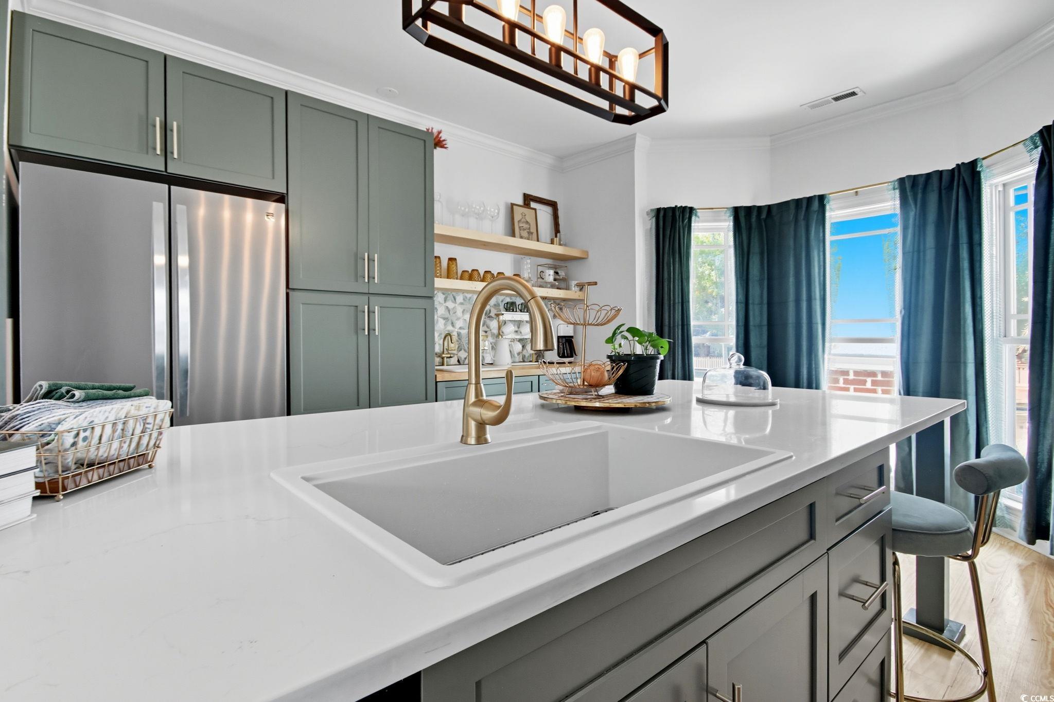 Welcome to 21 Craftsman Lane, a beautifully maintained home located in the quiet and serene community of Harmony Township. This four-bedroom, three-bath residence offers both comfort and functionality, starting with the inviting family room where striking hardwood floors and abundant natural light set the tone. The dining area, just off the kitchen, provides plenty of space for family meals or entertaining guests. The newly renovated kitchen is truly the heart of the home, featuring butcher block countertops, a stunning 12-foot granite center island with additional bar seating, stainless steel appliances, and thoughtful finishes designed for both cooking and gathering. The main level is anchored by the spacious primary suite, which includes large closets and a well-appointed primary bath. Two additional bedrooms, a full bath, and a convenient laundry room complete the main floor. Upstairs, you’ll find a fourth bedroom with its own full bath, a versatile bonus room, and walk-in attic storage. Harmony Township is a picturesque community situated along the Sampit River, just minutes from historic downtown Georgetown and approximately 45 miles from Mount Pleasant. Square footage is approximate and should be verified by the buyer.