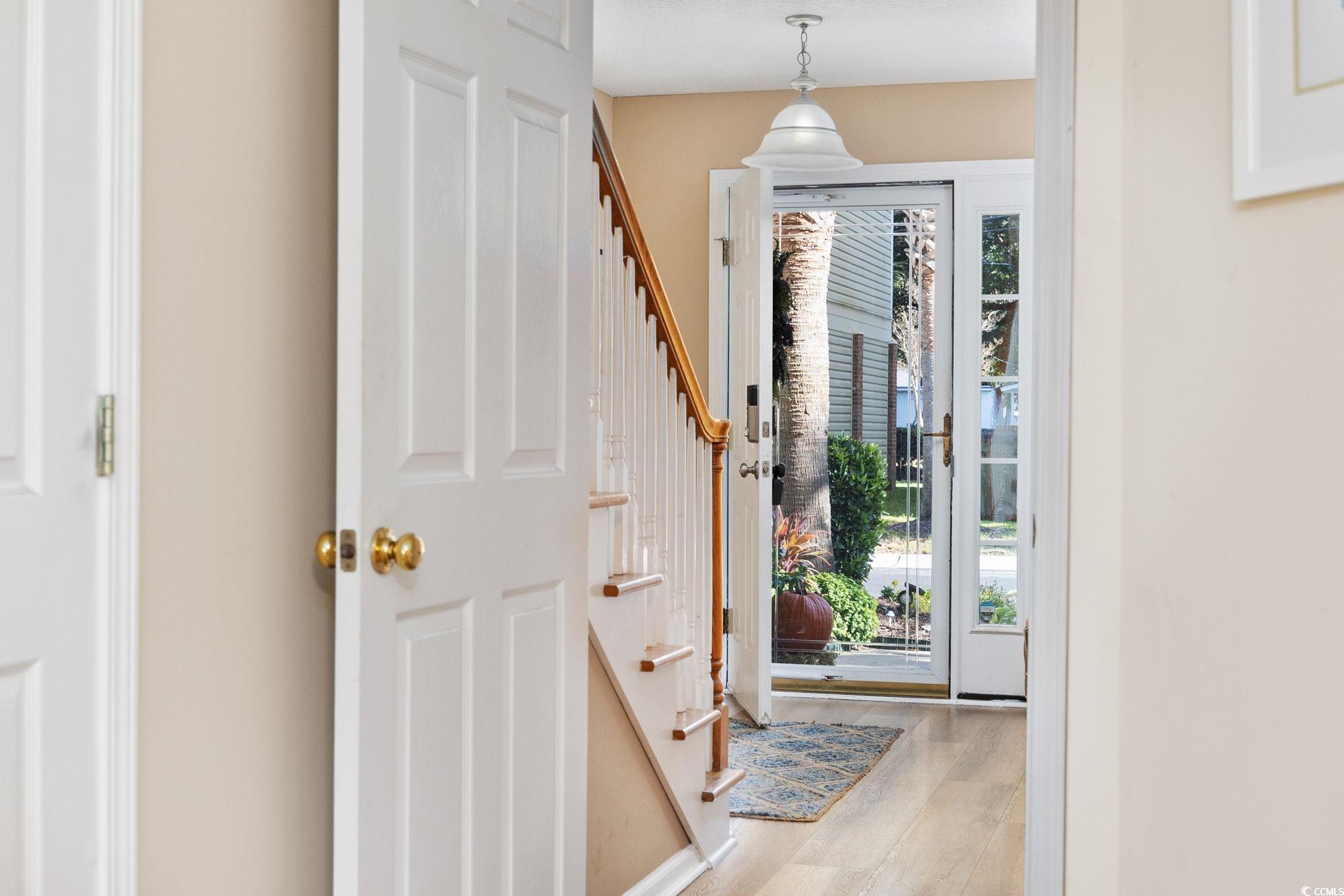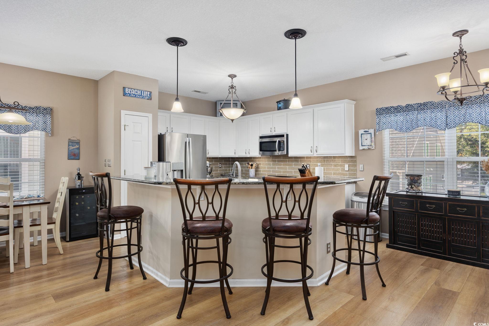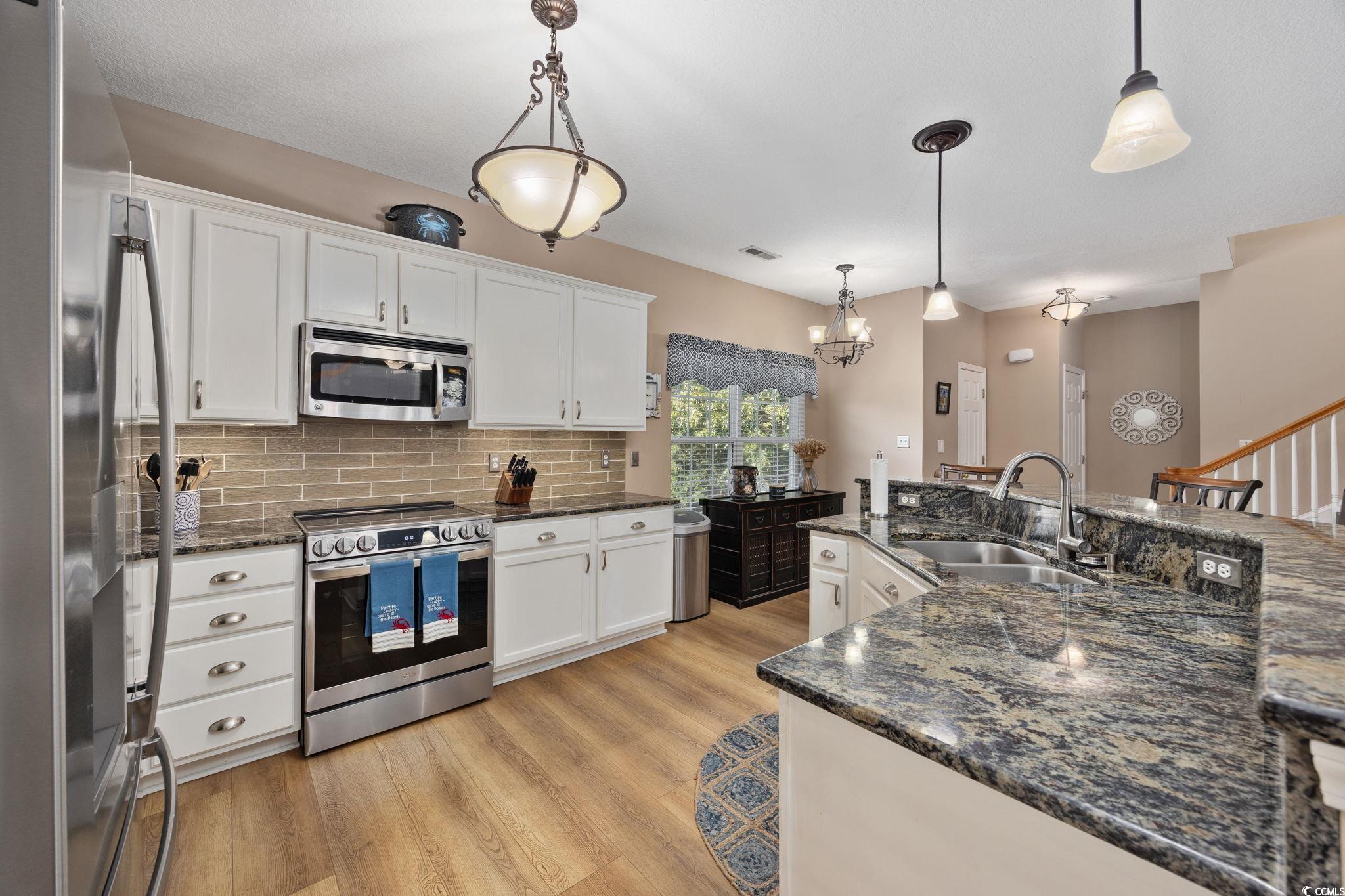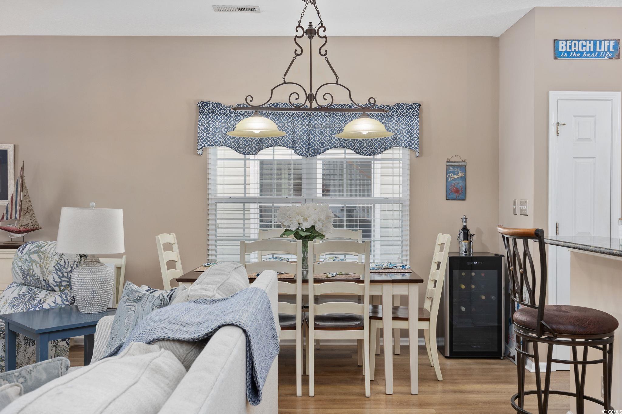 Desirable, East of 17, Surfside Beach community with pool, Just 5 Blocks from the Ocean! Welcome home to this beautifully appointed 4 bedroom, 3.5 bath coastal retreat, perfectly located in one of Surfside Beach’s most desirable neighborhoods, only five blocks from the Atlantic Ocean! The open-concept main level features a spacious living area, a welcoming dining space, and direct access to the charming front porch. The upgraded kitchen impresses with granite countertops, a subway tile backsplash, stainless steel appliances, and a large dining bar... perfect for entertaining. A convenient half bath completes the main floor. Upstairs, you’ll find three bedrooms and two full baths, including a generous primary bedroom with an ensuite bath. The ground level offers a versatile in-law suite with a full bath, plenty of space for bedroom and sitting area with private access to the back patio. This by design is ideal for guests or extended family. The entry foyer connects to both the interior, entrance stairway and to the oversized two-car garage, which includes a small workshop area. The garage refrigerator and all main kitchen appliances, plus washer/ dryer convey with the home. New roof 2023. Enjoy outdoor living with the community pool located just two doors down, or take a short walk or golf cart ride to the beach to experience the best of coastal living! This home checks all the boxes... perfect as a primary residence or a second home by the sea. Home is occupied... please do not disturb. Show by appointment only. Some furniture may be negotiable.