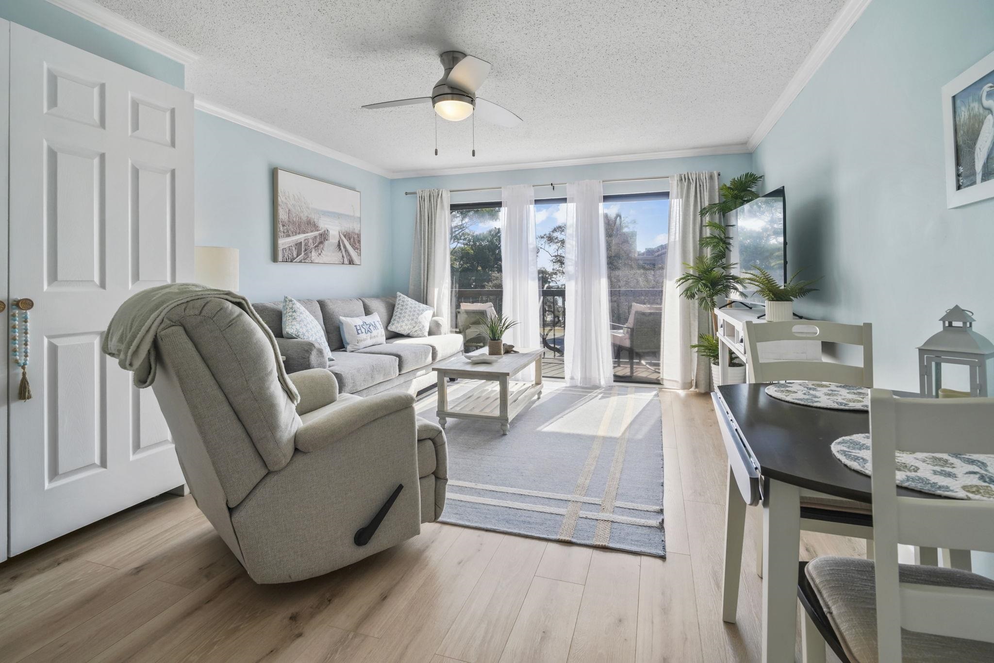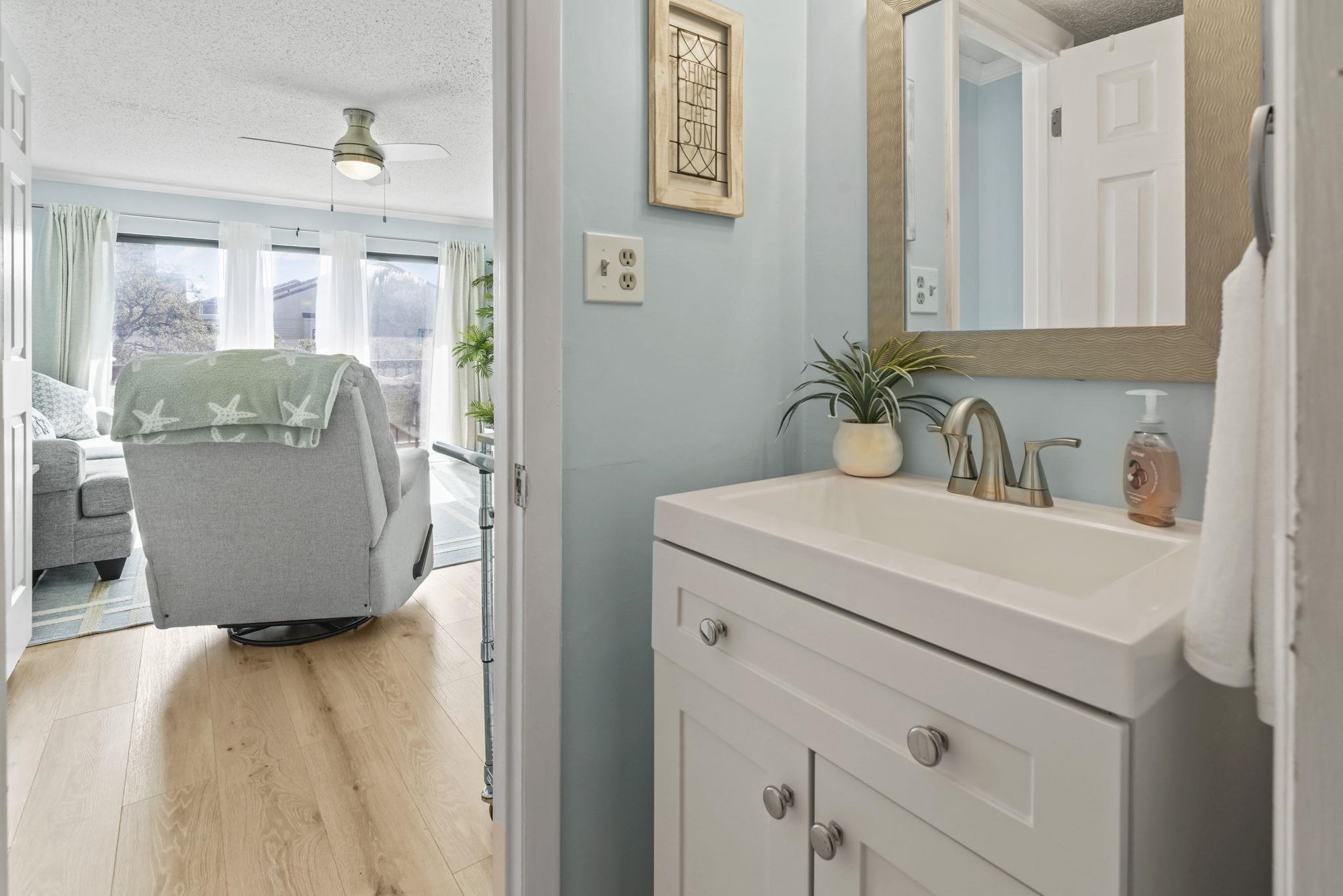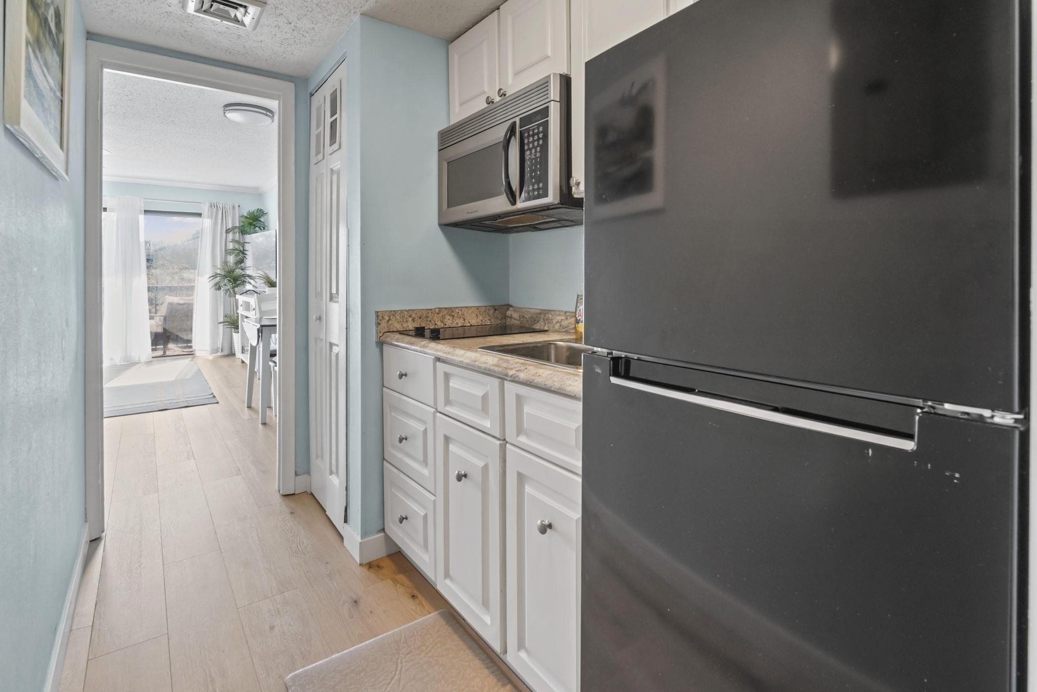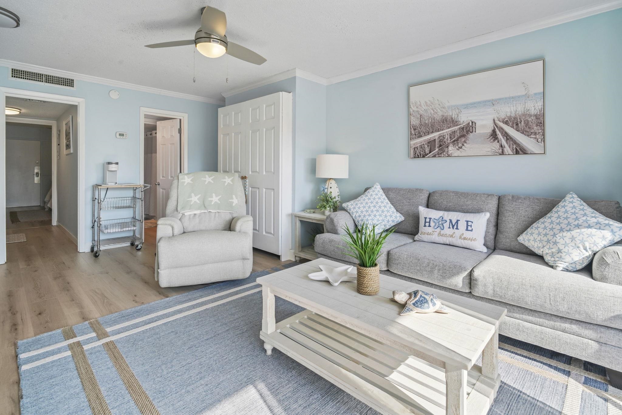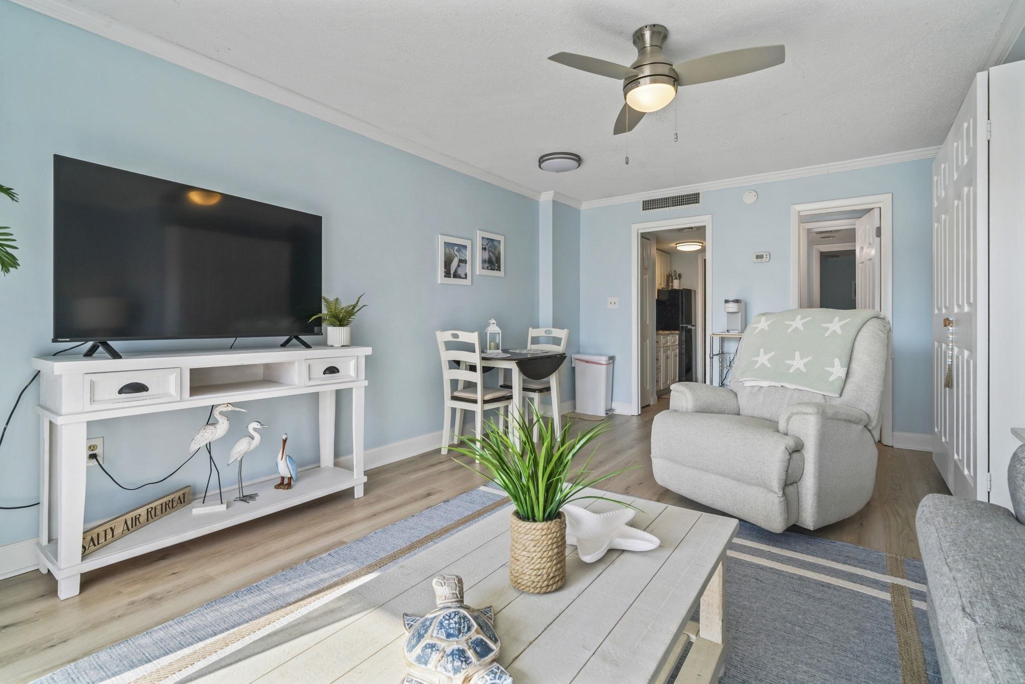 Enjoy coastal living in this lovely updated 1-bedroom condo in Ocean Dunes Tower 1. This unit features all new paint and trim along with new waterproof laminate wood flooring throughout. New ceiling fans and light fixtures enhance the space. The bathrooms have been updated with comfort height toilets, new vanities, and a deep soaking shower/tub combo ideal for unwinding after a day by the ocean. The property is being offered with new living room and bedroom furniture, making it move in ready. To top it off, the sandy beach and waves of the ocean are only steps away and wonderful restaurants and shopping are just around the corner. Perfect as a primary, secondary, or an investment property. Schedule your private showing today!