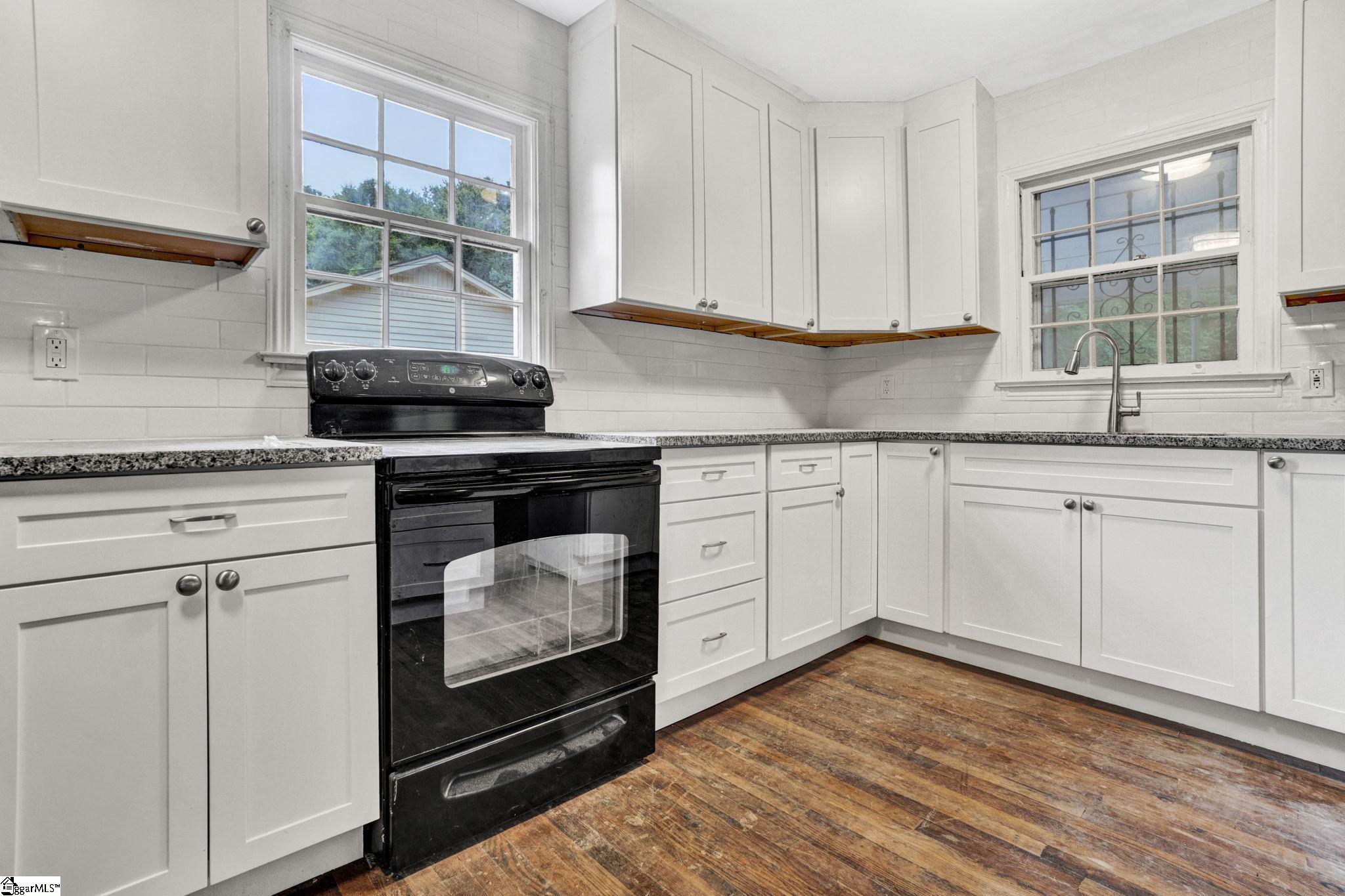 Welcome home to this beautifully updated brick ranch, full of charm and character and nestled in an established neighborhood with incredible curb appeal. Step inside to discover a thoughtfully renovated interior featuring original gleaming hardwood floors and a large bay window that fills the living room with natural light. There's ample space off of the living room for a formal dining room, perfect for hosting. The completely new kitchen is a dream—featuring stainless steel appliances, granite countertops, and custom cabinetry—all opening to a cozy den with a striking exposed brick fireplace. Just beyond, a bright sunroom offers a peaceful spot to unwind and includes a tucked-away laundry closet for added convenience. Down the hall, you'll find three spacious bedrooms and two stunning full bathrooms that are true showstoppers. Featuring refinished original tile, they flawlessly blend retro 1960s style with modern updates—ideal for vintage design lovers. Situated on a level ¼-acre lot with mature trees and a fully usable backyard, this home has both style and substance. Plus, a convenient location just minutes from Conestee Park and Nature Preserve, vibrant Downtown Greenville, and Prisma Hospital. This is a true gem - schedule your showing today!
