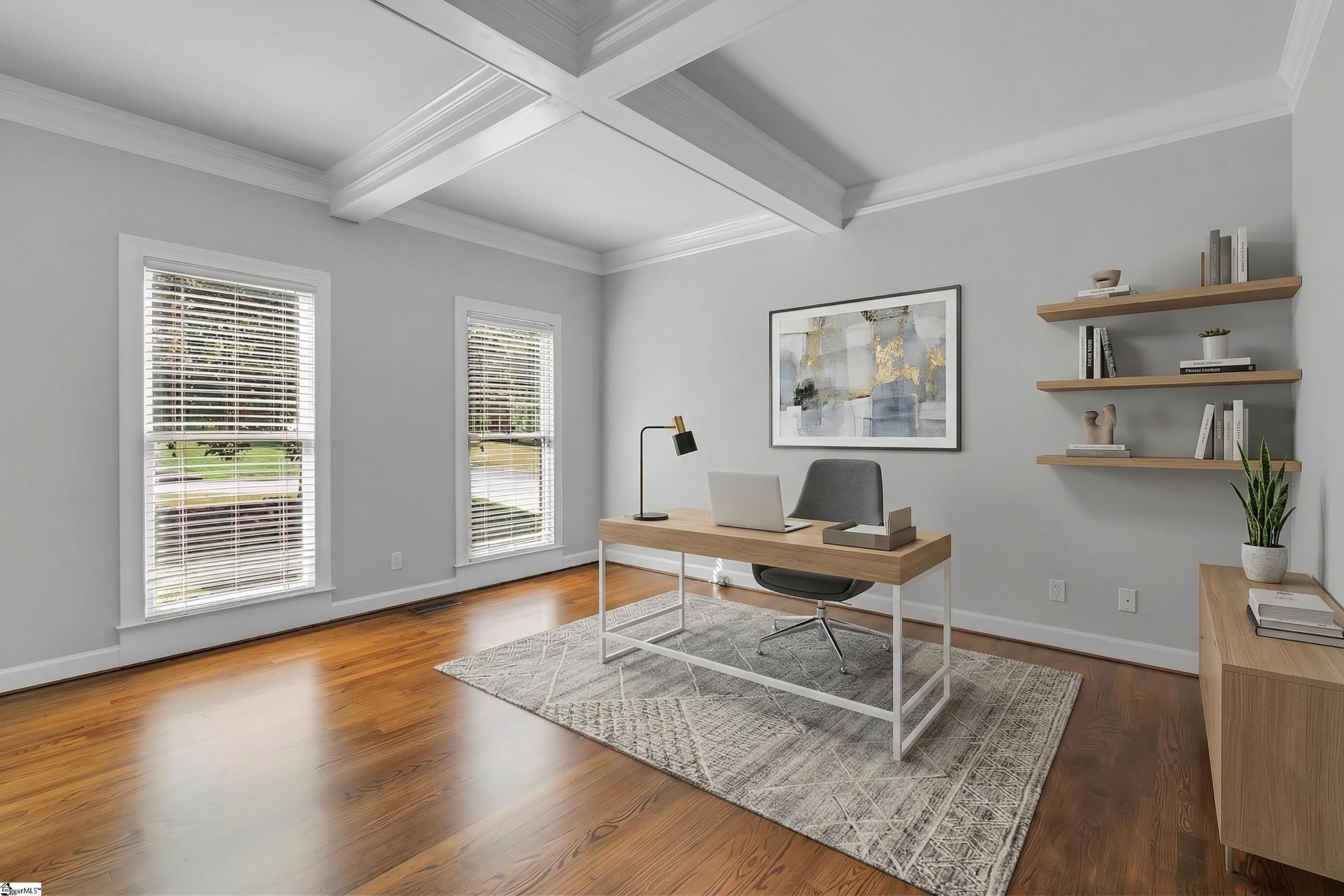 Welcome to 210 Ledgewood Way, located in Stone Creek at Pebble Creek and perfectly positioned on the #2 hole of the Linkside. This beautiful full brick home offers over 3,300 square feet of living space with 5 bedrooms and 3.5 baths, combining space, comfort, and an unbeatable golf course setting. From the moment you arrive, the home showcases outstanding curb appeal with a beautiful, welcoming entrance. Inside, the main level is designed for both everyday living and entertaining, featuring a flexible office or living room space, a large dining room, and a spacious den with a stunning rock fireplace and doors leading to the covered deck. Outdoor living is a highlight, with a covered deck, screened porch, and hot tub - all overlooking the backyard and golf course, creating the perfect setting for relaxing or entertaining guests. Upstairs, all bedrooms are thoughtfully located on the second level, providing privacy and separation from the main entertaining areas. Situated in a friendly neighborhood with highly rated schools, this home is just 15 minutes from downtown Greenville and only minutes from Paris Mountain. Optional pool memberships are available for summer enjoyment, adding even more to the lifestyle this community offers. Don't miss the opportunity to own a golf course home in one of Greenville's most desirable communities!