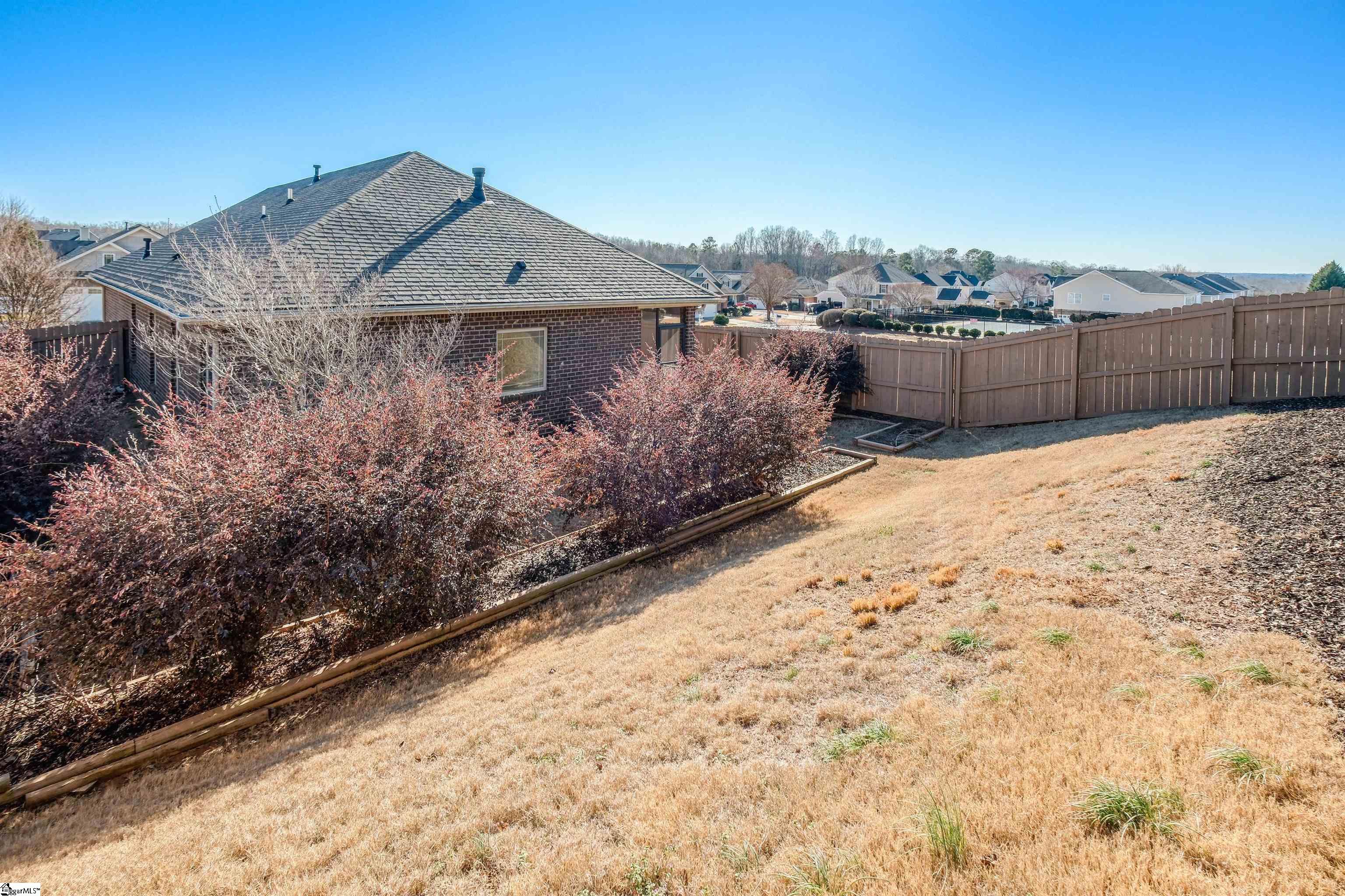 Beautiful one-level, 4-sided brick home offering 1,690 sq ft with 3 bedrooms, 2 baths, and an open floor plan designed for comfortable living. Freshly repainted with new carpet and a fully fenced yard, this home is move-in ready. Step inside to a spacious living area with a cozy gas-log fireplace and bay windows in the dining room, which fill the space with natural light. The kitchen features granite countertops, stainless steel appliances, and a pantry closet for added storage. The main bedroom features a large walk-in closet, a double vanity, and a separate shower, creating a private retreat. Additional features include a walk-in laundry room and generous storage throughout. Outdoor living is a highlight, featuring a screened-in covered patio and an additional uncovered patio, doubling your entertaining space. Conveniently located near shopping, dining, schools, parks, and a hospital, and situated right next to the community pool, this home offers exceptional access to everything you need. Ideally positioned in Simpsonville, just minutes from Fairview Road shopping and dining, with easy access to Interstate 385 and a quick route to Georgia Road for additional retail and commuting convenience. This property feels private. See it for yourself.