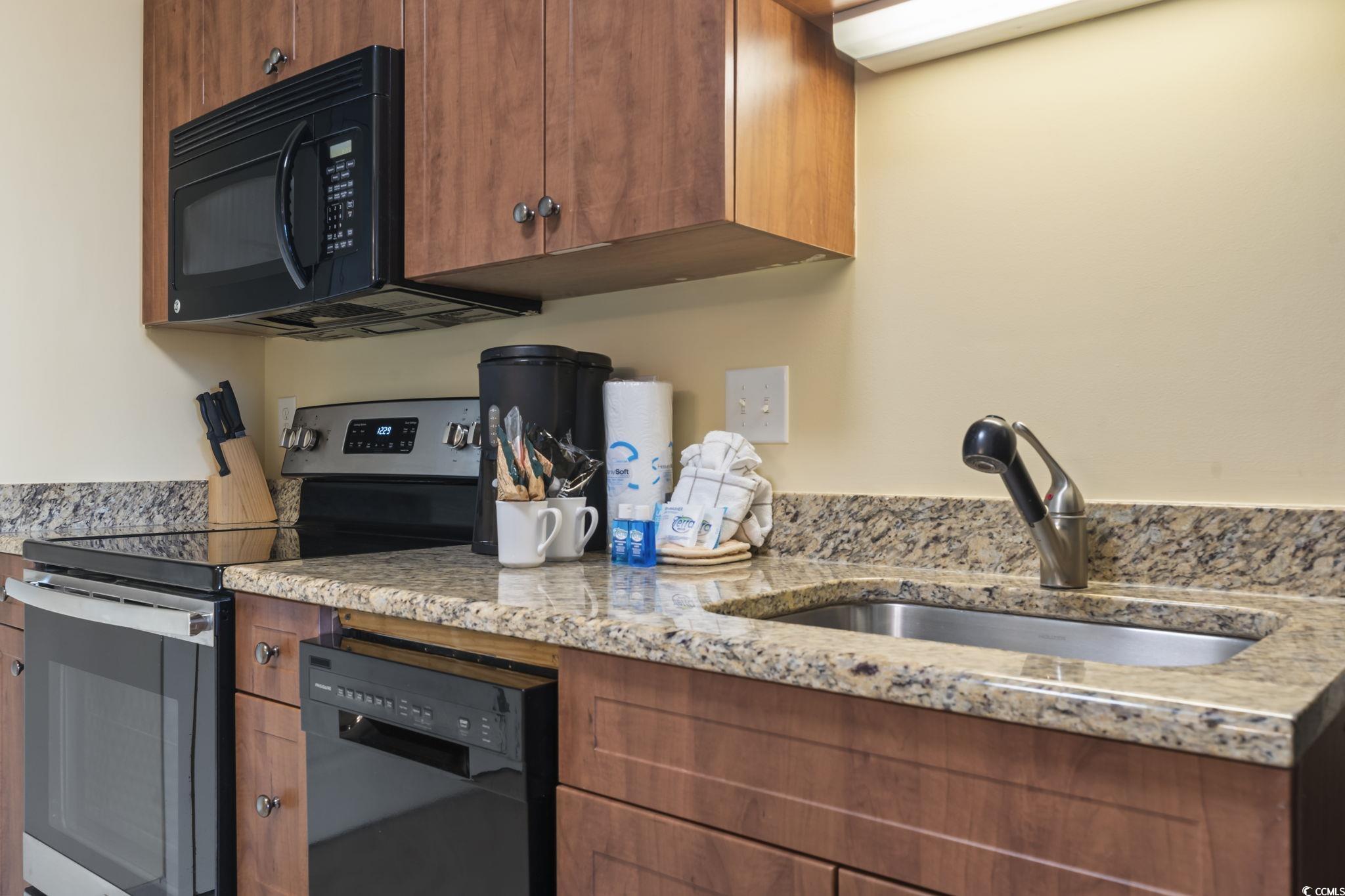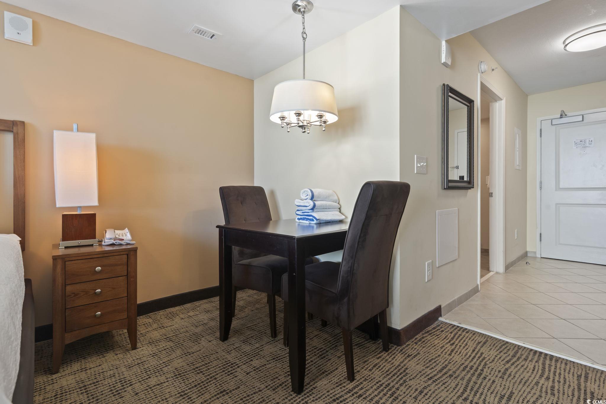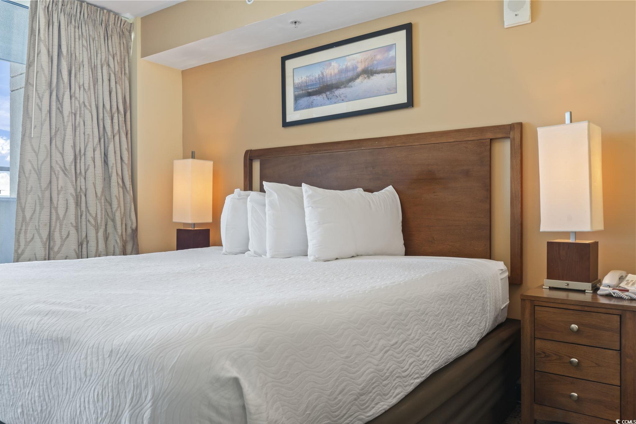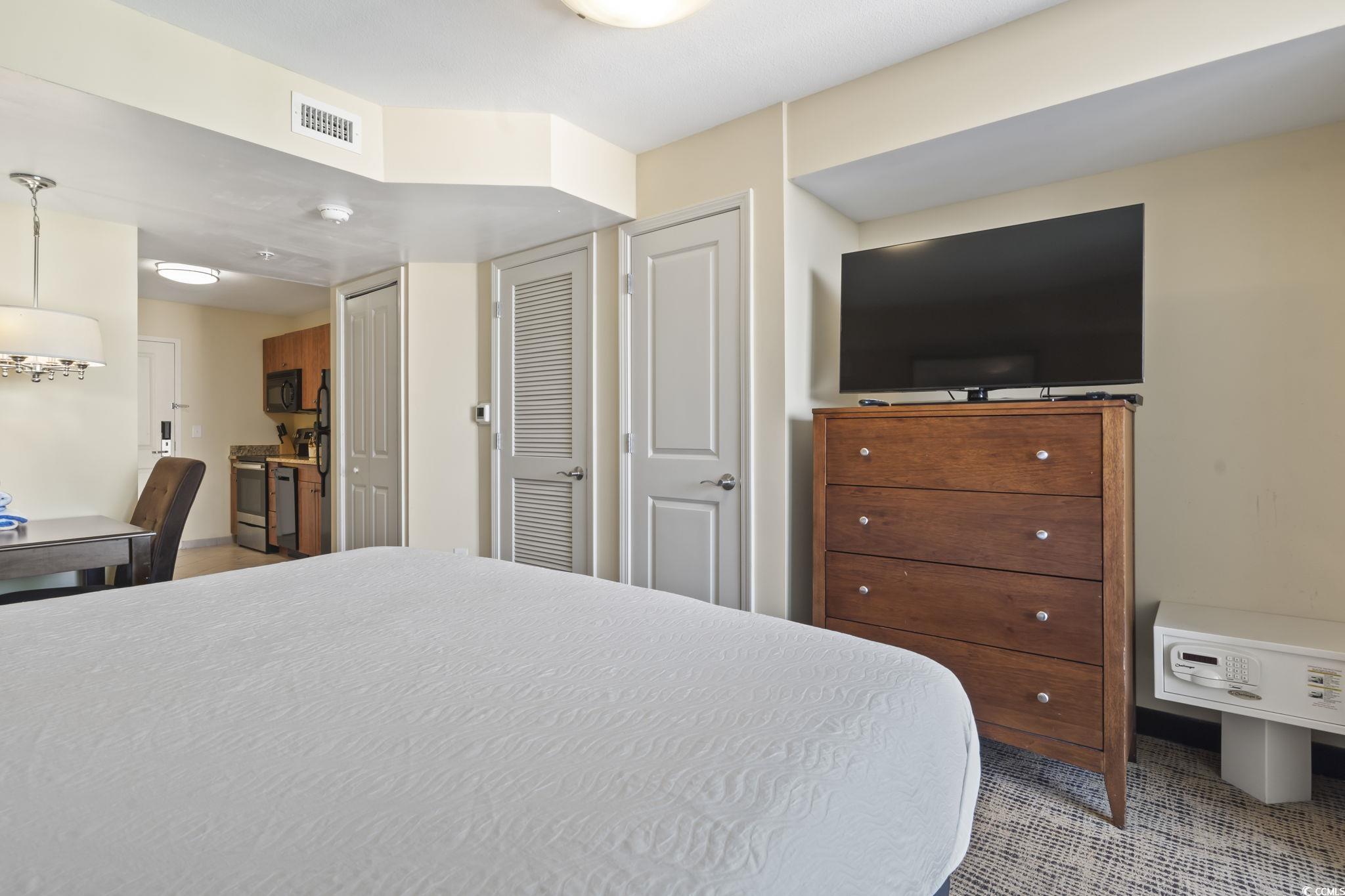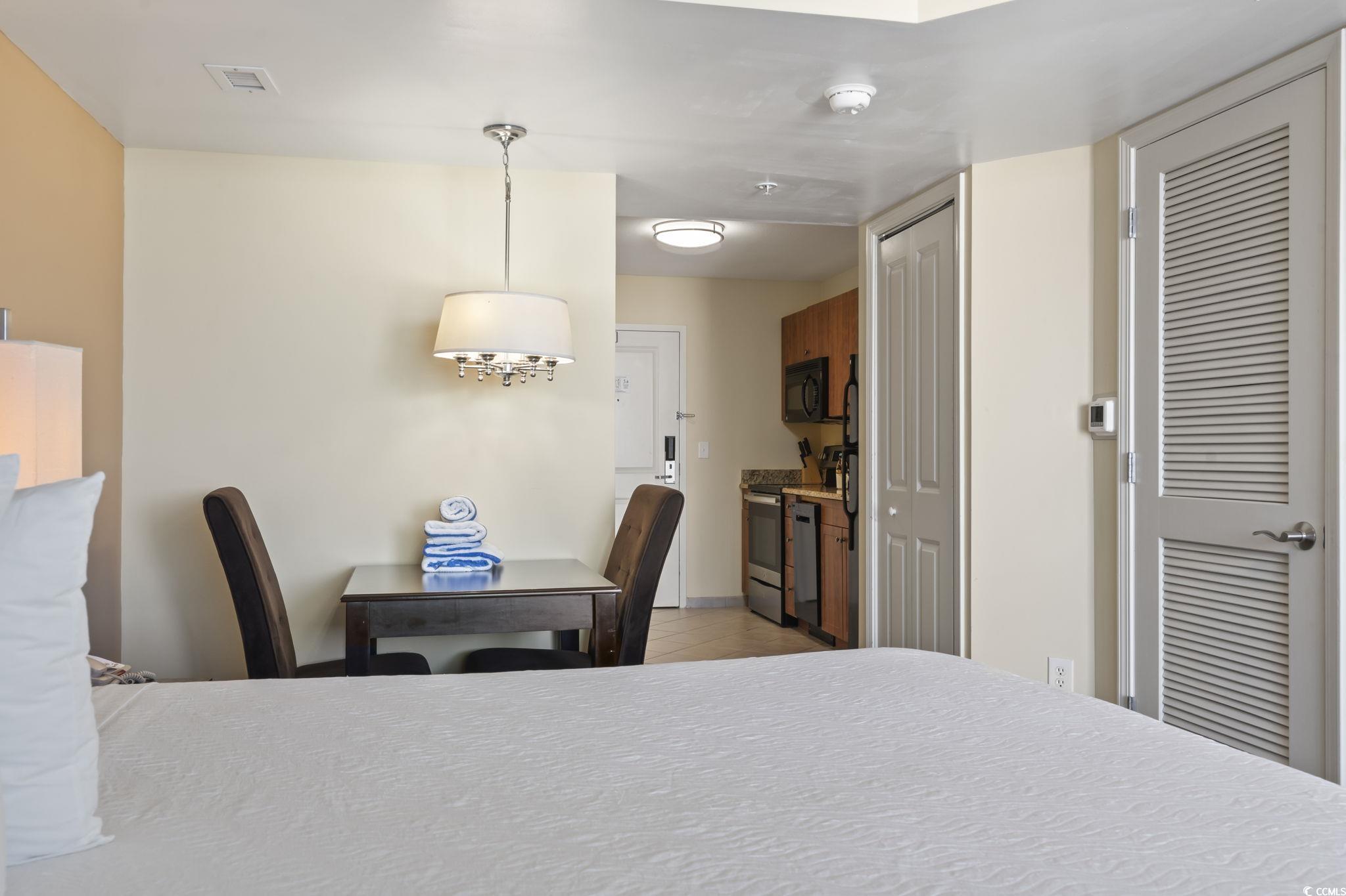 Welcome to Unit 923 at Towers on the Grove, a beautifully maintained efficiency condo located just steps away from the pristine beaches of Cherry Grove in North Myrtle Beach. This charming unit is perfect for those seeking a tranquil coastal retreat with modern conveniences. Inside, you'll find a well-appointed space featuring a full-sized king bed, a spacious kitchen with ample cabinetry, and all the appliances you need to prepare meals with ease. The full bathroom includes a luxurious whirlpool tub, perfect for unwinding after a day at the beach. For added convenience, the unit also comes equipped with its own washer and dryer. As part of the Towers on the Grove community, you'll enjoy an array of resort-style amenities, including an outdoor pool, a relaxing lazy river, a hot tub, a covered heated pool, a playground, and a fitness center. The property's proximity to Cherry Grove's vibrant attractions, such as the Cherry Grove Fishing Pier, local golf courses, unique shopping, and fantastic dining options, ensures there's always something to do. Whether you're searching for a personal beach getaway or a smart investment opportunity, this efficiency unit offers the perfect blend of location, comfort, and value. Don't miss the chance to own your own slice of paradise-schedule your showing today!