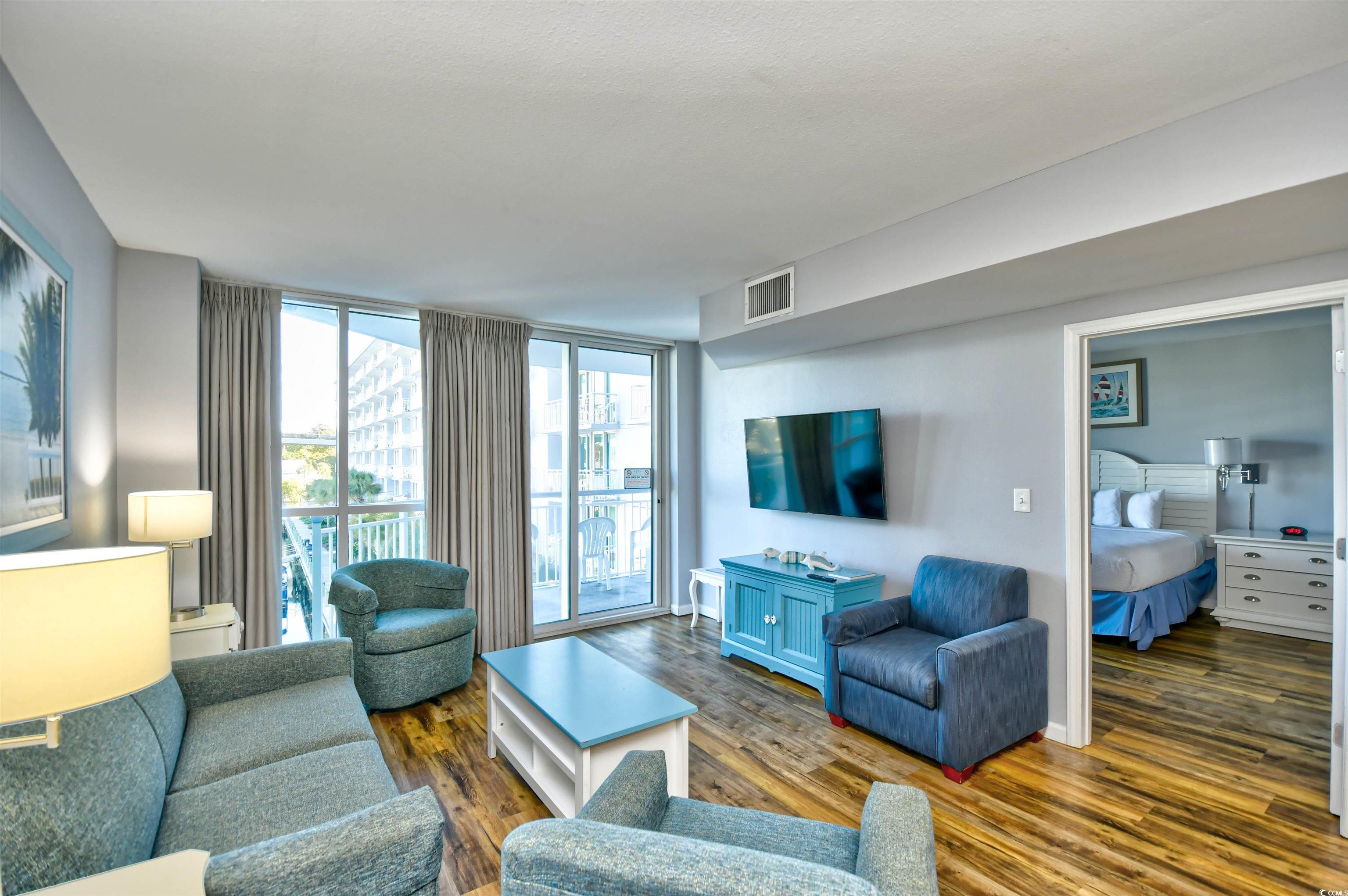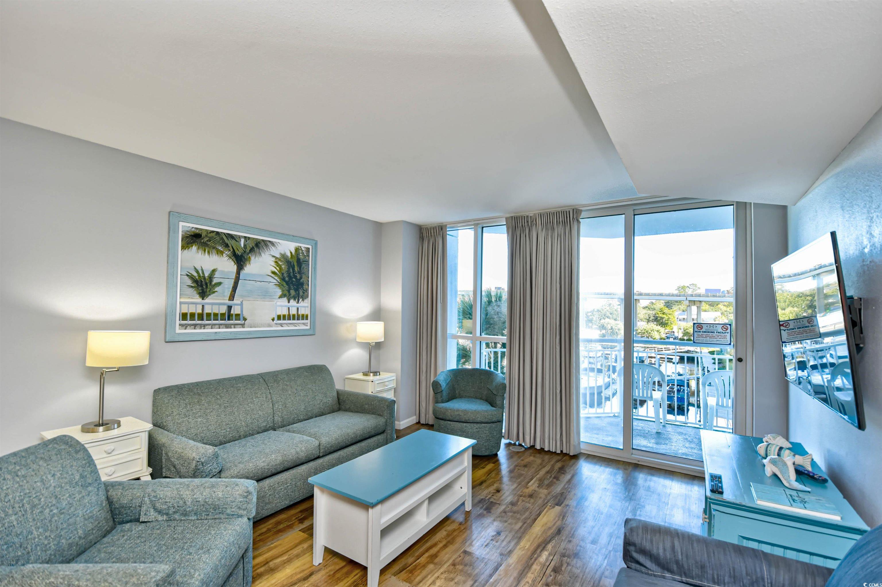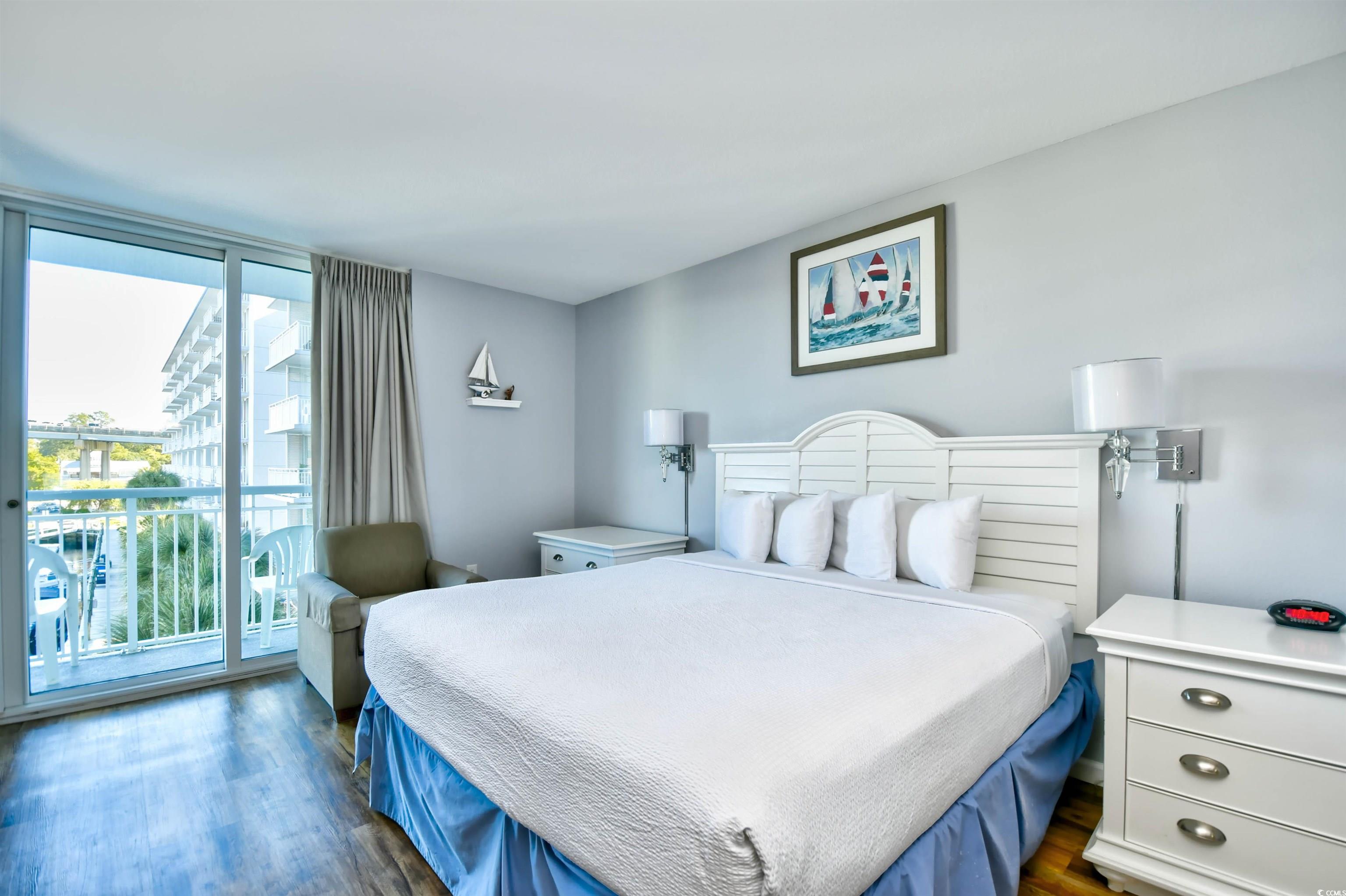 Welcome to your dream coastal getaway! This beautifully updated 2-bedroom, 2-bathroom condo at the sought-after Harbourgate Resort in North Myrtle Beach offers the perfect combination of comfort, style, with Intercoastal Waterway and Marina views. This unit has been renovated to perfection with upgrades galore including designer furnishings, tasteful decor, upgraded kitchen cabinets/countertops/appliances, flooring and more! The living room leads to a private balcony with sweeping views of the Intracoastal Waterway and marina. The kitchen is well-equipped with plenty of counterspace and cabinet space, making meal prep a breeze whether you're here full-time or using it as a vacation retreat. A breakfast bar and dining area offer ample space for dining and entertaining. The primary bedroom is a relaxing sanctuary with access to the balcony overlooking the marina. A second spacious bedroom and a second full bathroom provide comfort and convenience for guests or family members. For added ease, the condo also includes a washer and dryer tucked discreetly into the secondary bathroom. Harbourgate Resort offers an outdoor pool and hot tub that is partially covered. You're just minutes from the beach, shopping, dining, and entertainment, everything North Myrtle Beach has to offer! Whether you're looking for a primary residence, vacation home, or investment property, this move-in ready condo checks all the boxes. Don?t miss your opportunity to own a slice of the coastal lifestyle at Harbourgate! Buyer is responsible for verification