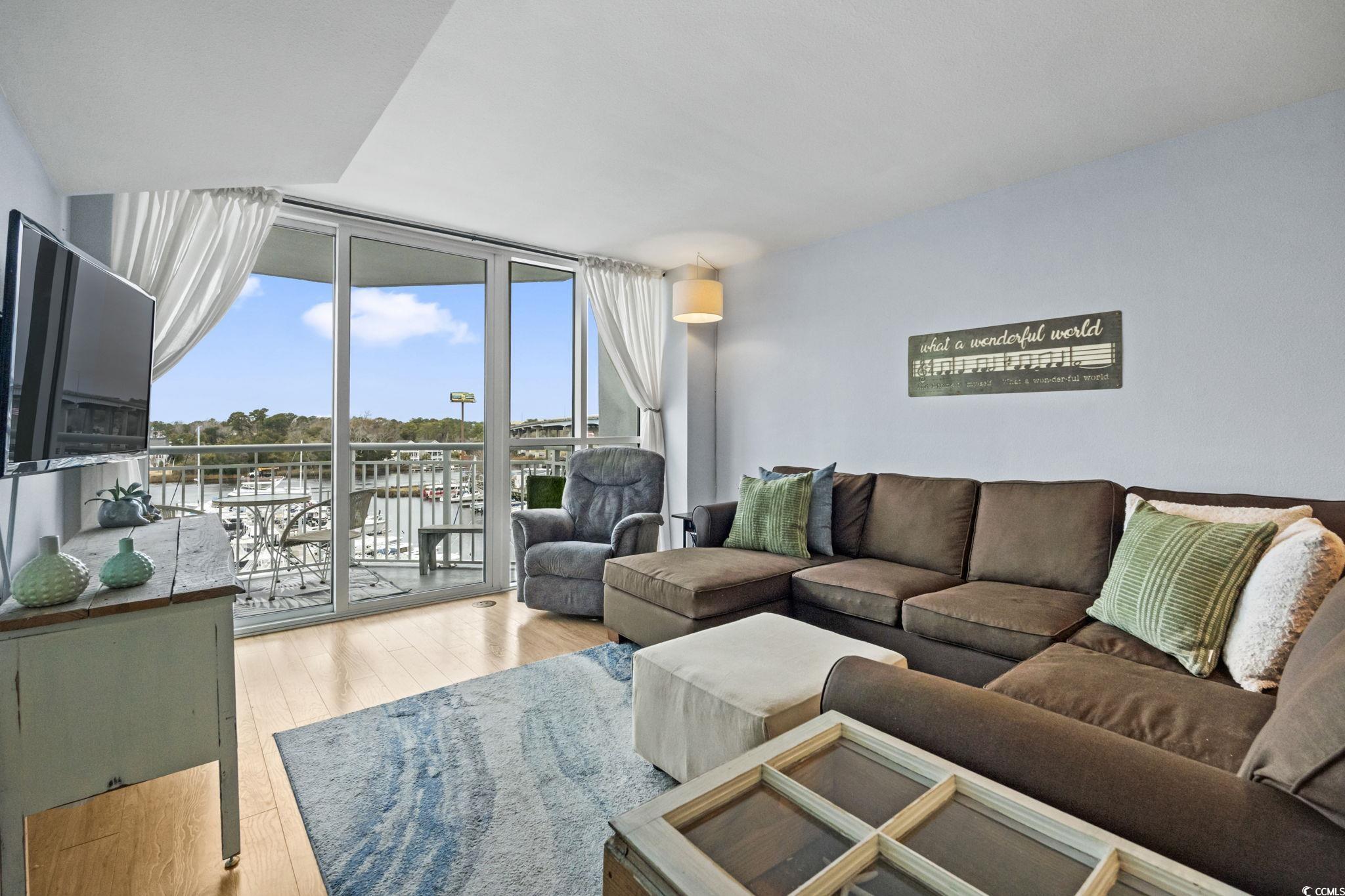 Enjoy the breathtaking views of Harbourgate Marina on the Intracoastal Waterway from the balcony of this cozy, fully furnished two bedroom, two bathroom condominium right in the heart of North Myrtle Beach. Just steps away from several restaurants, and moments away from Cherry Grove Beach, this marina front condominium balances a quiet coastal life with the flavor and flare of living in one of the most popular beach towns on the East coast. The living area and kitchen have been tastefully updated over the last few years, and with two ample bedrooms and large full bathrooms, this home offers plenty of space for you and your guests. This building allows short term and long term rentals, making this a great opportunity for an investor to buy a fully furnished unit in a rapidly growing area. Whether you are looking for your dream home, or pursuing your next great investment, you do not want to miss this opportunity!