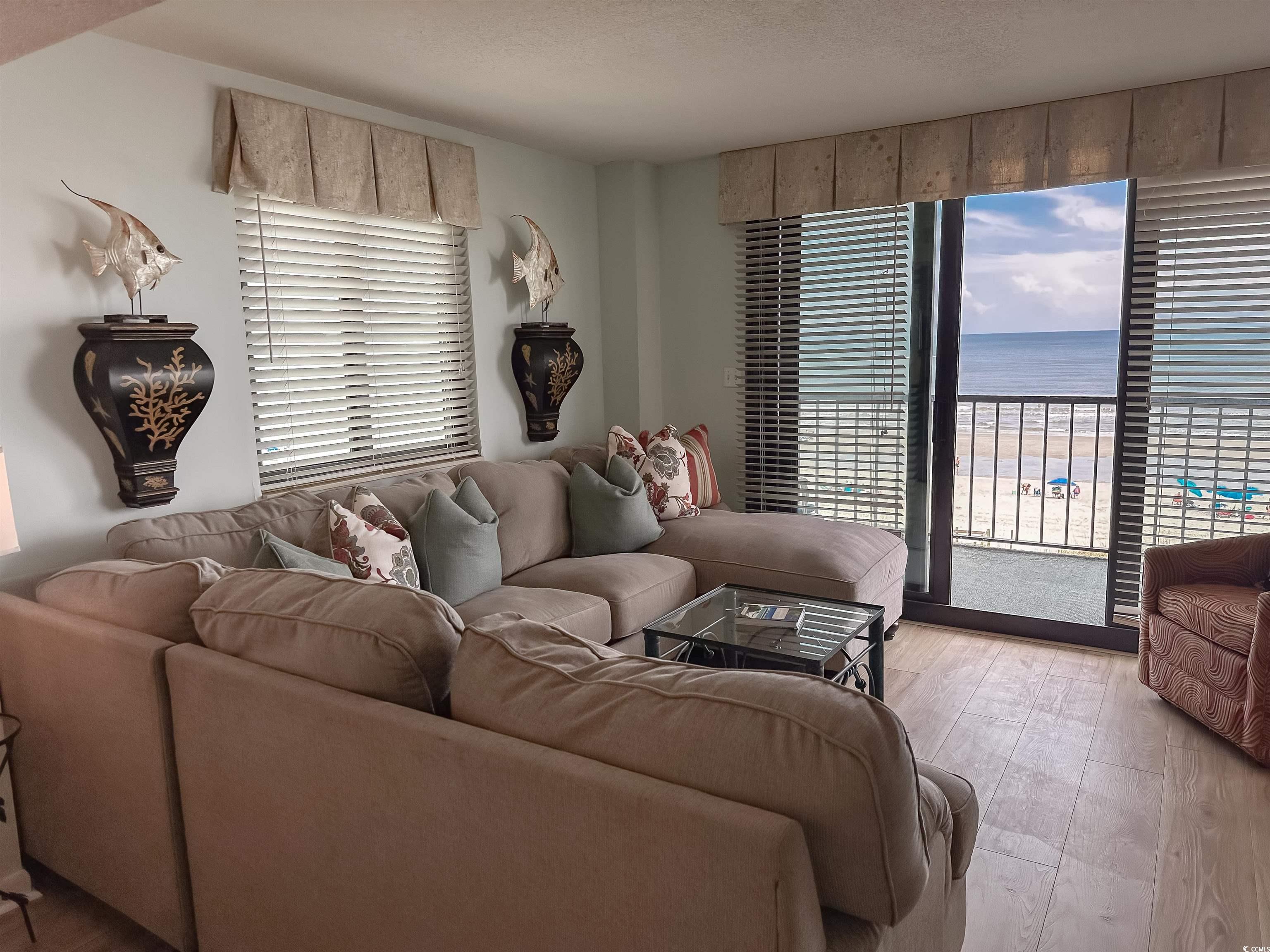 ***BE SURE TO WATCH WALK-THRU VIDEO INCLUDED IN LISTING!!*** It's hard to imagine a better view. Direct oceanfront, corner, three bedroom/three full bathroom residence. The 4th floor is a perfect height to take in the surf, sand and dunes while blissing out on the horizon!! A well laid out floorplan with spacious bedrooms. The home features new wood LVP floors throughout the main area and into the bedrooms in a white oak that looks fantastic. Also, ALL the windows have been replaced with hurricane frames and impact glass, bringing those up to 2025 code! Clean, neat. MOVE-IN READY!!!