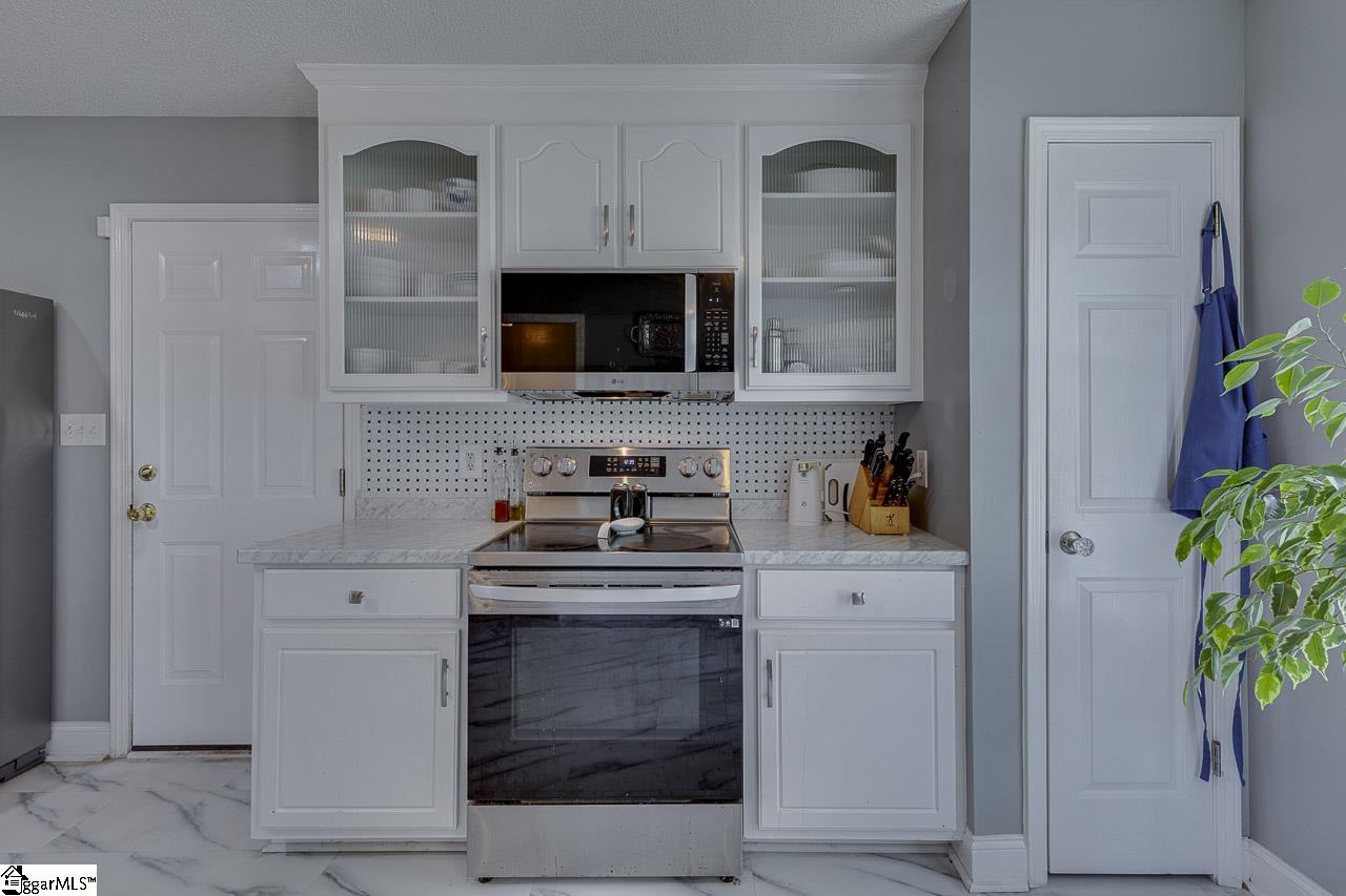 Welcome to 2109 Rolling Green Road. a cheerful three-bedroom, two-bath ranch-style home that feels just as comfortable as it is convenient. Step through the front door, and you'll find an inviting foyer that opens into a spacious kitchen off to the right or the living room straight ahead. The kitchen is filled with natural light from a beautiful bay window, which is the perfect spot for your breakfast table or a cozy reading nook. There’s plenty of counter space for cooking or baking days, stainless steel appliances, a handy pantry closet, and unique ribbed glass-front cabinets that are great for displaying your favorite china or keeping things organized. From the kitchen, things flow right into an open-concept dining and living area. Whether you’re hosting a party or settling in for a quiet night, this flexible space has room for all your needs. A cutout window with a bar connects back to the kitchen, ideal for setting out drinks or connecting the conversation between both spaces. Vaulted ceilings in the living room add to the spacious, airy feel, while sliding glass doors open out to a covered patio and sunny back deck which is just the spot for your morning coffee, an evening barbecue, or watching the birds. The Primary Suite is thoughtfully tucked away at the rear of the home for a little extra peace and privacy. Here, you will find a generously sized bedroom, a walk-in closet, and a private bath featuring a double sink vanity and a walk-in shower. The two additional bedrooms are on the opposite side of the living area and are each nicely sized, whether you need extra space for family, guests, or a home office. The full sized hall bathroom is convenient to the secondary bedrooms and includes a tub/shower combo. Plus, a big linen closet in the hallway helps keep everything tidy and organized. The attached two car garage finishes the interior spaces and includes the laundry area. This setup gives you a little bonus space to drop shoes, jackets, or muddy shoes. Out back, the yard provides a comfortable amount of green space which is easy to maintain, but big enough to stretch out and enjoy some sunshine. This comfortable, welcoming, home is located close to just about everything in Anderson, from shopping and restaurants to schools and healthcare, including Anderson University and AnMed hospital. Don't miss out on your chance to tour this charming property. Schedule your showing today!