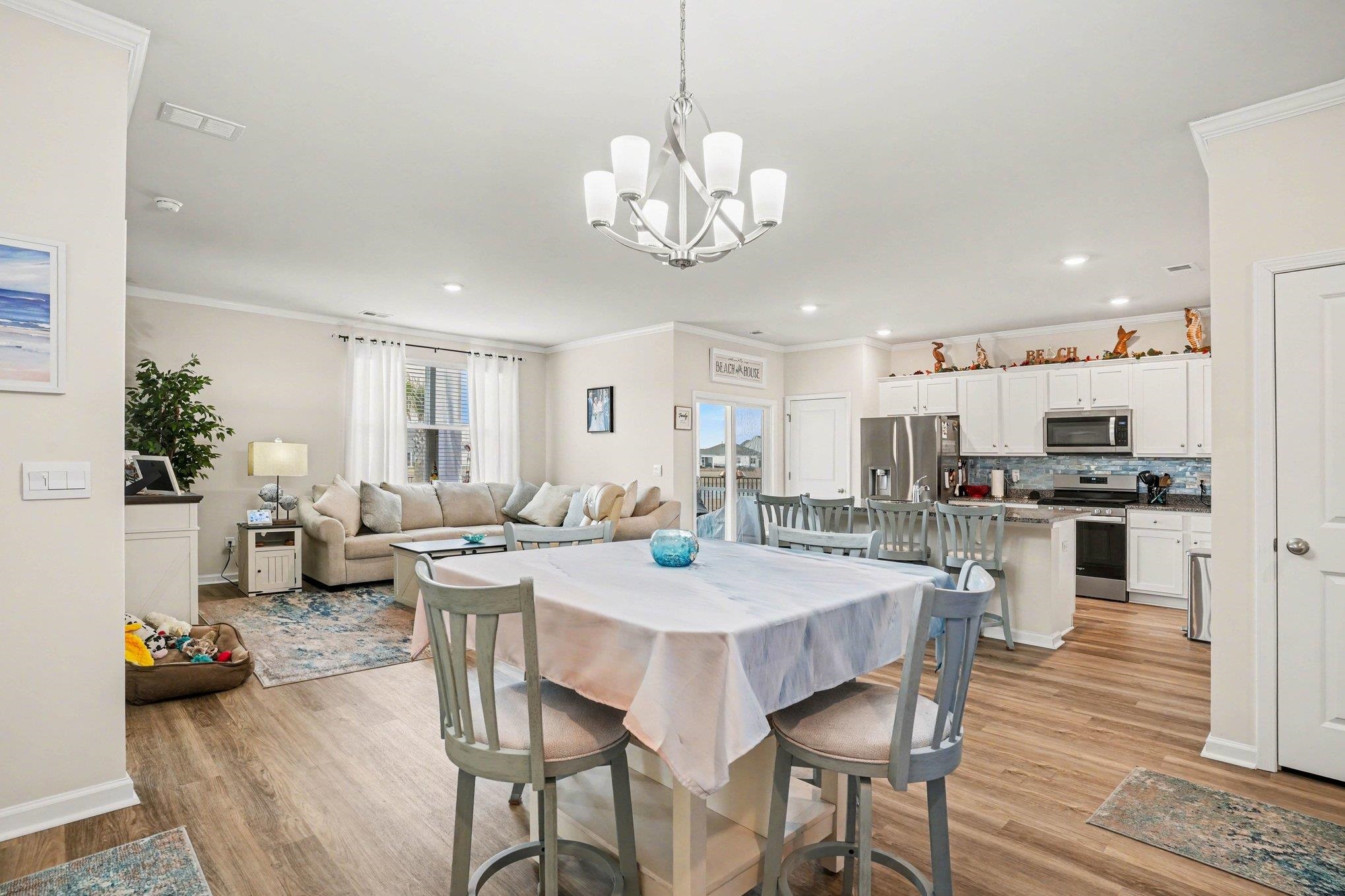 This stunning home in Village Oaks is move-in ready with numerous updates. It features a premier lot with a fenced yard and an extended patio overlooking a serene water feature. The property boasts professional landscaping, including palm trees, an irrigation system, and stone borders. Inside, enjoy crown molding, a beautiful backsplash, a tankless water heater, and a gas cooktop. The laundry room offers added shelving and a folding table for extra functionality. Additional highlights include a screened porch, a painted garage, and storage racks providing excellent organization and storage space. Residents of Village Oaks enjoy access to a community pool, adding to the neighborhood’s appeal. Located in Myrtle Beach with easy access to Highways 31 and 22, this home offers convenient access throughout the Grand Strand area. Ask your agent for the full list of upgrades and schedule your showing today!