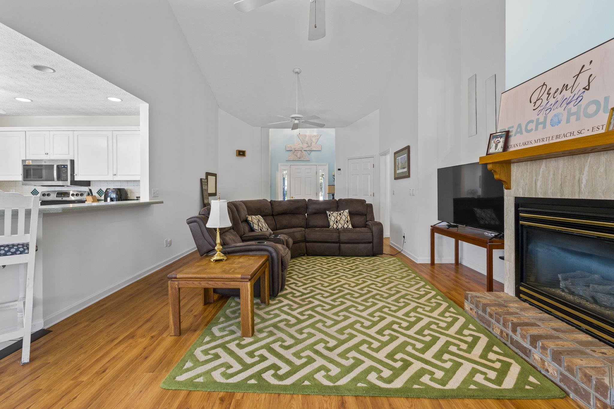 Single-level brick home located in the gated Prestwick community offering easy living, thoughtful upgrades, and access to resort-style amenities. This well-maintained residence features 3 bedrooms and 2 bathrooms with an open and functional floor plan designed for everyday living and entertaining. The living area, completed with fireplace, flows into the kitchen and dining space, creating a connected layout filled with natural light. The kitchen offers ample cabinet and counter space, stainless steel appliances, tile flooring, and an open sightline to the main living areas. Just beyond the living space, the oversized screened-in porch and adjoining deck overlook a fenced backyard, providing a peaceful setting for outdoor relaxation. The primary suite includes a tray ceiling, walk-in closet, and en-suite bath with a deep soaking tub, step-in shower, and double-sink vanity. Two additional bedrooms complete this split bedroom floor plan, a full bath offers flexibility for guests, or a home office. Additional features include LVP and tile flooring, a fully insulated crawl space, a 2-car attached garage, back-up generator, HVAC replaced in 2018, roof replaced in 2019, and a negotiable golf cart. Prestwick HOA amenities include a Junior Olympic-sized swimming pool, cabana, tennis and pickleball courts, premium cable and internet, recycling and yard debris pickup, and 24-hour security guards. Optional memberships are available for the Pete Dye-designed golf course and tennis stadium. Conveniently located near Myrtle Beach State Park, Market Common, beaches, shopping, dining, and major routes for easy travel throughout the Grand Strand. Buyer to verify all measurements.