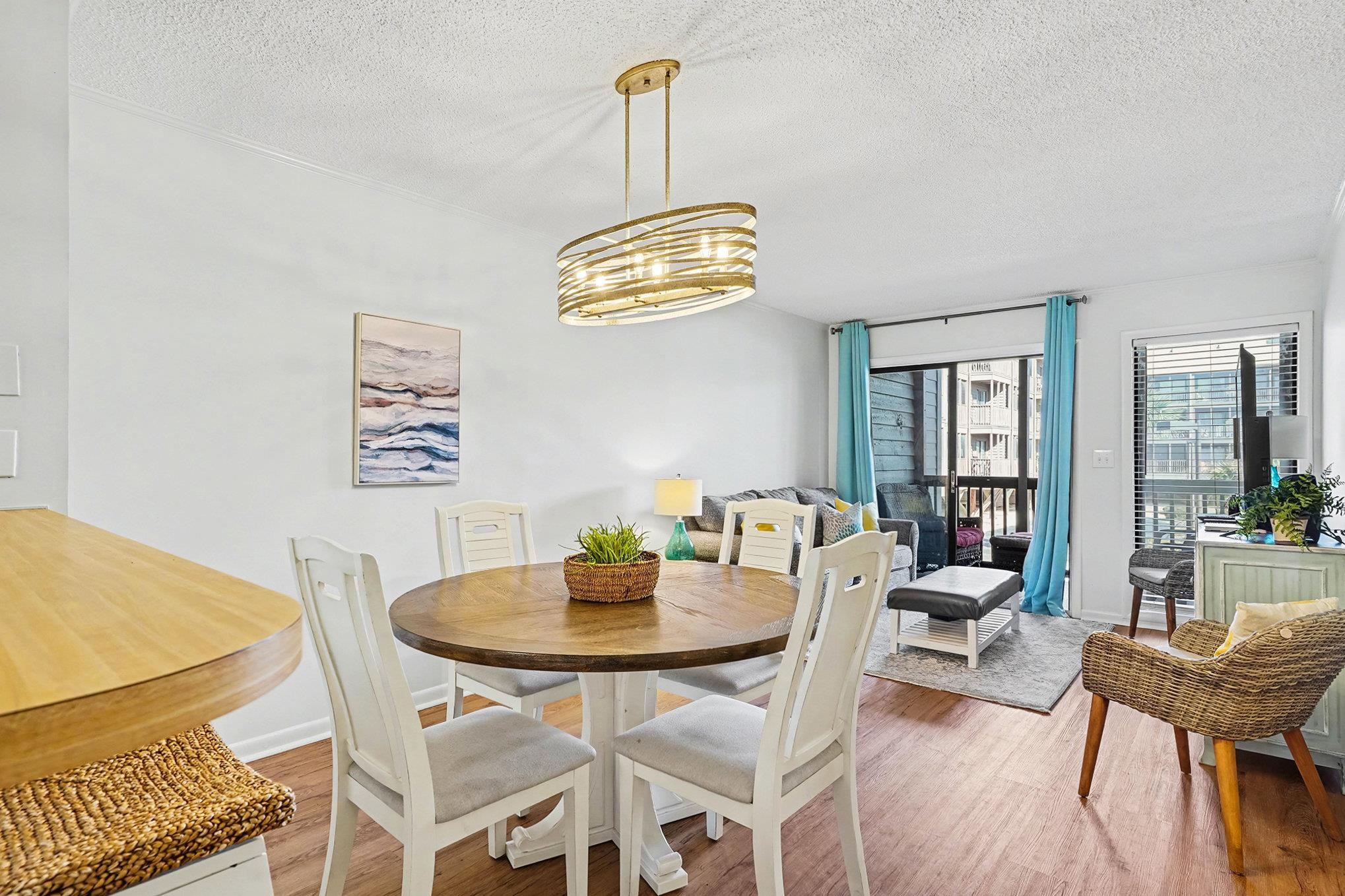 This bright and spacious 3 bedroom, 2.5 bath first-floor condo is perfectly situated in the heart of North Myrtle Beach's sought-after Ocean Drive section, overlooking the pool area from inside and the private balconies, with convenient elevator access in this low-rise building. Highlights include a fully furnished interior, abundant natural light, a private balcony off both the living room and the primary suite, and an open, functional layout perfect for coastal living. Additional features include a kitchen with stainless steel appliances and ample counter and cabinet space, tile flooring in the kitchen, hall, and baths with LVP in the living area, a full-size laundry room with washer and dryer conveying, and two spacious guest bedrooms. This delightful furnished condo makes a terrific investment property, vacation retreat, or full-time residence, offering access to multiple pools, lounge areas, and easy beach access just across the street.