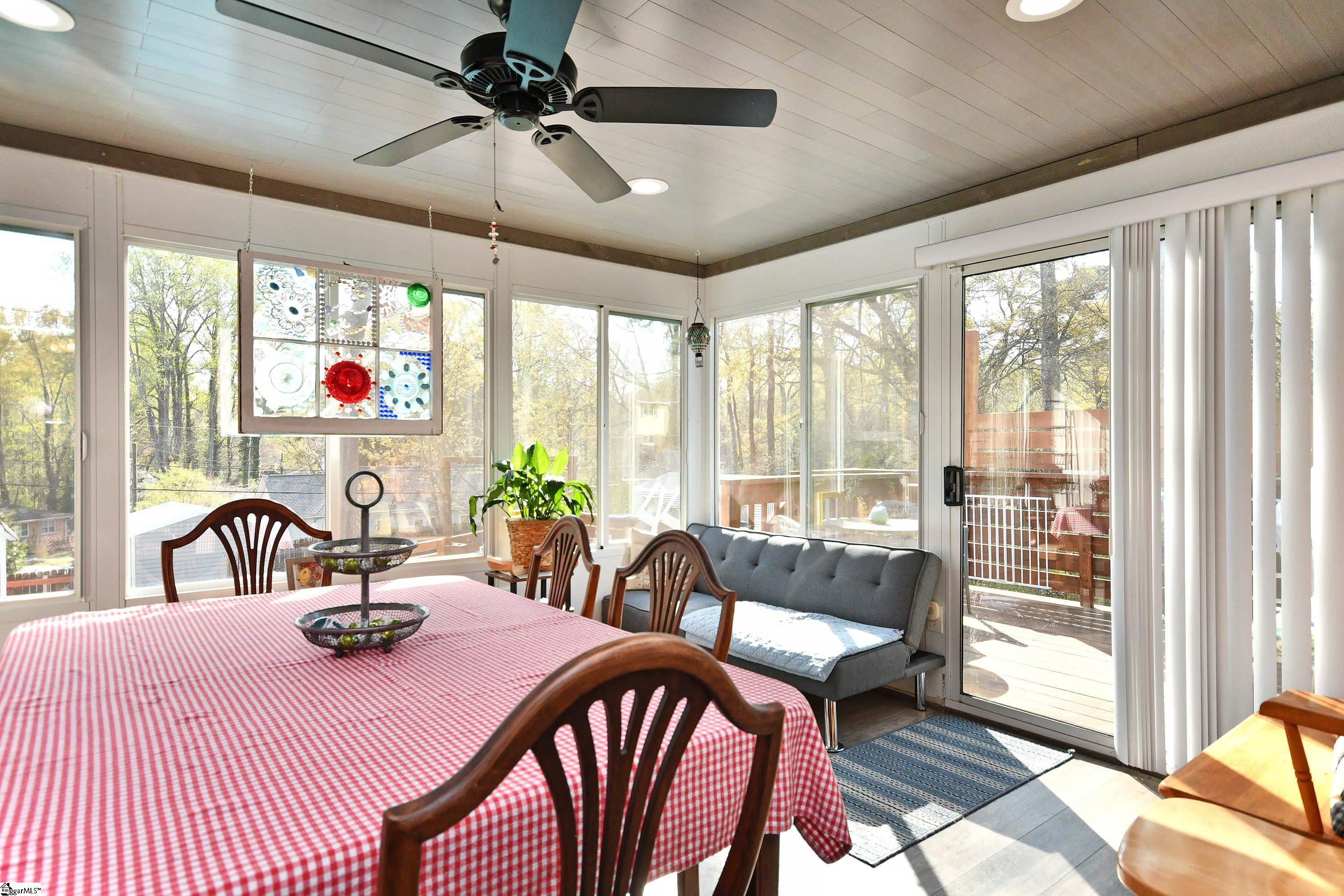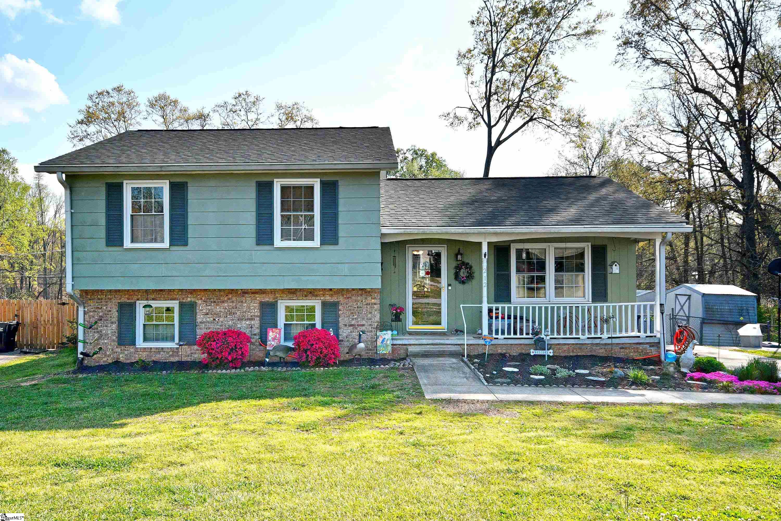 Discover this spacious 3-bedroom, 1.5-bath tri-level home just minutes from popular downtown Simpsonville. All major issues have recently been updated. New roof and Hvac in in 2024! Most flooring was also replaced in 2024. The main level features a cozy living room, and an eat- kitchen dining area with ample cabinet space. Enjoy year-round relaxation in the sunroom, added in 2014, overlooking the backyard. Upstairs, you’ll find three comfortable bedrooms and a full bath with access from both the hallway and the primary bedroom. The lower level offers a large den plus a laundry room, half bath, and a versatile flex room ideal for a home office or guest bedroom with direct exterior access. Step outside to a fully fenced backyard complete with a large deck, above-ground pool, and a large two story storage building with power. Conveniently located close to shops, restaurants, and parks, this home offers indoor comfort, outdoor fun, and the best of Simpsonville living!