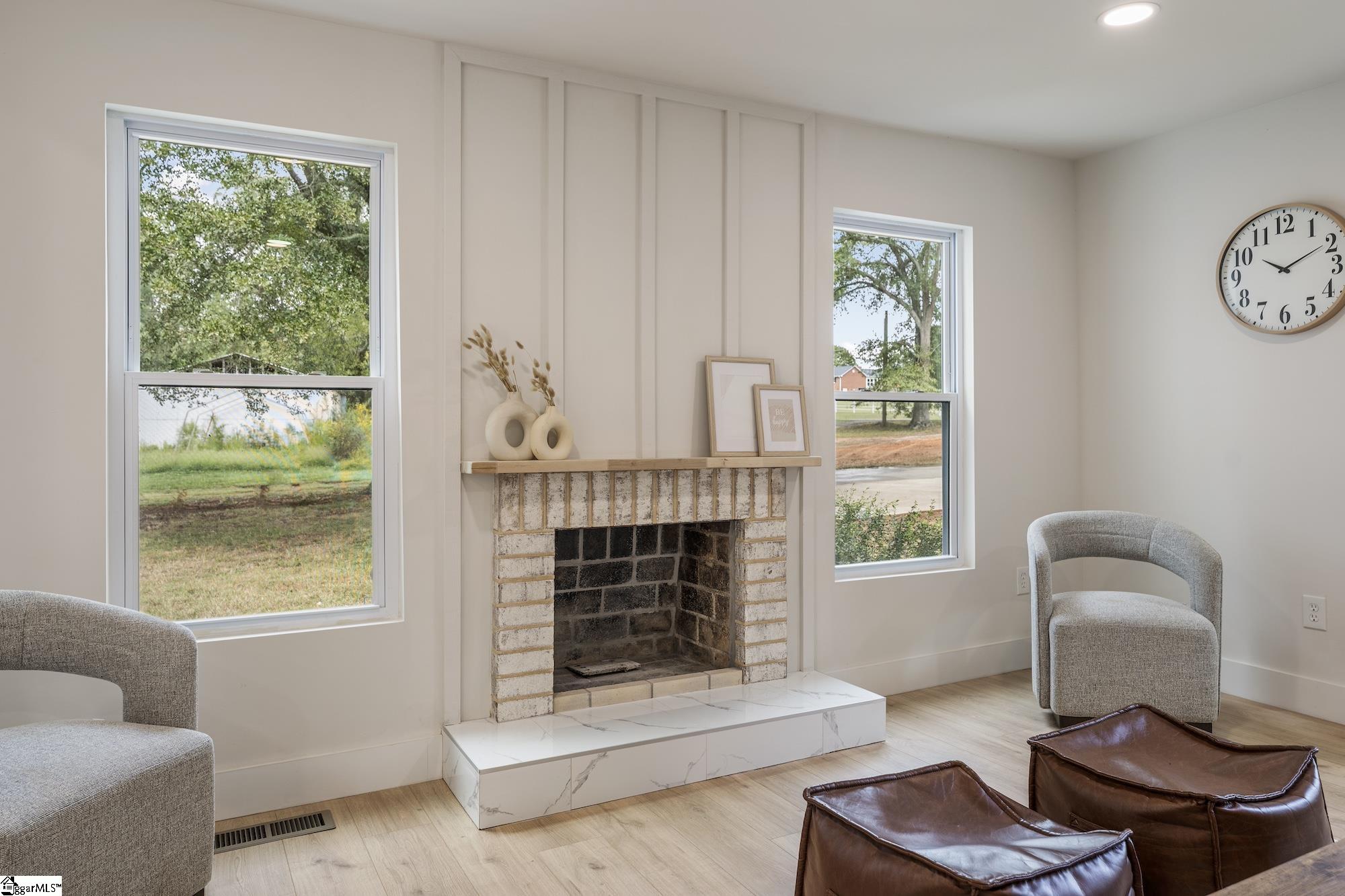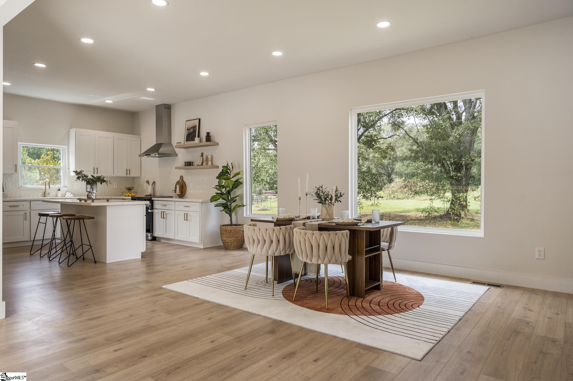 Welcome to 212 Colonels Road, a beautifully remodeled farmhouse retreat set on a private one-acre lot in Pendleton. Tucked along a quiet county road, this home offers the perfect balance of peaceful seclusion and convenience to Pendleton, Clemson, and lake Hartwell. Inside, every detail feels brand new — from the wide-plank floors to the custom kitchen with quartz countertops, shaker cabinetry, and a large island perfect for gathering. The open-concept dining and living areas are framed by oversized windows, flooding the home with natural light and serene views of the surrounding countryside. The private primary suite features a spa-like bath with a sleek vanity, gold fixtures, and a tiled tub/shower surround, while additional bedrooms and baths have been fully refreshed with the same modern attention to detail. Outdoors, the level lot provides plenty of room to enjoy the fresh air, garden, or simply relax under the mature trees. With its modern farmhouse style, serene setting, and move-in ready finishes, 212 Colonels Road offers the best of both worlds — the charm of country living with easy access to town amenities.