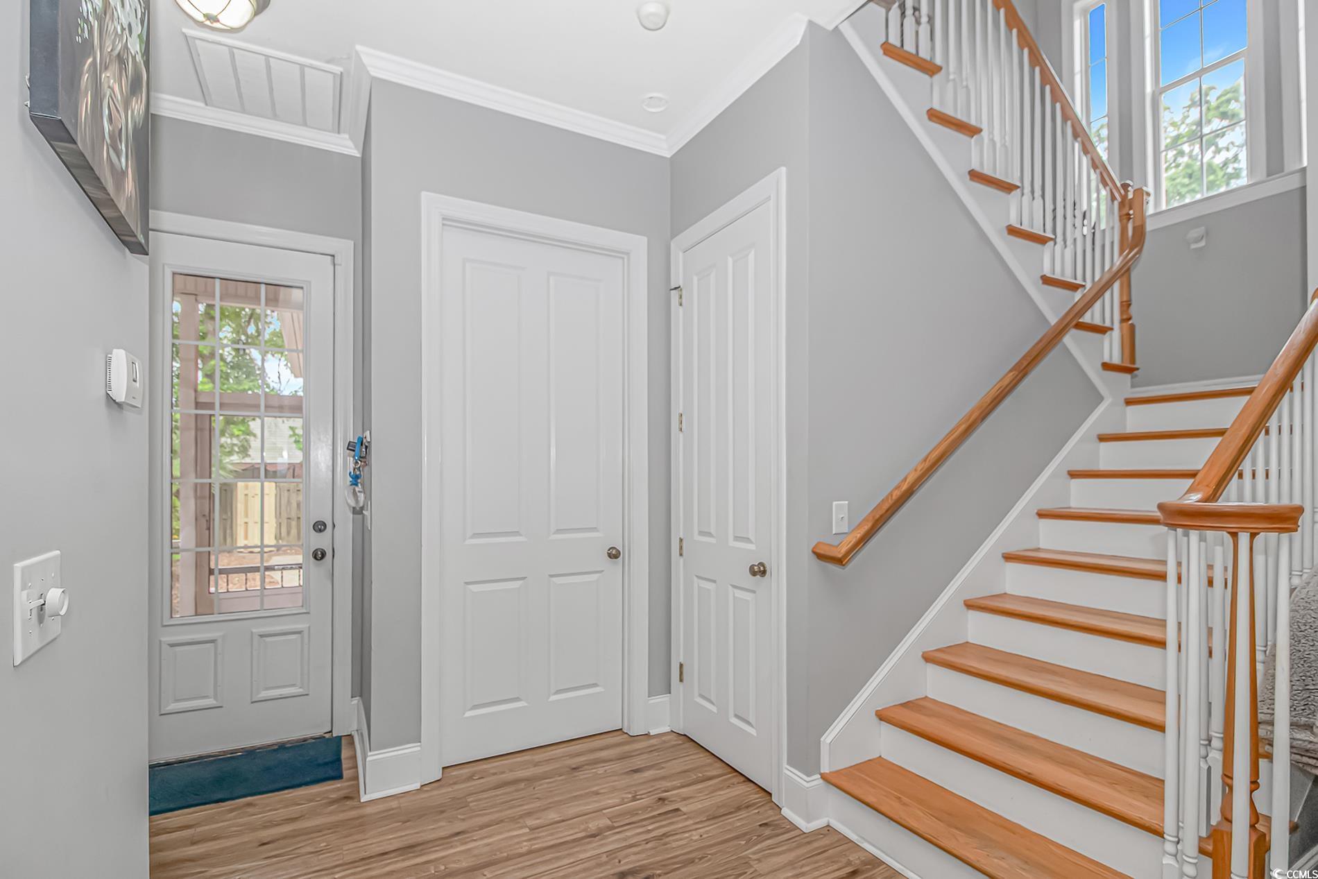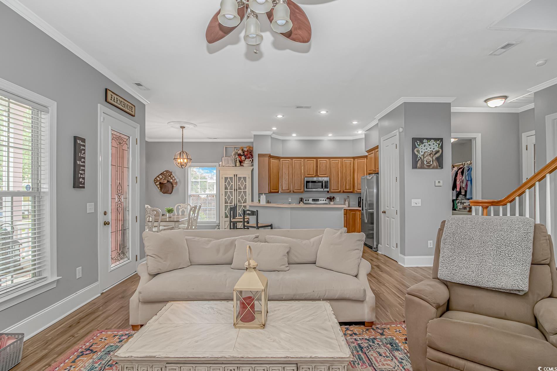 Charming Neo Traditional style home in The Village Community in Conway, SC. Welcome to your dream home nestled in the sought after Village community near the Conway Country Club area. This beautiful 3 bedroom 2.5 offers timeless Southern Charm with all the modern conveniences. Step inside the front door to discover an inviting open concept kitchen/ dining/ living room complete with cozy fireplace- Perfect for entertaining. The primary bedroom is conveniently located on the first floor featuring a walk in closet, double vanities, large tub and separate shower and toilet room. Upstairs you will find two bedrooms and a versatile loft space, ideal for a home office, media area, or playroom. Enjoy your morning coffee or evening relaxation on the front porch, or retreat to the rear screened in porch looking into a private fenced in back yard. This amazing home also features a detached 2 car garage with plenty of storage to fit all of your needs. Do not let this opportunity pass you by! Schedule a tour today!