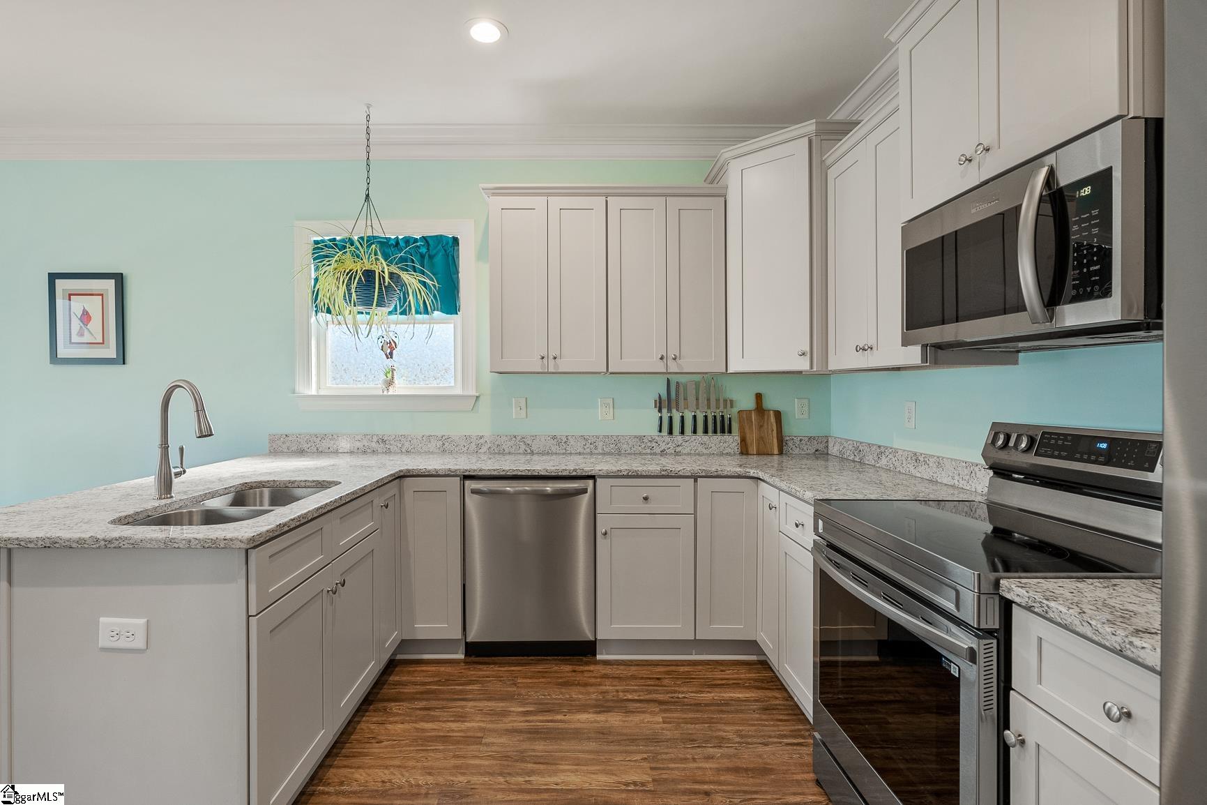 Don’t be sad to pack up the Christmas tree and finish off the eggnog, I have a fun surprise to distract you with this home at 2-1-3 Boggs! Still feels like new but with thoughtful upgrades, this home sits on .78 acres and while unrestricted with a “country setting,” it’s still close to town where you will find all shopping, major medical and plentiful dining options! This single story home greets you with a vaulted ceiling in the living room, allowing natural light to flow into this bright and airy space. The large kitchen features a casual dining room that adjoins the kitchen. Granite countertops, upgraded stainless steel appliances, and a customized cabinet pantry are just a few of the “extras” this kitchen has! There are two bedrooms and a full bathroom that complete this side of the house, and one of the bedrooms smartly features a Murphy bed, allowing you to periodically accommodate guests, or instantly make the room more spacious for other uses! The primary bedroom is located on the opposite side of the home for ideal privacy. It is large and features a walk-in closet and en suite with double vanity, 36 inch high countertops and walk-in shower. The backyard of this home is a rare dream. Along with a privacy fence, this large backyard has a drainage system and is fully sodded. The large covered patio and extended grilling patio make cooking and relaxing a dream! A few other highlights include a portable whole house generator with dedicated breaker, additional outlets around the home, and ideal storage cabinets the laundry room that is conveniently located near the primary bedroom. Beyond all this, you will find this to be an incredible location that offers quick convenience to all shopping, major medical, restaurants, and the I-85 – and no city taxes!
