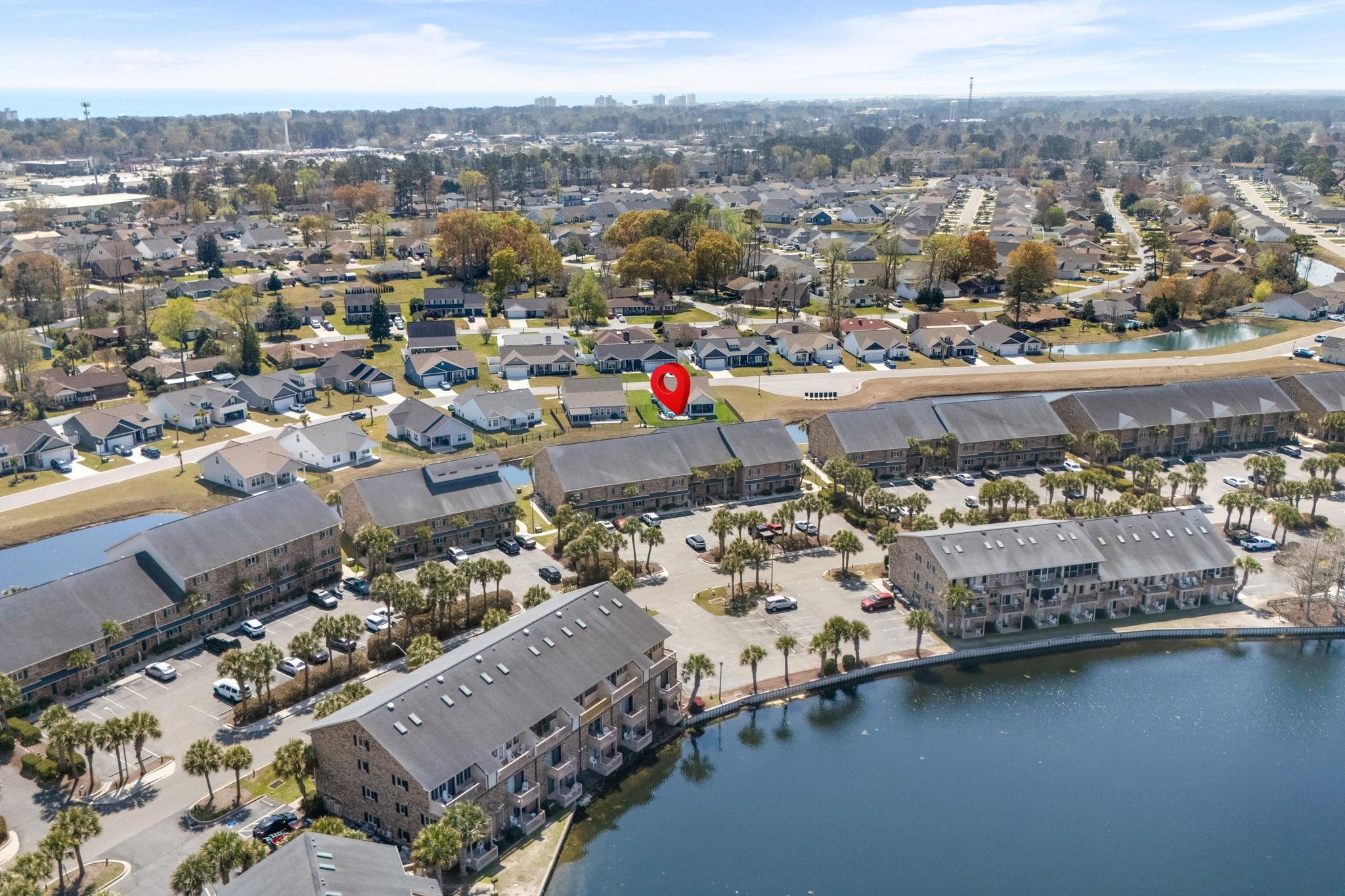 Don't miss out on this 1BR, 1BA unit located in Grand Palms Resort in Surfside Beach! Grand Palms Resort allows for both short term and long term rentals! This condo is located on the top floor and has vaulted ceilings in the living room with access to a balcony overlooking one of the community ponds. New LVP flooring, new washer & dryer, new stove, new dishwasher, and fresh paint was just added in April 2026. The washer & dryer, Murphy Bed in the living room, multiple storage closets, two skylights in the living room allowing for abundant natural light to flood the room. No elevator. The balcony overlooks a pond and gives you gorgeous views year round. Grand Palms Resort is located in close proximity to grocery stores, shopping, golf courses, entertainment, and of course - the beautiful Atlantic Ocean!