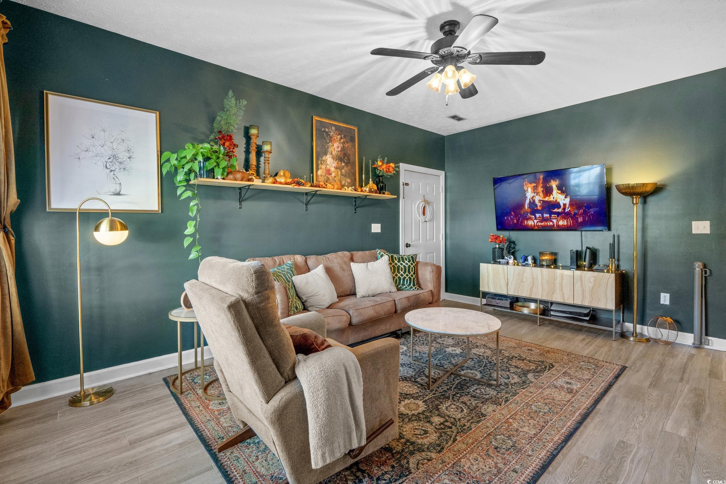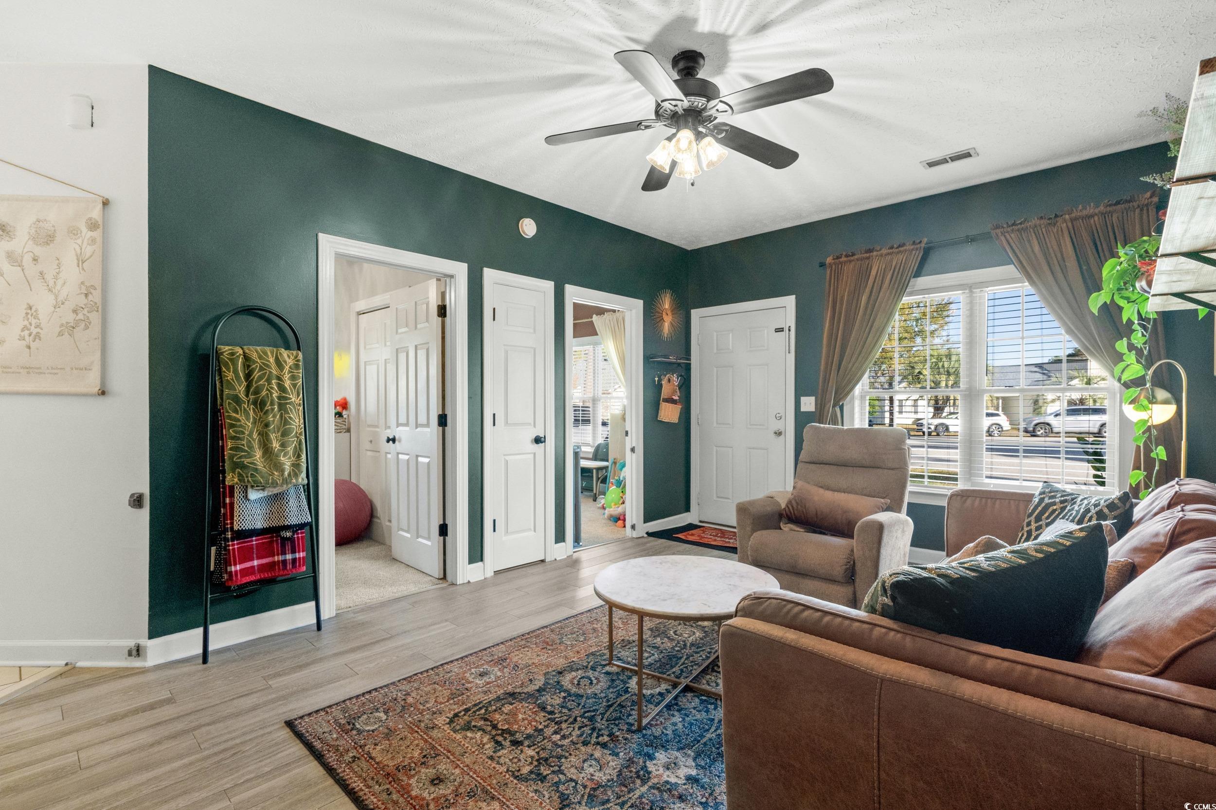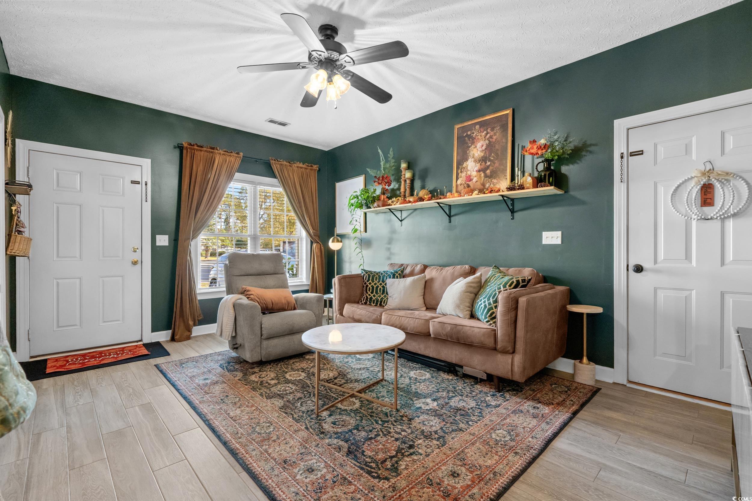 Bring your buyers to see this charming 3-bedroom, 2-bath home located on a cul-de-sac in the desirable Stonebridge subdivision! This lovely property offers a split-bedroom floor plan with ceiling fans in all bedrooms, the dining room, and the living room. The kitchen features tile flooring that continues through the bathrooms, and the living room boasts new wood-look tile flooring, giving the home a fresh, modern touch. Additional updates include a new stove August 2024 and a new HVAC compressor installed July 2025. The spacious, wooded backyard is perfect for entertaining family and friends. An outdoor storage shed conveys with the home, and the attached 11x23 one-car garage offers built-in wood shelving for extra storage. Enjoy the convenience of being close to Market Common, fine dining, shopping, and just minutes from the beach — all with NO HOA fees!