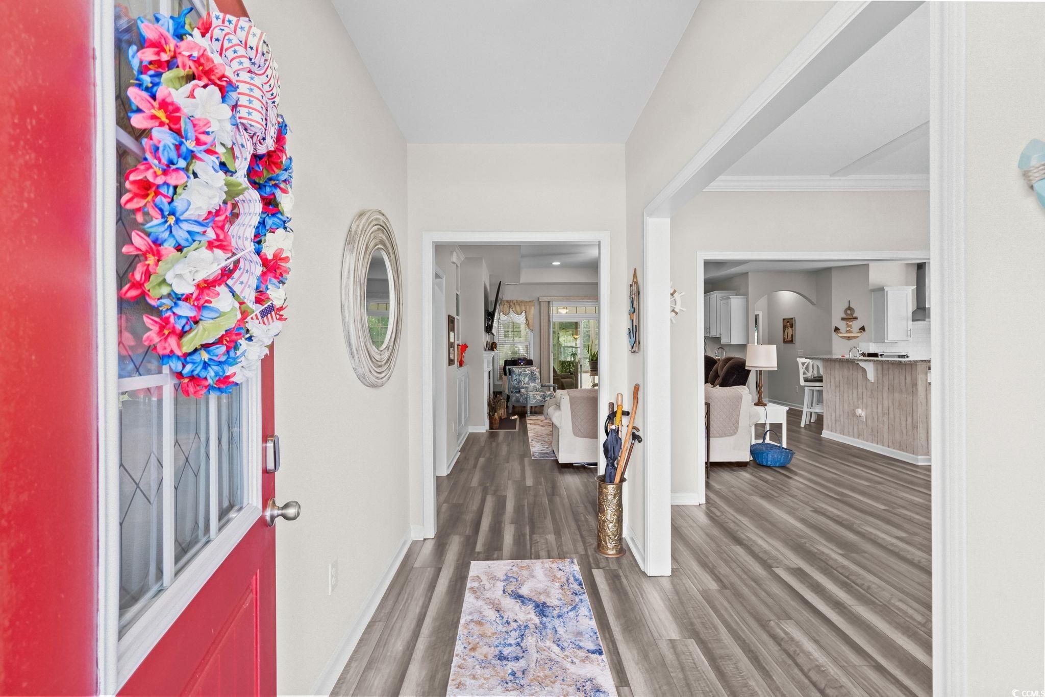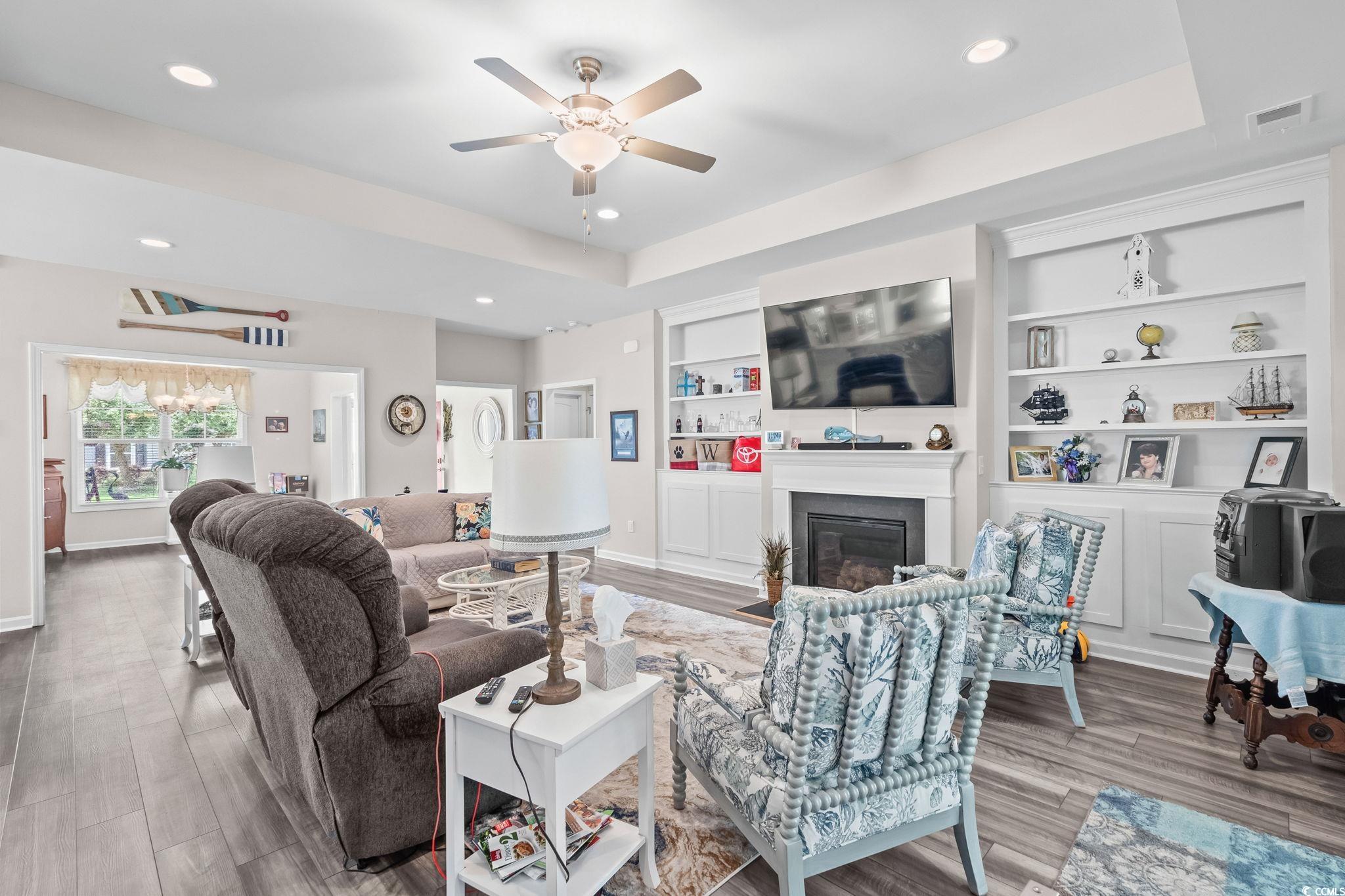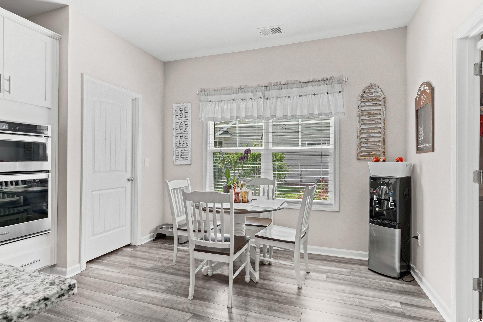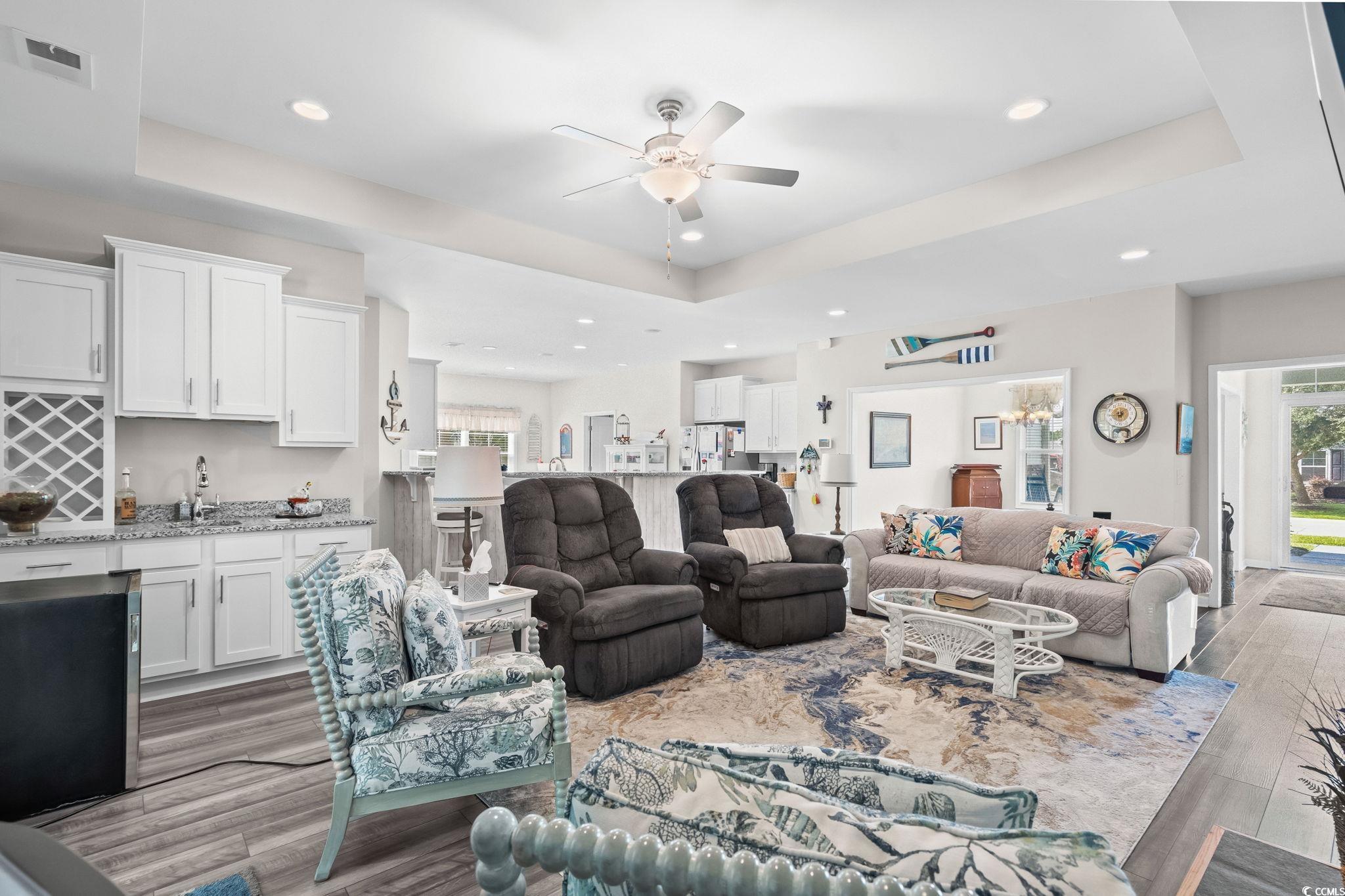 Nestled in the sought-after Hillsborough community, this former builder model home offers a wonderful blend of style, comfort, and convenience. The neighborhood is known for its beautiful mature trees and an ideal location just minutes from International Drive. The home makes a striking first impression with its painted driveway, curbscape details, stacked stone accents, and welcoming front porch. With only one neighbor beside you, the setting feels more private and serene. Inside, the home showcases a fresh, neutral color palette that highlights its thoughtful design. A formal dining room sits at the front of the home and can also serve as a flexible space to fit your needs. The spacious living room features a tray ceiling, gas fireplace, and a built-in beverage station complete with a hand sink and wine storage, making it perfect for entertaining. The expansive kitchen is a chef’s dream with granite countertops, an island, breakfast bar, range, wall oven and microwave, and a pantry that provides excellent storage. The living room flows seamlessly into a large all-season room where you can enjoy the versatility of screened panels in warm weather or close them for comfort during the cooler months. This space opens to a patio that is ideal for grilling and outdoor dining. The backyard backs up to trees, giving you a peaceful, more private view. The primary suite offers a retreat of its own with a tray ceiling and fan and a walk-in closet. The private bathroom has a garden tub and separate shower with tile surround, and dual sinks. Two additional bedrooms are generously sized, each with a ceiling fan and convenient access to the second full bathroom. A full home generator powered by propane gas gives peace of mind. Hillsborough is an established community with a pool, clubhouse, playground, picnic and grilling area, street lights, sidewalks and paths for walking or biking. This home is conveniently located near Highway 90 and International Dr, just a short distance from Highway 501, and Highway 31, providing you with close proximity to all the attractions and amenities of Myrtle Beach, including fine dining, world-class entertainment, ample shopping experiences along the Grand Strand, and Conway’s antique shops, local eateries, and the River Walk. Rest easy knowing you are only a short drive from medical centers, doctors’ offices, pharmacies, banks, post offices, and grocery stores.