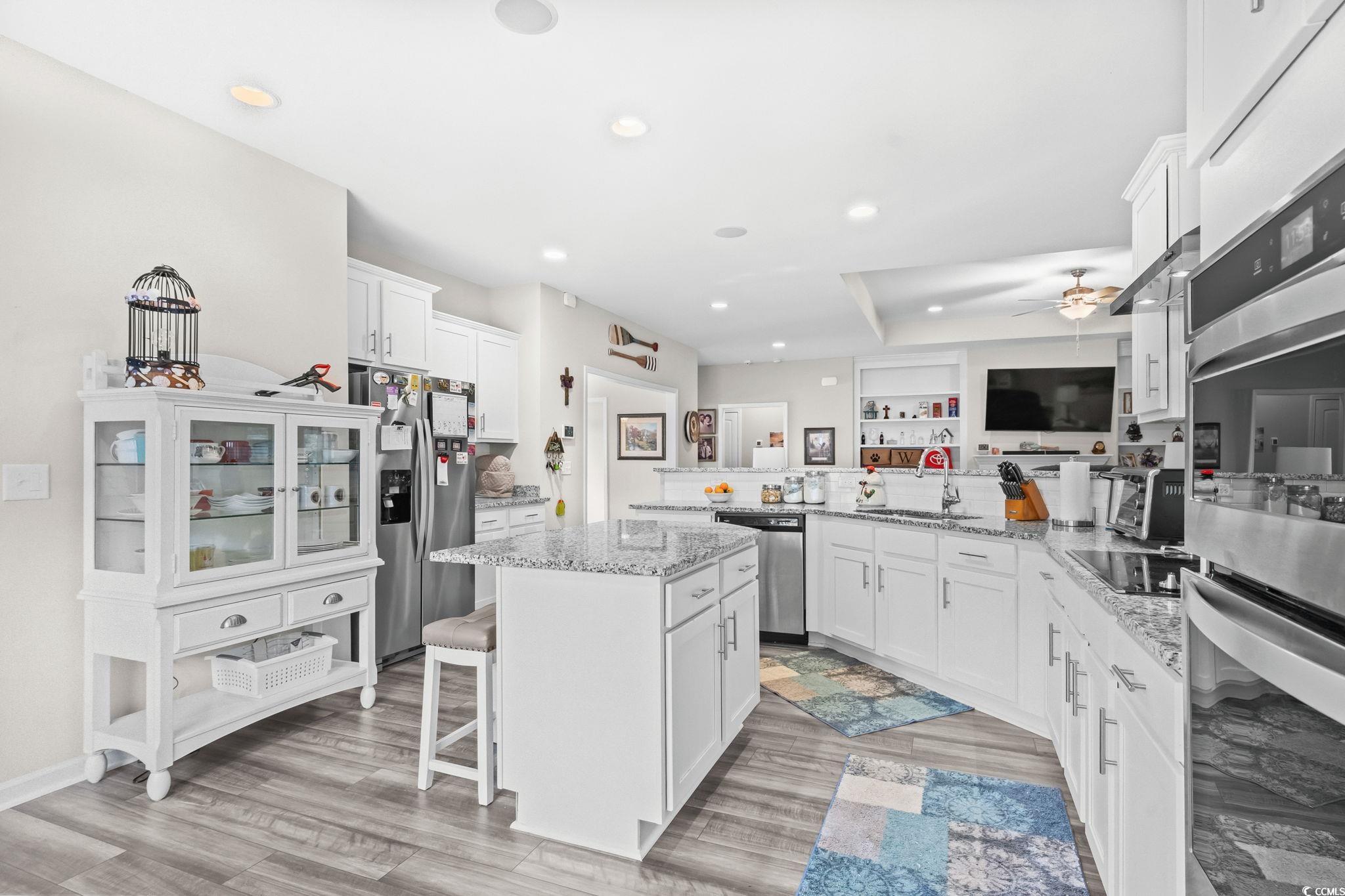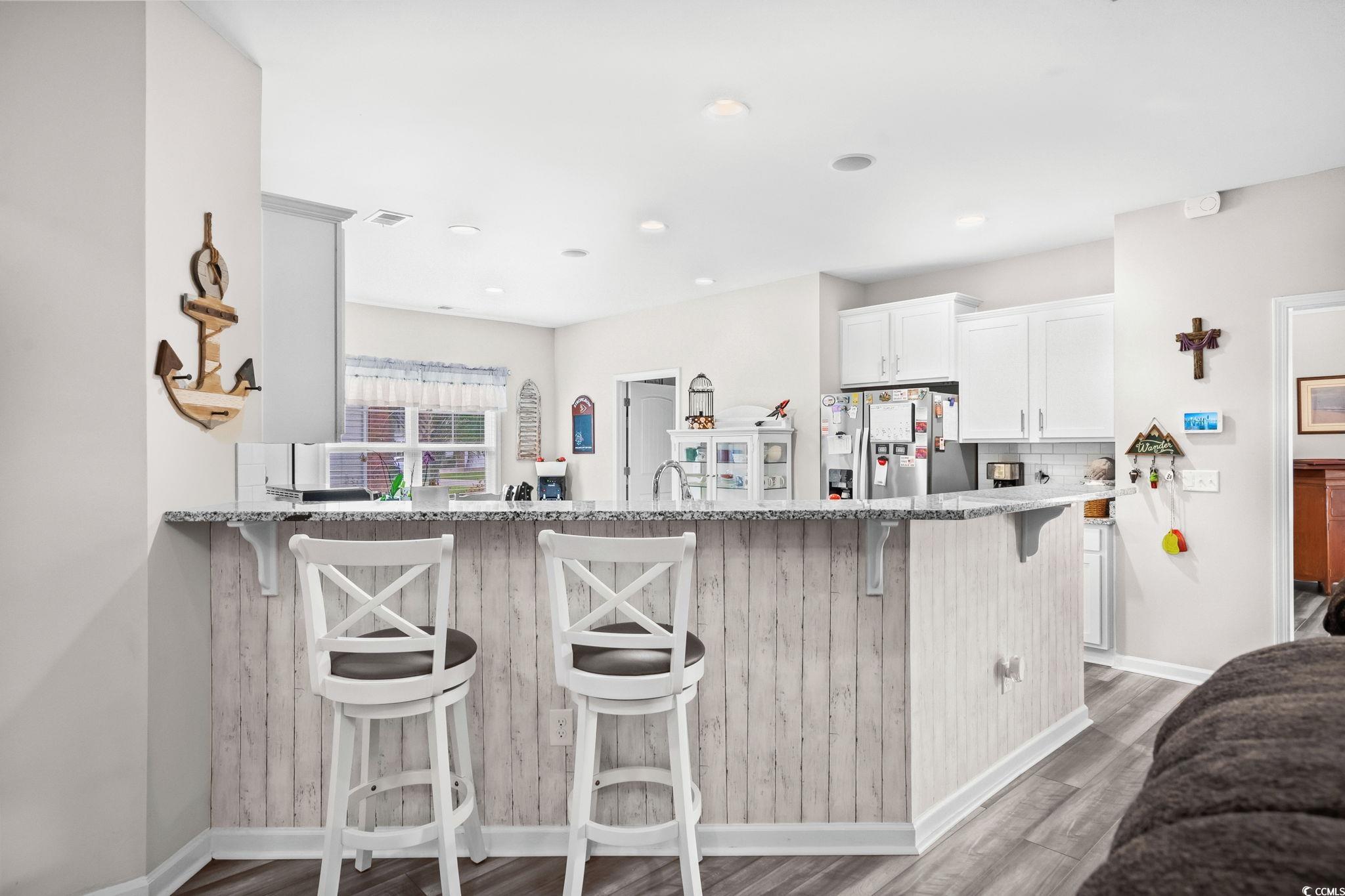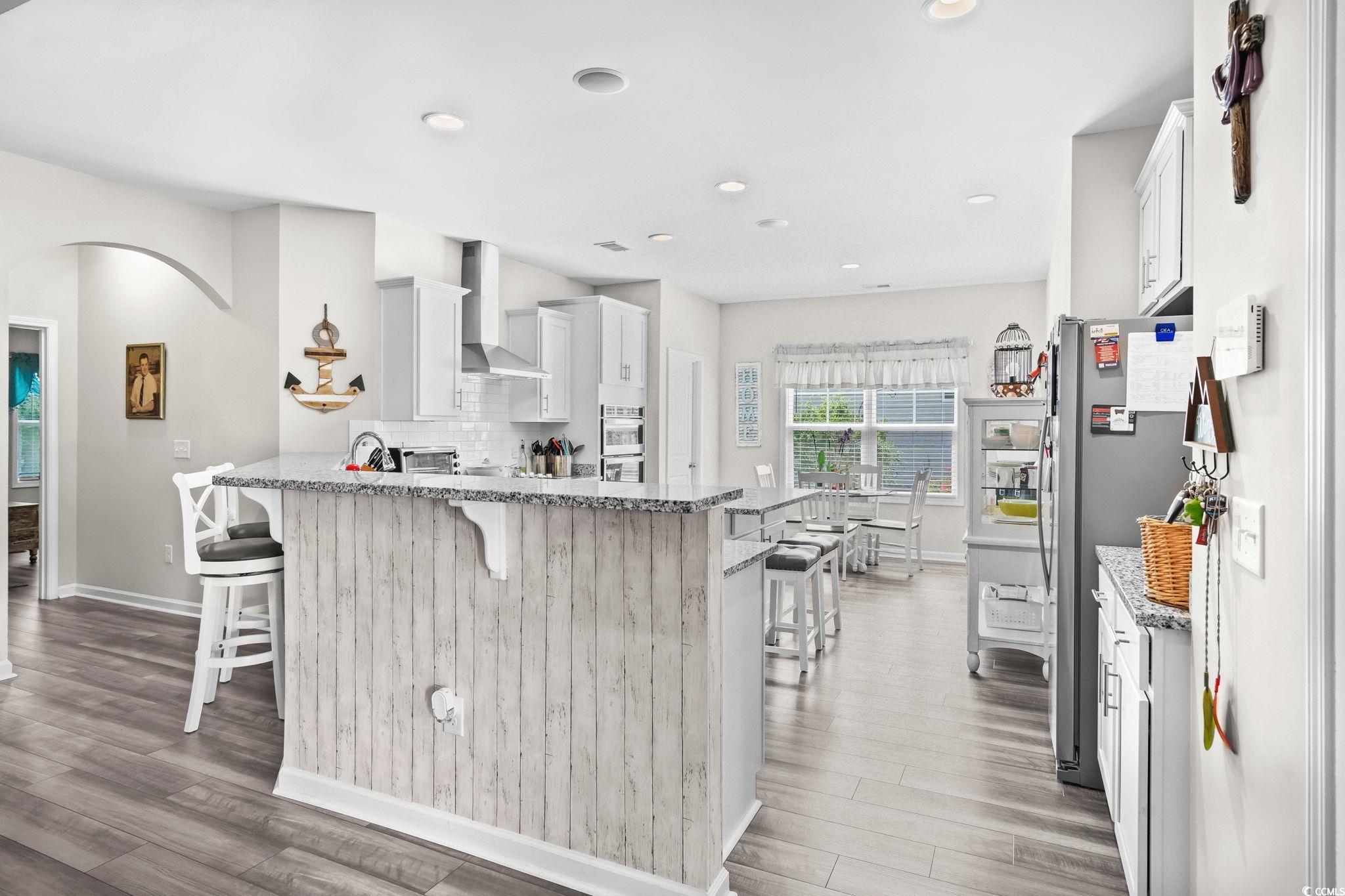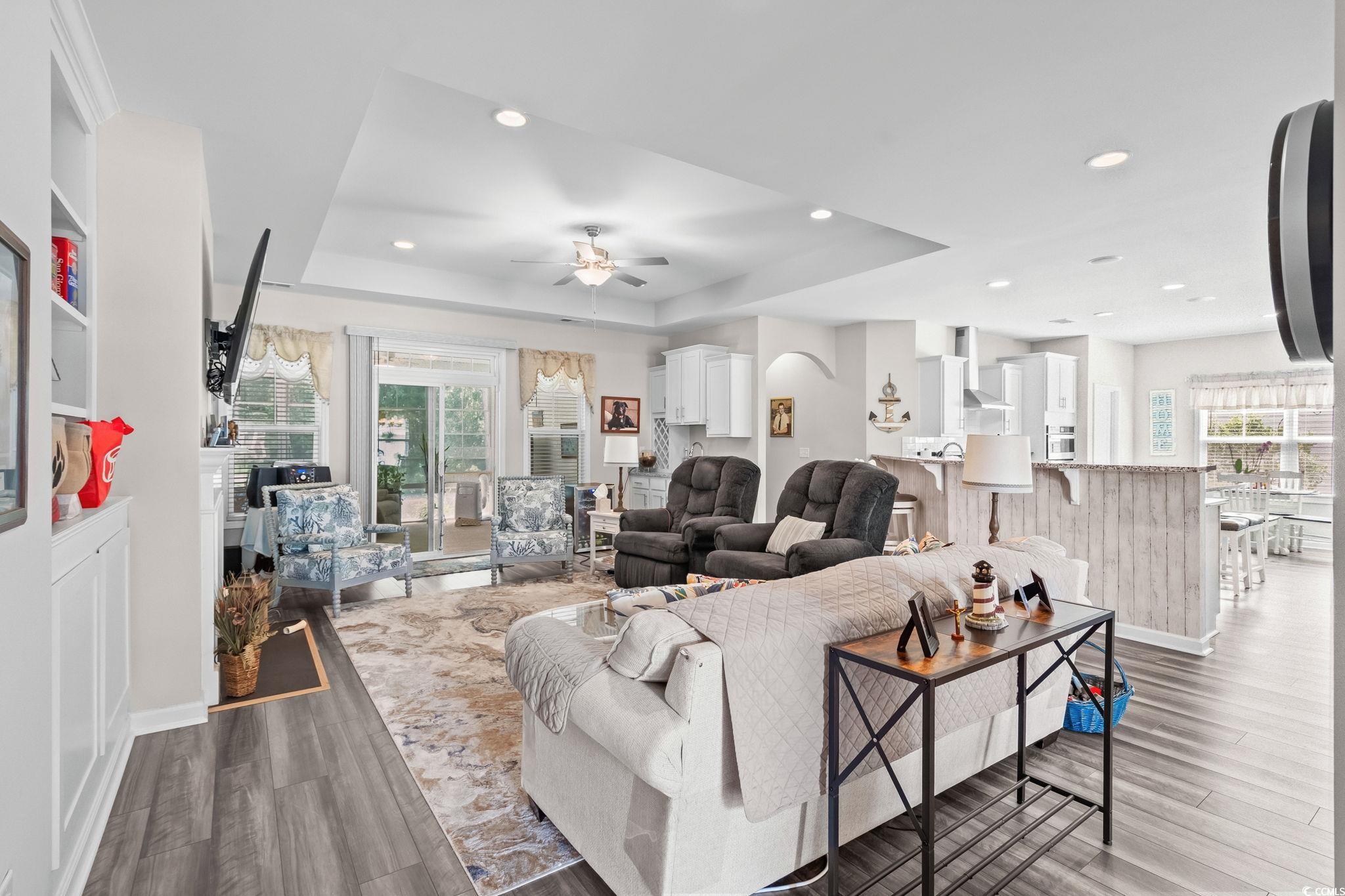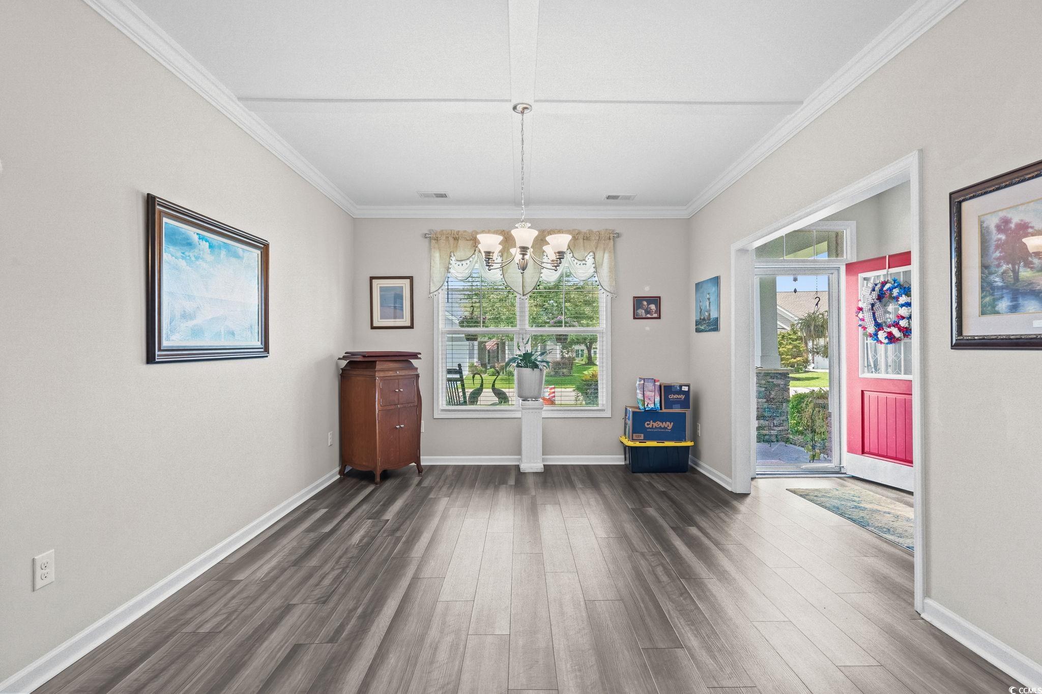Nestled in the sought-after Hillsborough community, this former builder model home offers a wonderful blend of style, comfort, and convenience. The neighborhood is known for its beautiful mature trees and an ideal location just minutes from International Drive. The home makes a striking first impression with its painted driveway, curbscape details, stacked stone accents, and welcoming front porch. With only one neighbor beside you, the setting feels more private and serene. Inside, the home showcases a fresh, neutral color palette that highlights its thoughtful design. A formal dining room sits at the front of the home and can also serve as a flexible space to fit your needs. The spacious living room features a tray ceiling, gas fireplace, and a built-in beverage station complete with a hand sink and wine storage, making it perfect for entertaining. The expansive kitchen is a chef’s dream with granite countertops, an island, breakfast bar, range, wall oven and microwave, and a pantry that provides excellent storage. The living room flows seamlessly into a large all-season room where you can enjoy the versatility of screened panels in warm weather or close them for comfort during the cooler months. This space opens to a patio that is ideal for grilling and outdoor dining. The backyard backs up to trees, giving you a peaceful, more private view. The primary suite offers a retreat of its own with a tray ceiling and fan and a walk-in closet. The private bathroom has a garden tub and separate shower with tile surround, and dual sinks. Two additional bedrooms are generously sized, each with a ceiling fan and convenient access to the second full bathroom. A full home generator powered by propane gas gives peace of mind. Hillsborough is an established community with a pool, clubhouse, playground, picnic and grilling area, street lights, sidewalks and paths for walking or biking. This home is conveniently located near Highway 90 and International Dr, just a short distance from Highway 501, and Highway 31, providing you with close proximity to all the attractions and amenities of Myrtle Beach, including fine dining, world-class entertainment, ample shopping experiences along the Grand Strand, and Conway’s antique shops, local eateries, and the River Walk. Rest easy knowing you are only a short drive from medical centers, doctors’ offices, pharmacies, banks, post offices, and grocery stores.