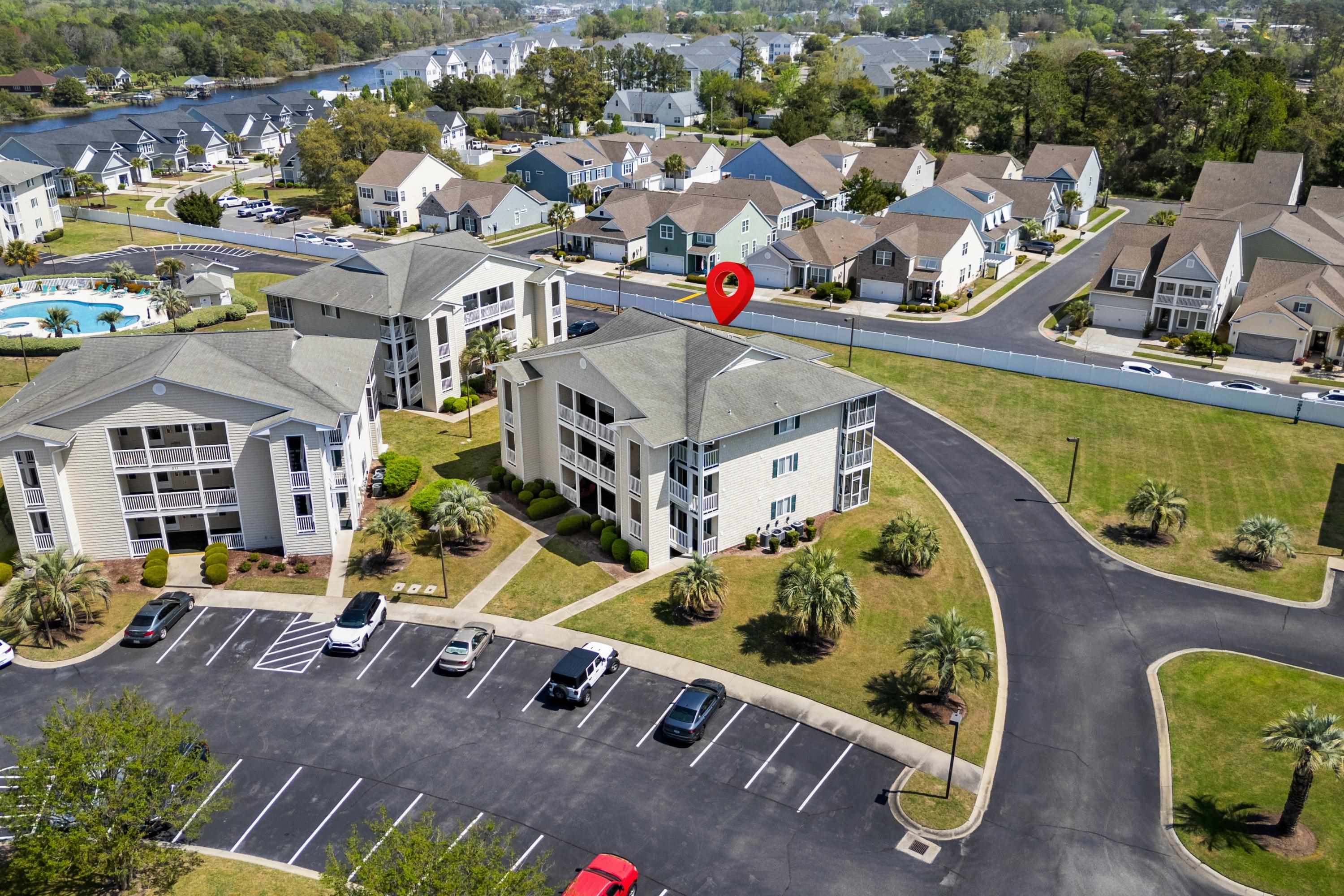 You will love this pristine gated community in Waterway Landing! This community sits on the Intracoastal Waterway and features two pools, a hot tub, five communal docks, boat and RV storage. Along with all of the wonderful amenities this END unit MAIN level condo features 2 bedrooms and 2 bathrooms and a patio. As you enter the condo, you’ll be greeted by a spacious, open-concept living area that is filled with natural light. This is one of the only units with the extended living area and extra windows! The well-appointed kitchen features modern appliances, ample cabinetry, and a breakfast bar, making meal prep a breeze. This open floorplan is great for entertaining with its large living area. The primary bedroom is complete with an en-suite bathroom for added privacy and convenience. The second bedroom is equally spacious, with easy access to the second full bathroom, ideal for guests or family members. Seller has installed a brand new HVAC and a water heater. The HOA includes cable tv, internet, pest control, trash, water and sewer, lawn service and much more. With its ideal location and easy access off of Highway 17 near shopping, dining, and just a short drive to the beach, this condo is an excellent choice for those seeking the perfect blend of comfort, style, and coastal living.