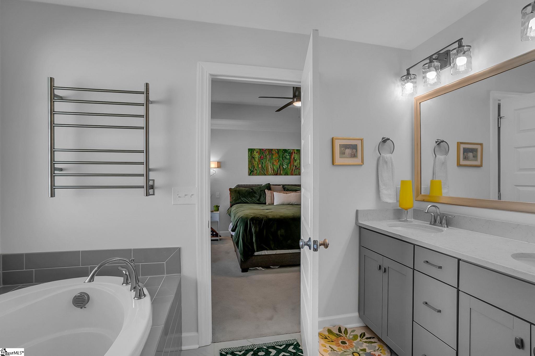 Move-in ready townhome at 213 Nautique Drive in sought-after Smith Mill Landing, located on an interior lot within a waterfront neighborhood. Built in 2021 with thoughtful upgrades, this low-maintenance home offers open-concept living with custom lighting, a tiled fireplace, and an upgraded kitchen featuring quartz countertops, oversized pantry, and deck access. Living and dining areas open to a covered porch and deck overlooking common areas—perfect for relaxing or fishing. A half bath completes the main level. Upstairs, the primary suite includes a walk-in closet, private balcony, and spa-like bath with double vanity, soaking tub, walk-in shower, private water closet, and heated towel bar. Community amenities in this gated waterfront neighborhood include lake access, a boat ramp, and fire pit. Conveniently located near shopping and dining—5 minutes to Pendleton, 15 minutes to Clemson, and 25 minutes to Greenville. HOA covers exterior maintenance and insurance, lawn care, pest control, and street lighting for easy, worry-free living.
