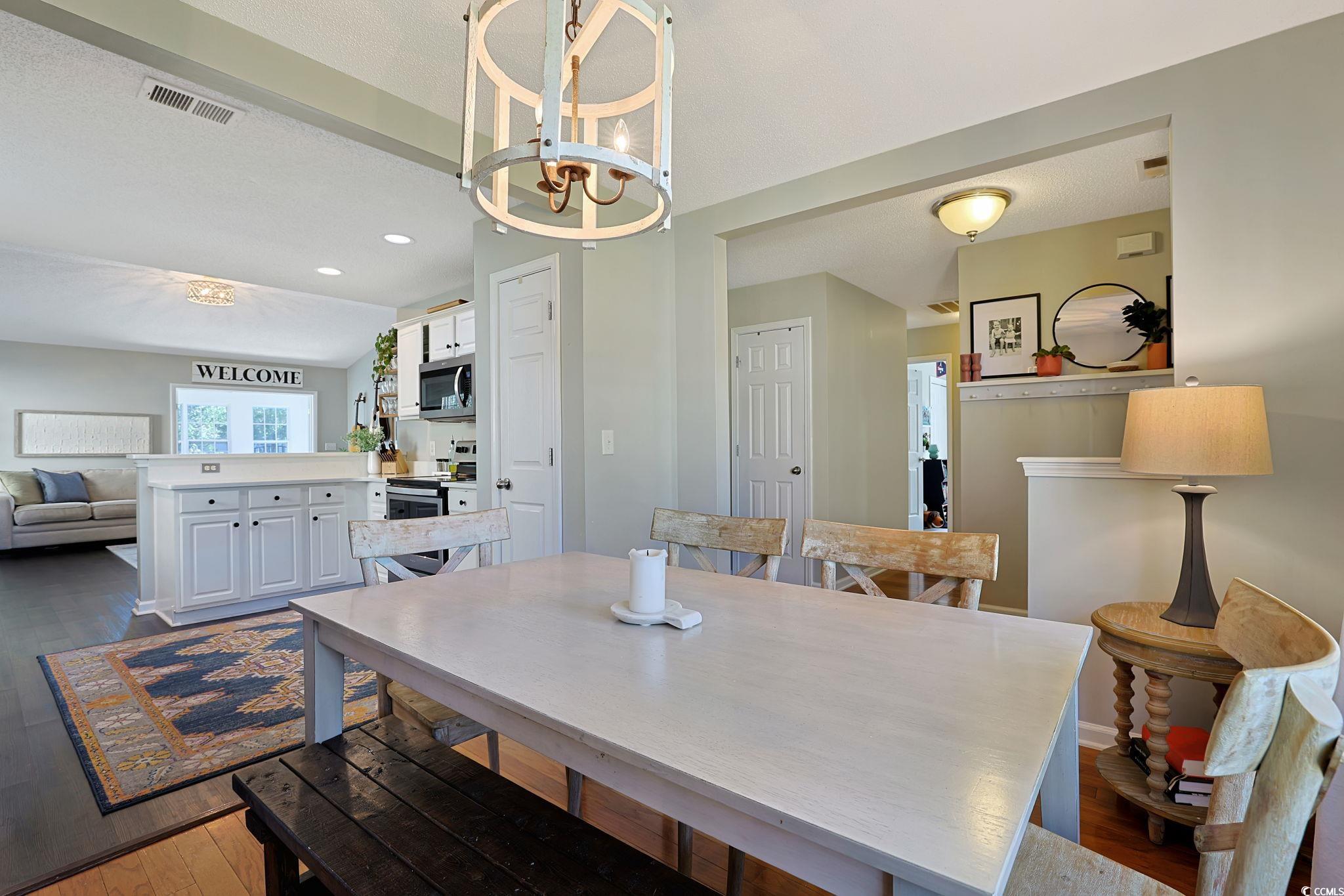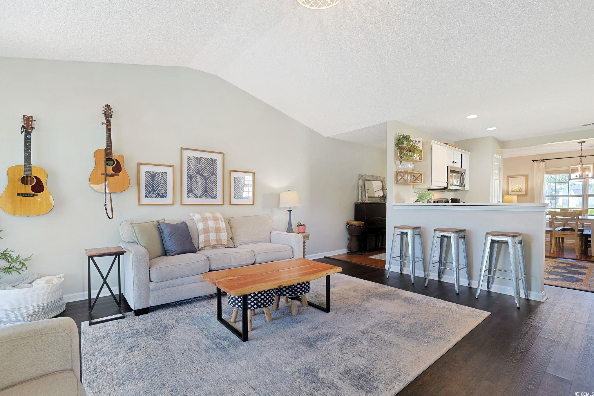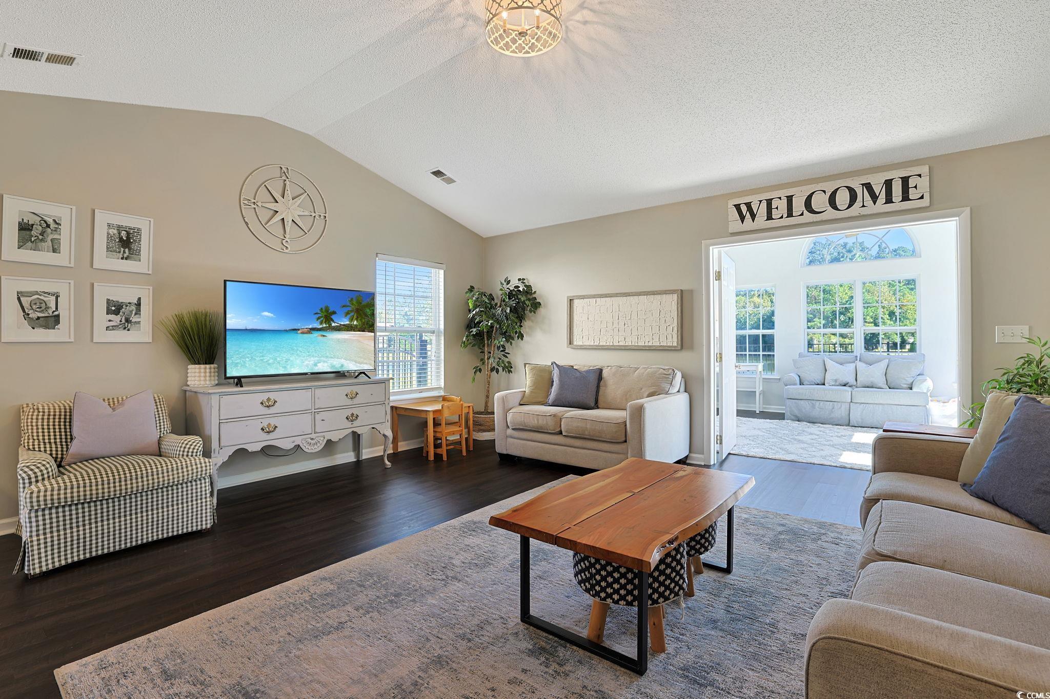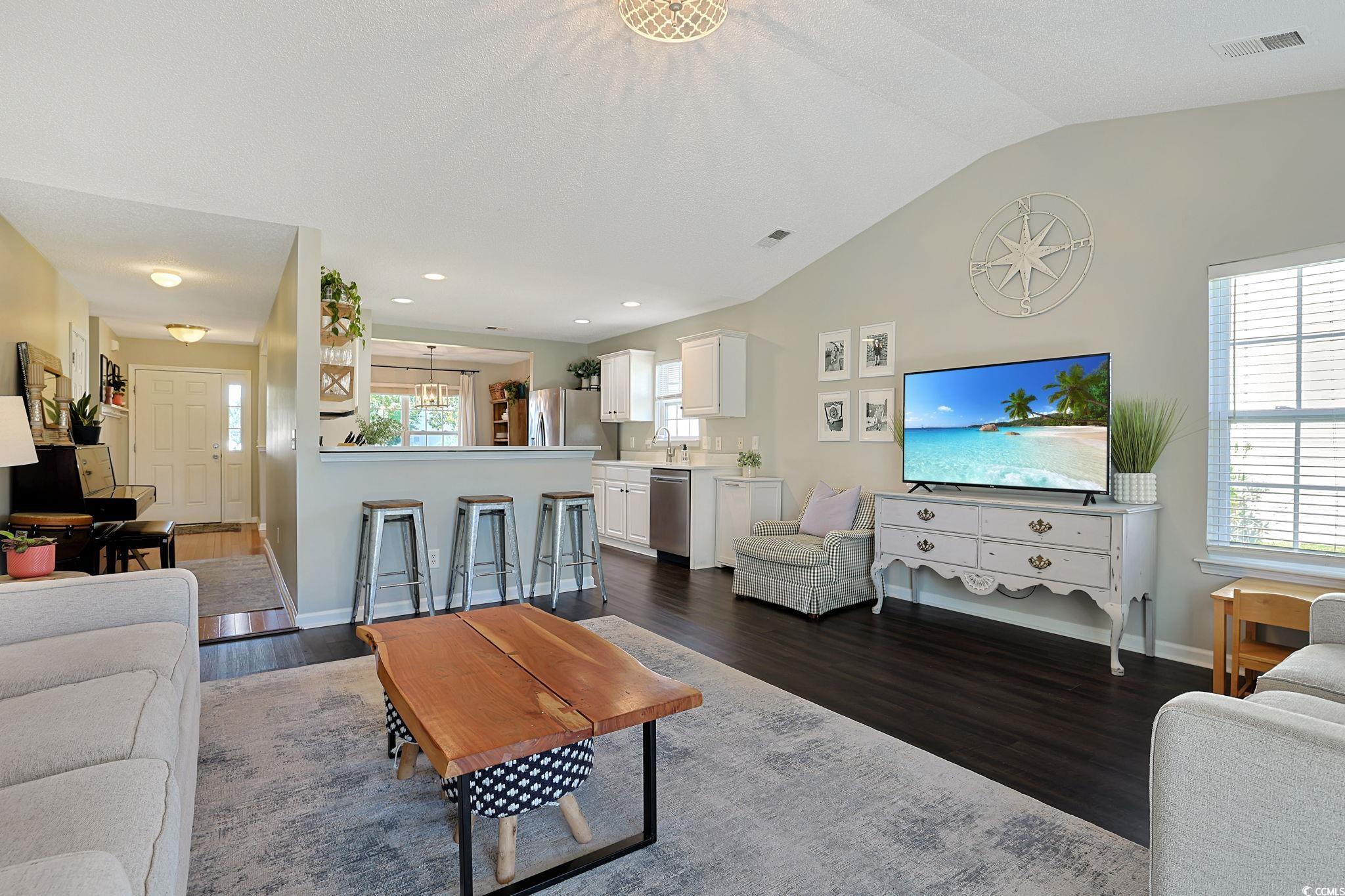 Take a look at this lovely 3 bedroom 2 bath home in the Pinecrest section of the Palmetto Glen community. This delightful home features hardwood, LVP, and carpet flooring, a formal dining room, a large living room with a vaulted ceiling that showcases double door access to the magnificent Carolina room with tranquil lake views. The family style kitchen is equipped with a stainless steel appliance package, a breakfast bar, quartz counter tops, ample cabinet space, recessed lighting, and a practical pantry. The primary bedroom offers a vaulted ceiling with fan, walk-in closet, private access to the primary bath that includes a single sink vanity with a make-up desk, a comfort station, and a timeless tub/shower combo. This home is completed with two additional bedrooms, a full guest bath, a laundry room with extra shelving, a relaxing back patio, back yard fencing, and a two car attached garage. This home affords you easy access to the beach and golfing along with all of the other activities and happenings in Myrtle Beach including fun eateries, award winning off-Broadway shows, public fishing piers, and intriguing shopping adventures along the Grand Strand. Conveniently located to your everyday needs, including grocery stores, banks, post offices, medical centers, doctors’ offices, and pharmacies. Check out our state of the art 3-D Virtual Tour.