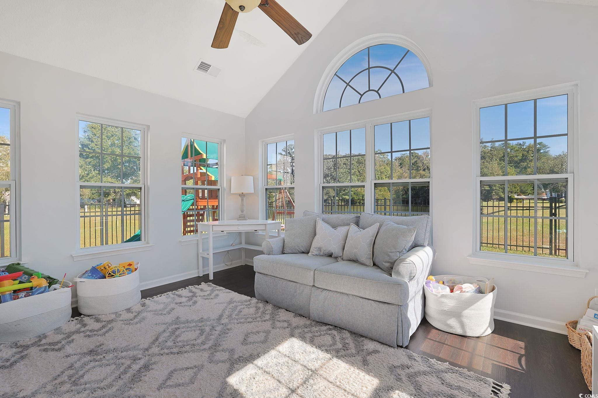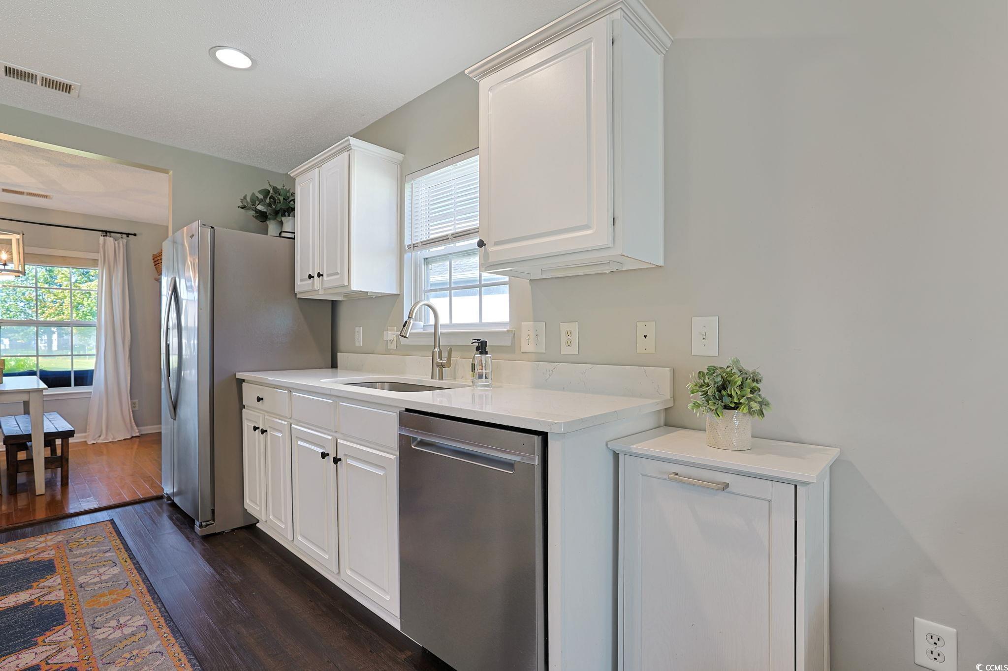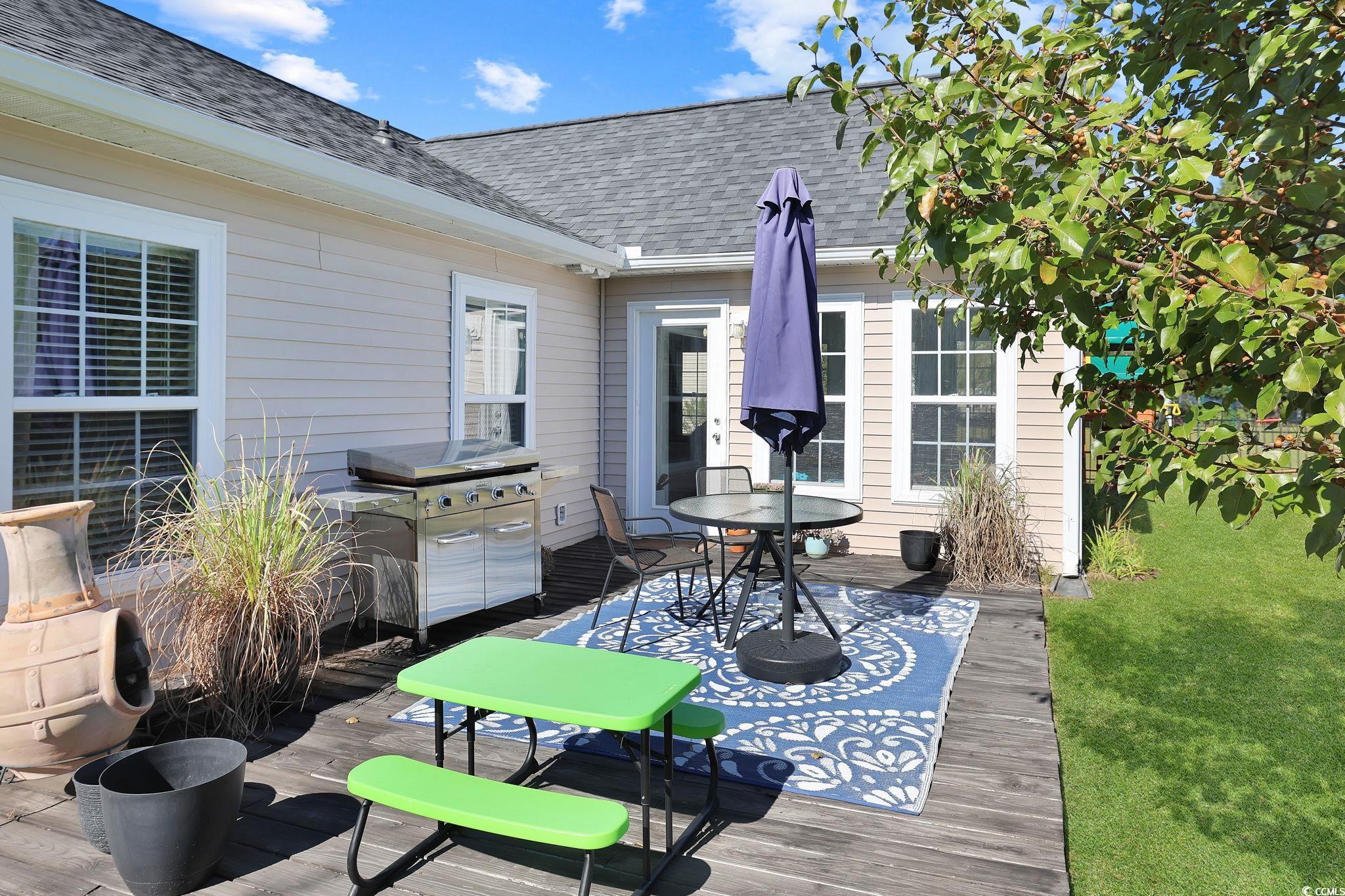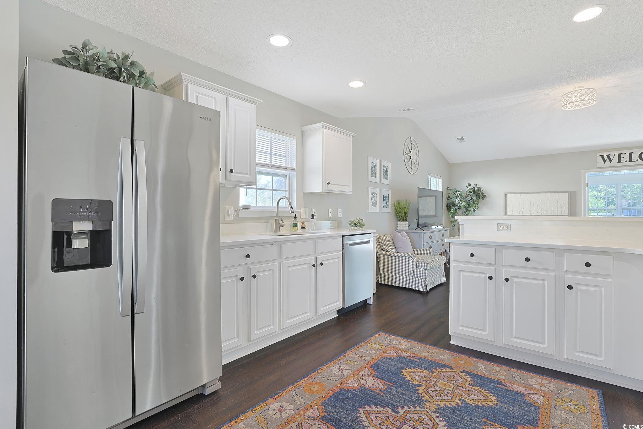 Take a look at this lovely 3 bedroom 2 bath home in the Pinecrest section of the Palmetto Glen community. This delightful home features hardwood, LVP, and carpet flooring, a formal dining room, a large living room with a vaulted ceiling that showcases double door access to the magnificent Carolina room with tranquil lake views. The family style kitchen is equipped with a stainless steel appliance package, a breakfast bar, quartz counter tops, ample cabinet space, recessed lighting, and a practical pantry. The primary bedroom offers a vaulted ceiling with fan, walk-in closet, private access to the primary bath that includes a single sink vanity with a make-up desk, a comfort station, and a timeless tub/shower combo. This home is completed with two additional bedrooms, a full guest bath, a laundry room with extra shelving, a relaxing back patio, back yard fencing, and a two car attached garage. This home affords you easy access to the beach and golfing along with all of the other activities and happenings in Myrtle Beach including fun eateries, award winning off-Broadway shows, public fishing piers, and intriguing shopping adventures along the Grand Strand. Conveniently located to your everyday needs, including grocery stores, banks, post offices, medical centers, doctors’ offices, and pharmacies. Check out our state of the art 3-D Virtual Tour.