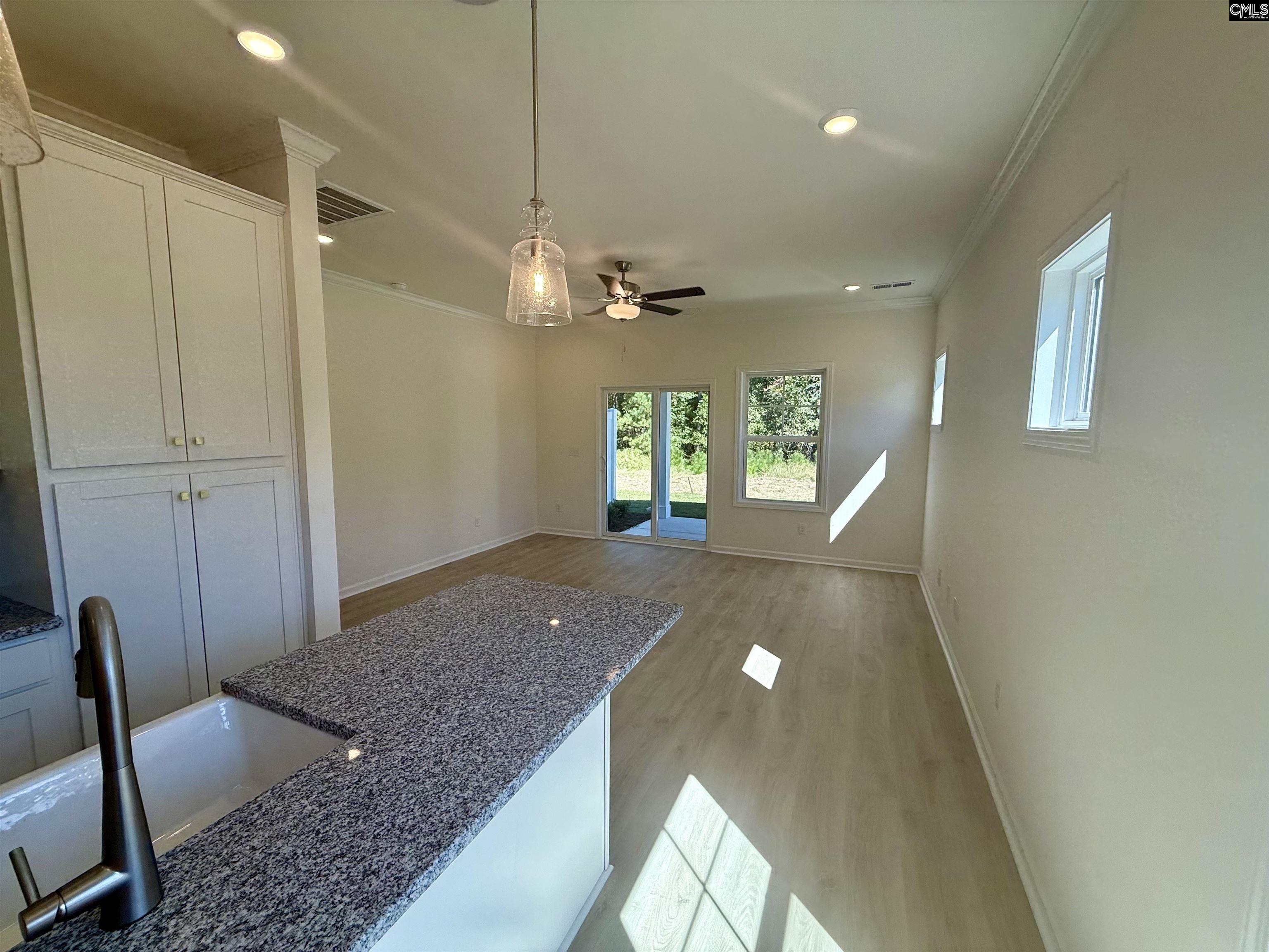 The Southern Breeze II in Walker’s Trail: End Unit TownhomeThis beautifully finished end-unit townhome offers a rare blend of comfort, design, and day-to-day simplicity in one of Lexington’s most accessible and peaceful communities. Set within Walker’s Trail, the home is part of a neighborhood designed to balance quiet surroundings with quick access to shopping, dining, and major routes.Inside, warm oak hardwood stairs lead to an open main level with luxury vinyl plank flooring and upgraded carpeting that flows throughout the living spaces. The kitchen is a showpiece—featuring granite countertops, a white farmhouse sink, herringbone tile backsplash, modern cabinetry, and stainless steel appliances. It’s a space that works as beautifully as it looks.The Executive Trim Package adds crown molding in the entry, kitchen, and great room, while the owner’s suite includes granite counters, comfort-height toilets, and a brushed nickel hinged shower door for a polished, comfortable finish.Additional highlights include smart home automation, a built-in music port with ceiling speakers, full window treatments, upgraded lighting, a smart electronic deadbolt, and a covered rear porch for seamless indoor-outdoor living. Photos shown are of the model home, which is currently staged as a design center and office space. Images may not reflect standard residential layout or furnishings. Actual features and layout may vary and are subject to change without notice. ***MOVE IN PACKAGE OFFERED: Blinds, Basic Refrigerator, Washer and dryer****HOA Includes front and backyard maintenance, termite bond, power washing, roof reserves, entrance and common area maintenance Disclaimer: CMLS has not reviewed and, therefore, does not endorse vendors who may appear in listings.