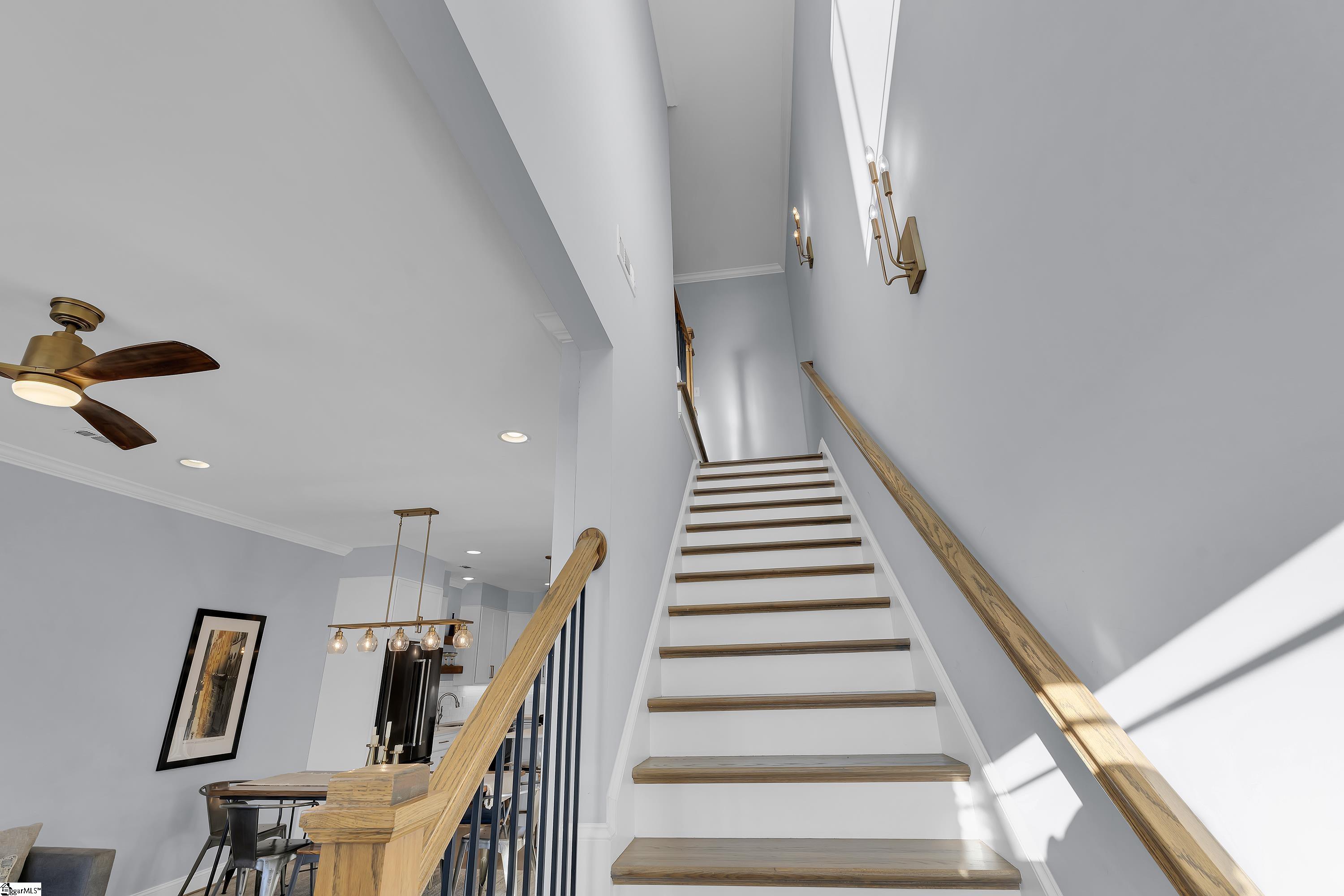 Living at 214 Gibbs Street in the Court View Townhomes means stepping out your front door and straight into the heart of Unity Park life. Morning coffee turns into a walk or bike ride along the Swamp Rabbit Trail, with the tennis courts buzzing nearby and the park coming alive as the day unfolds. The view isn’t just green space, it’s energy, movement, and connection, all framed by natural light pouring into the home throughout the day. Weekends feel effortless. Walk to The Commons for lunch, meet friends downtown without worrying about parking, or simply enjoy watching the rhythm of the park from your windows. Despite being in the middle of it all, the home offers a sense of calm, a front-row seat to Greenville’s most loved outdoor space without sacrificing privacy or comfort. Inside, the layout supports real life. 3 Large bedrooms give everyone their own space, while the first-floor office provides a quiet, dedicated work-from-home setup that’s thoughtfully separated from the main living areas. It’s ideal for Zoom calls, creative work, or hobbies flexible enough to adapt as life changes. Upstairs, the third floor opens to a spacious loft, ideal for children’s hobbies, schoolwork, movie nights, or hosting guests, offering flexible space that grows with you. This townhome offers the rare flexibility of two primary suites, making it ideal for multi-generational living, guests, or simply spreading out. The main-level primary suite is conveniently located just off the primary living spaces and features a spacious bathroom, walk-in closets with custom built-ins, and a walk-in shower. Hardwood floors run throughout the home, complemented by tile in all bathrooms for a clean, cohesive feel. Upstairs, the second primary suite is thoughtfully positioned on the third floor, separated from the additional bedroom by the versatile loft, creating privacy and a true retreat-like layout. Storage is abundant throughout the home, with generous closets ensuring everything has its place. The oversized tandem garage adds even more flexibility, offering space for a workshop, home gym, or additional storage. Outdoor living is just as inviting, with two covered spaces to enjoy: a welcoming front porch at the entry and a covered porch off the living room, perfect for relaxing, entertaining, or enjoying the surrounding views year-round. This is a home for someone who values walkability, wellness, and ease, who wants to stay connected to the city while enjoying the breathing room and light that are so hard to find downtown. It’s low-maintenance living with high-quality experiences, the kind of place where everyday routines feel just a little more special.