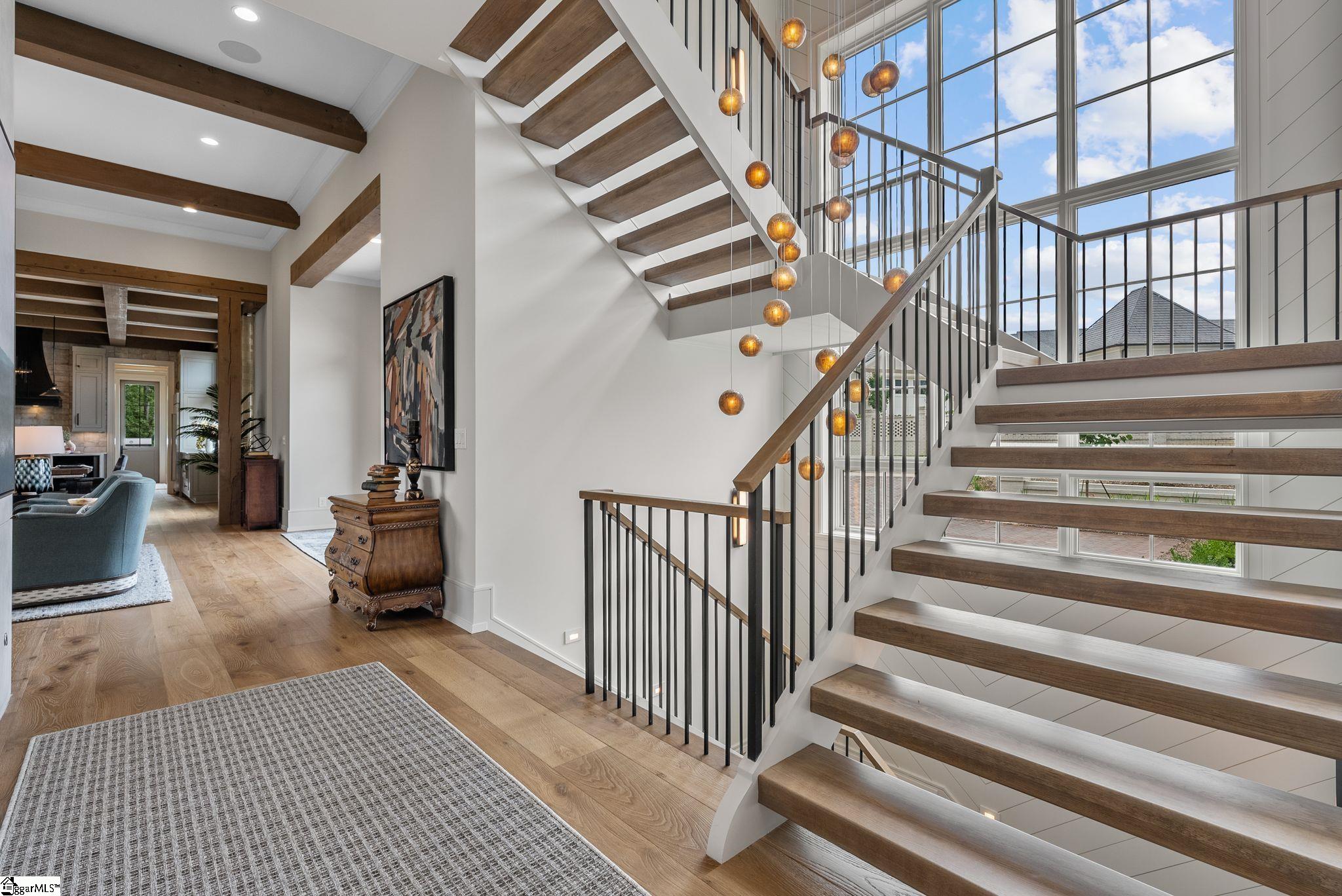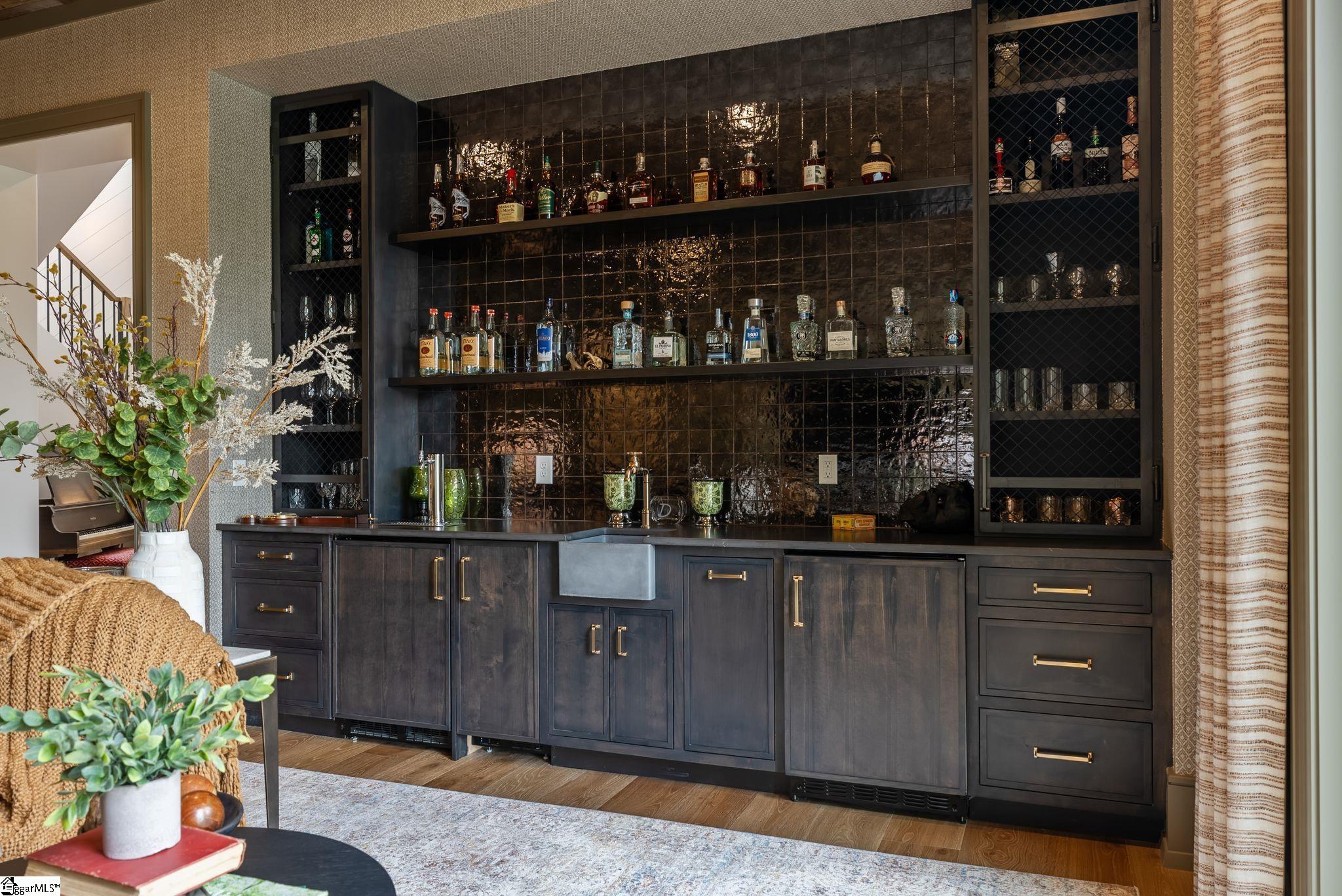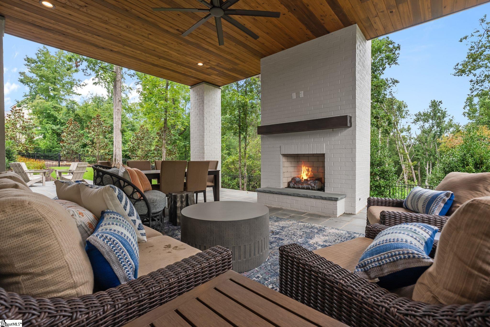 This stunning new custom home blends timeless elegance with modern luxury across three spacious levels, featuring 5 bedrooms, 5 full baths, and 1 half bath. Designed in a sought-after transitional style, the home showcases a concrete plank and brick exterior, impeccable craftsmanship, and high-end finishes throughout. The main level offers a true chef's kitchen complete with built-in microwave, wall oven, gas range with vent hood, dishwasher, disposal, refrigerator, large walk-in pantry, mini fridge, and kegerator - ideal for entertaining. The kitchen opens to a grill deck with built-in grill and flows seamlessly into the great room with a masonry fireplace and gas logs. A formal dining room adds a touch of sophistication, while the gleaming hardwood floors throughout elevate every space. The primary suite on the main level is a private retreat with its own coffee bar, dual vanities, multiple closets, and a spa-inspired bath with soaking tub and walk-in shower. Also, on the main level are a walk-in utility/laundry room with sink, a 2-car garage, and a screened porch with a raised-hearth fireplace, perfect for relaxing year-round. The upper level features a flexible bedroom or home office with a private ensuite bath. The expansive walk-out lower level includes 3 large bedrooms, each with its own ensuite bath, a dedicated gym/dog room with rubber flooring, and a generous recreation room with wine cellar that opens directly to the covered patio. The outdoor living space includes a cozy outdoor fireplace - perfect for entertaining or quiet evenings at home. From its elegant interior touches to its thoughtfully designed indoor-outdoor living spaces, this home offers the perfect balance of comfort and luxury in one of the area's most desirable communities. All furnishings are included in the listing price!