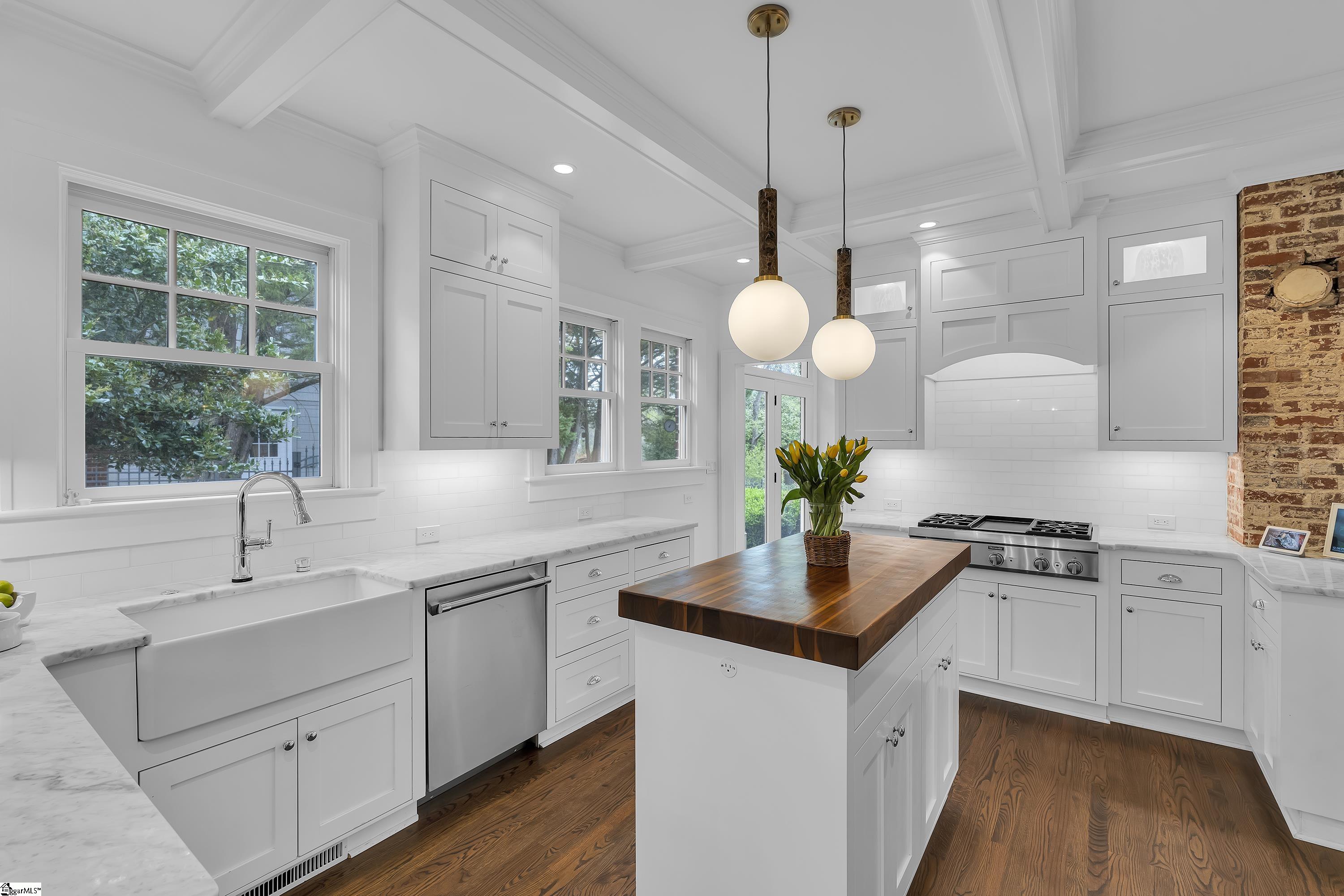 This classic North Main brick home has been carefully reimagined, blending original charm with a fresh, refined aesthetic, all within easy walking distance of some of Greenville’s favorite local spots. Thoughtful updates throughout create a warm, inviting home, with clean finishes and an easy flow designed for both everyday living and entertaining. The kitchen serves as a natural gathering space, opening to a side terrace that extends the living area outdoors. The backyard is a true highlight—an unusually deep, terraced lot that offers both privacy and flexibility, a rare find this close to downtown. Whether hosting friends or enjoying a quiet morning, the outdoor spaces feel both usable and intentional. The primary suite is a standout, featuring a beautifully designed bath, generous and well-appointed closet space, and a private screened porch overlooking the backyard. Morning light fills the space, with sunrise views that bring a subtle, almost mountain-like feel. Additional living areas, including a light-filled sunroom, provide flexibility for relaxing, working, or gathering. With a fully gated driveway and yard, walkable access to neighborhood favorites like Community Tap, D’Al’s pizza, Harris Teeter, and multiple parks plus proximity to downtown Greenville, this home offers a unique blend of character, thoughtful design, and everyday livability in one of Greenville’s most loved neighborhoods.