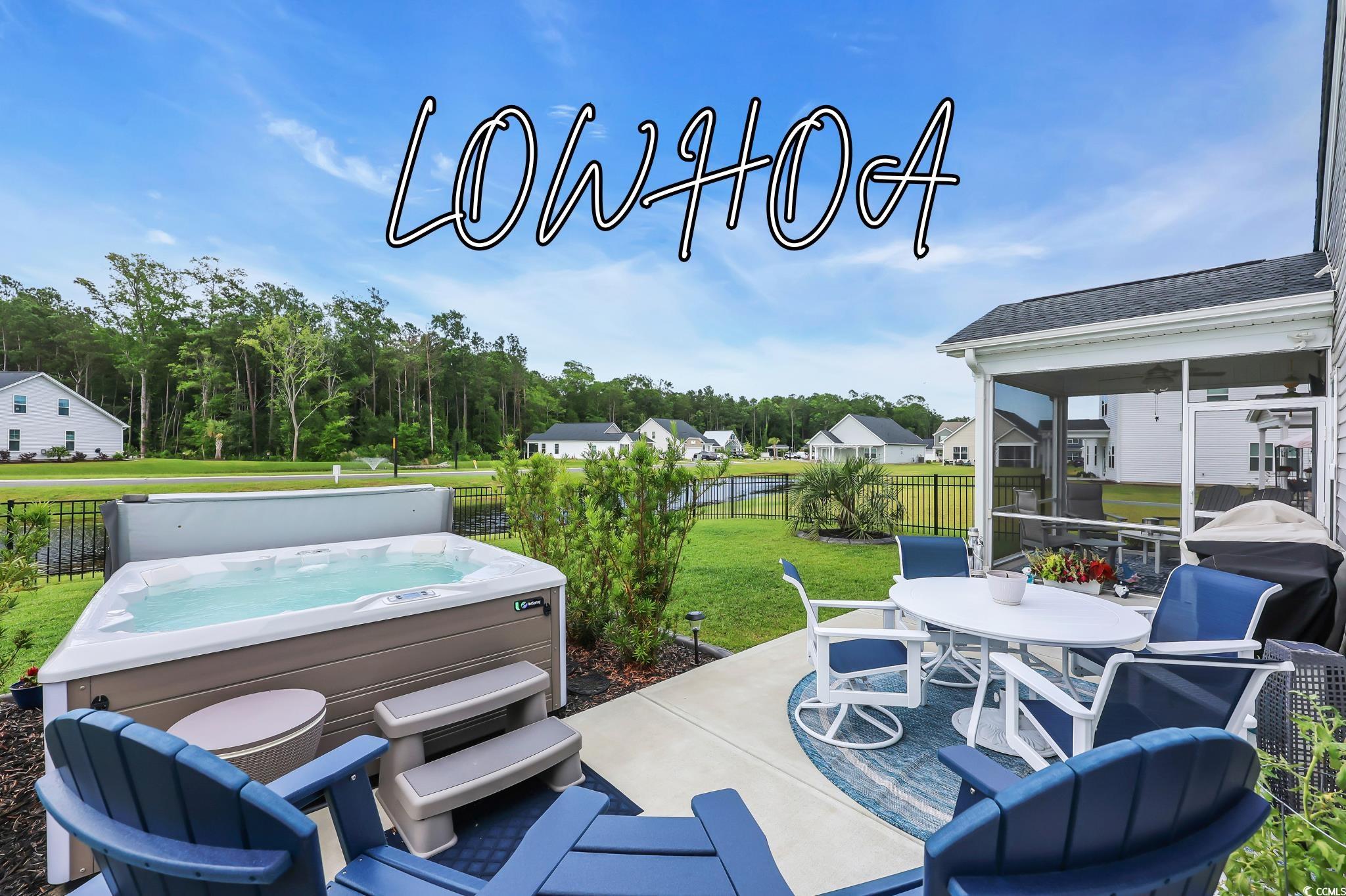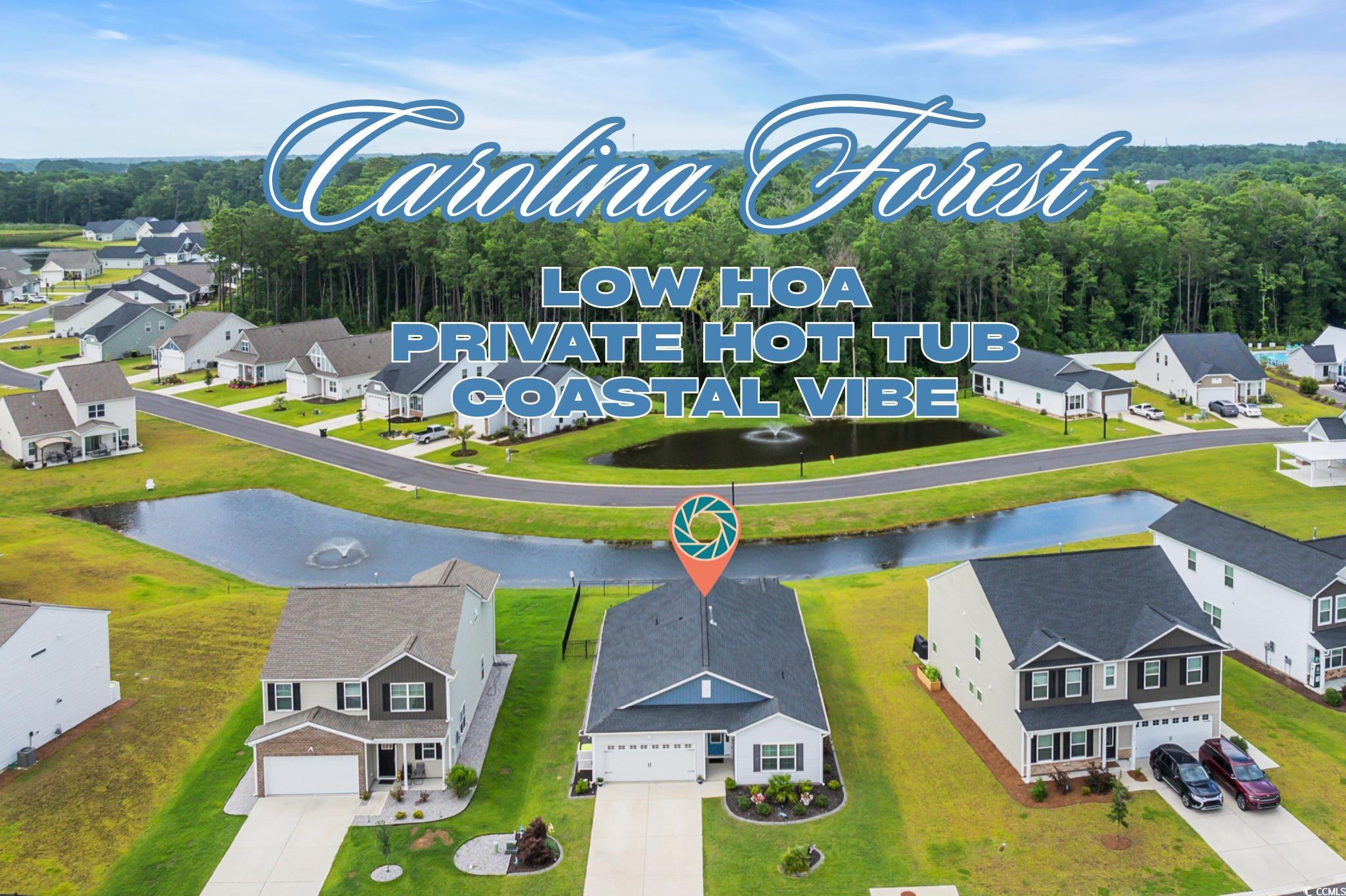 Welcome to your perfect MOVE-IN-READY home in Myrtle Beach! Located in the most popular and fasted growing area in Carolina Forest, enjoy LOW HOA, with great amenities, including a gated pool. Home comes with a private Hot Springs HOTTUB. This SINGLE-LEVEL home is only a few miles from the beach, trending shopping, dining. Our floorpan features 3-bedrooms, 2-bathrooms, and comes with a premium pond-view, and is only a few blocks from the BRAND-NEW Pine Island Elementary School. Step outside to your own coastal backyard retreat—enjoy a screened-in-porch, extended patio, metal fencing, palms, and concrete curbing. Inside, you'll find upgraded light fixtures and faucets, stainless steel appliances, and a fully finished garage. This home has been lovingly maintained and is perfectly waiting for you to relocate to Myrtle Beach!