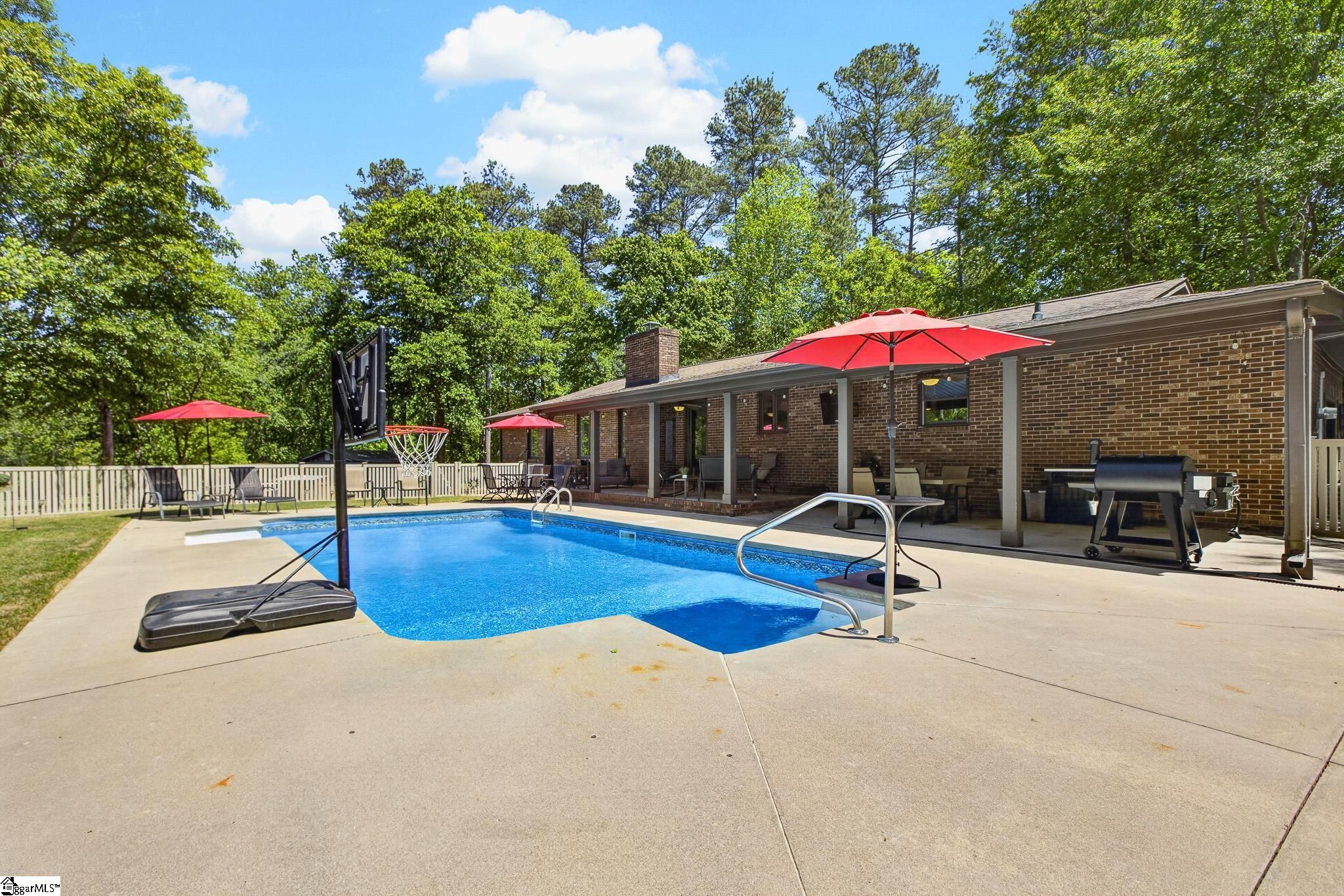 Two tax map numbers being sold together create a rare opportunity to own nearly 12.5 acres of beautiful land, centrally located in a highly sought-after area, complete with a home, pool, barn, shop, and more—all shaped over years with significant investment, care, and intention. A paved entrance winds through trees, bushes, and flowering landscape, giving the property a tucked-away, private feel from the moment you arrive. The main parcel (10.25 acres) is where everything comes together—a well-kept, one-level ranch with an open, easy layout that naturally lends itself to gathering. The owners primarily use the side entry, known as “The Lounge,” a spacious, relaxed area that has become the go-to spot for hosting, game days, and everyday living. From there, the home opens into a large kitchen and dining space with updated countertops, beautiful cabinetry, and room to spread out. The great room centers around a fireplace and opens to a massive covered back porch overlooking the pool and land beyond. The fenced pool area includes an oversized gate designed for easy access and smooth movement of larger equipment, allowing you to transition from pasture to yard with ease. From here, the setting really opens up—overlooking a mix of pasture and beautifully cleared land with large shade trees throughout, along with the riding area featuring arena lighting and the barn just beyond. The home offers three bedrooms and two updated baths, all maintained with consistency and care. Major system updates have already been taken care of, including new Pella windows throughout, a fully encapsulated crawl space, a new heat pump and ductwork installed in 2024, and a septic system with tank and lines replaced in 2020. The pool liner has also been recently replaced, adding to the overall upkeep and maintenance of the property. Outside, the property continues to deliver. A four-stall barn with tack room is already in place, along with designated areas where a round pen and arena have previously been set up. The land itself allows for riding throughout, with a layout that supports both function and flexibility. Over the years, this property has supported a true mini-farm lifestyle—including goats, pigs, horses, and even a miniature donkey—giving a sense of just how versatile the space can be. The shop is a standout feature—large enough to accommodate boats, vehicles, tractors, and equipment, with power already in place and a covered area off the back for additional use. There’s also a goat pen and multiple utility spaces that make this property as practical as it is enjoyable. The second parcel (2.2 acres) adds even more flexibility, offering road frontage, a septic system already in place, a carport, and an RV hookup—making it a great option for an additional homesite, guest setup, or future expansion. All of this is just minutes from newly added conveniences including Starbucks, Wendy’s, and Zaxby’s, along with quick access to Interstate 385. BridgeWay Station is just a short drive away, and you’re also close to the heart of Fountain Inn. Downtown Greenville is approximately 20 minutes away, and Greenville-Spartanburg International Airport is within easy reach. Simpsonville conveniences—including shopping, dining, and access to Simpsonville Main Street—are just a short drive as well. This home and property is in the heart of one of the US most highly ranked living areas! Decades of work have shaped this property into a beautiful, functional space—ready to be enjoyed from day one, with room for horses, animals, and more.