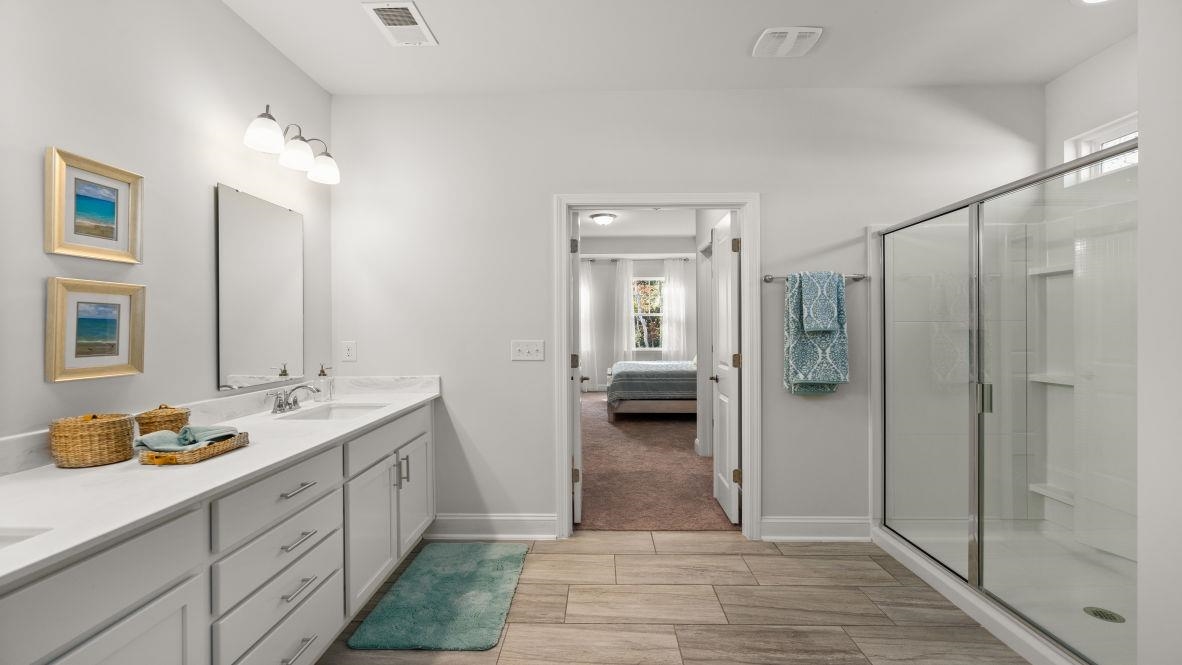 Welcome Brunswick Plantation! A gated community with 24 hours security, 27 hole Championship Golf Course on site (membership not included), 11,000 sq. ft. amenity center with meeting and activity rooms, fitness center, two pools (salted indoor and outdoor), indoor catering kitchen, outdoor grilling area, walk to restaurants onsite, multiple tennis and pickle ball courts. Close to shopping and dining in Calabash and the Myrtle Beach area in SC. The Litchfield Plan – Where Style Meets Smart Living Welcome to The Litchfield, a thoughtfully crafted single-level home blending comfort, elegance, and modern convenience. From the moment you step onto the inviting front porch, you’ll feel the warmth and charm that make this home so desirable. Step inside to a stunning open-concept layout featuring soaring 11' ceilings, a spacious great room with a seamless flow into the gourmet kitchen and dining area. Perfect for entertaining or everyday living, this space is filled with natural light thanks to a 4-panel sliding glass door that opens to a covered rear porch—an ideal spot to relax and enjoy the outdoors. The chef-inspired kitchen is both stylish and functional, boasting a large island with breakfast bar, quartz countertops, stainless steel appliances, and a corner walk-in pantry for all your storage needs. The private owner’s suite, tucked away at the back of the home, is a true retreat. Featuring a tray ceiling, dual walk-in closets, a double vanity, separate linen closet, and a luxurious 5' tile shower, this suite offers space and serenity. Three additional bedrooms are thoughtfully positioned at the front of the home to provide separation and privacy. Additional features include a spacious 2-car garage with opener. And with America’s Smart Home technology package included, you’ll enjoy ultimate convenience and peace of mind—control your thermostat, front door light and lock, and video doorbell right from your smartphone. The Litchfield Plan – Timeless design. Smart living. Welcome home. *Photos are of a similar Litchfield home. (Home and community information, including pricing, included features, terms, availability and amenities, are subject to change prior to sale at any time without notice or obligation. Square footages are approximate. Pictures, photographs, colors, features, and sizes are for illustration purposes only and will vary from the homes as built. Equal housing opportunity builder.)