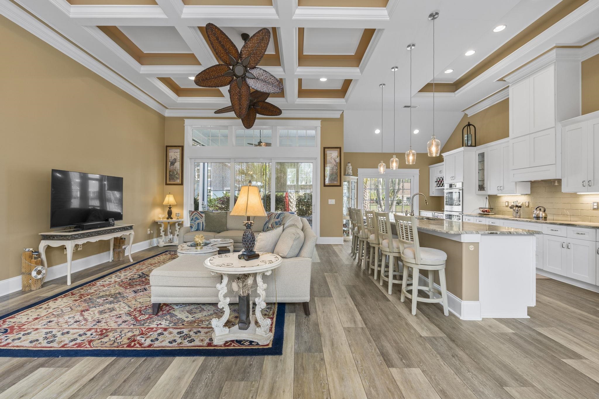 Beautiful home in Cypress River Plantation - a highly desirable gated ICW community with beautiful amenities - especially for boater enthusiasts. This well-appointed all brick, 4 bedroom, 3 bath home comes with lots of custom features. Soaring 15 ft high ceilings with triple crown molding, coffered and double tray ceilings with lighting are in multiple areas of the home. The kitchen has a huge 12 ft island that can easily seat 8 people equipped with Bosch and Jenn-Air top end appliances to include a double oven (new), induction cooktop, and wine frig. The open concept split bedroom floor plan has a 3-way patio slider door with access to the screened-in porch with tile floors and sun shades overlooking a beautiful fenced-in back yard with paver patio and pond view. The primary ensuite has an expansive dual-head walk-in tile shower and long double sink vanity and walk-in closet with custom shelving. The Bonus Room has a full ensuite with full bath, large walk-in closet and access to the walk-in attic storage area. The HVAC condenser with a 3-zone damper control was replaced last year. The laundry room includes the washer & dryer (a year old). The lot includes beautiful landscaping equipped with irrigation, 12 assorted palm trees, Japanese maple, and several varieties of fruit trees including clementine, fig and plum. The side-load garage has plenty of storage with storage room and a 40 amp outlet for an electric car charger or RV hookup. Cypress River Plantation has a secured main entrance with 24-hour security. Amenities include: private boat landing, day docks on the waterway, large clubhouse with kitchen, meeting rooms, fitness center, Olympic size outdoor swimming pool, grilling and fire pit, play area, tennis, pickle ball and basketball courts with boat storage in the community. Check out the virtual tour links to walk through the home.