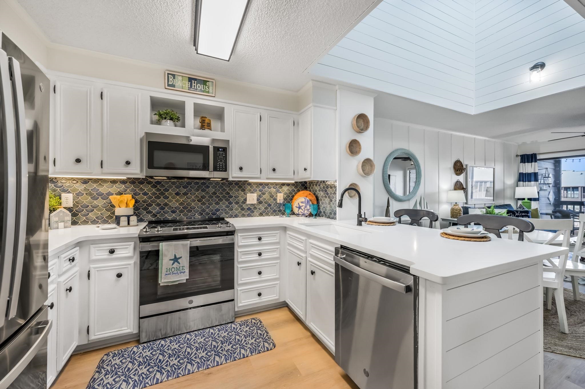 Stunning, Fully Renovated Condo at Tilghman Beach & Racquet If you’ve been waiting for a move-in ready, beautifully updated beach condo — this is it! This adorable 3-bedroom, 2.5-bath unit at Tilghman Beach & Racquet was completely renovated in 2024 and shows like a model. From the moment you walk in, you’ll love the open floor plan and the large shiplap-accented skylight that fills the space with natural light. The coastal décor and thoughtful updates make this condo feel warm, fresh, and inviting. 2024 Updates Include: New luxury vinyl plank flooring throughout Fully updated bathrooms with: Tiled walk-in shower in the primary suite New tub/shower combo in guest bath New vanities, faucets, lighting & fixtures Freshly painted interior walls and doors New décor, new mattress, and some new furnishings Completely refreshed kitchen featuring: New stainless steel appliances White quartz countertops New backsplash Shiplap bar detail Updated wet bar with wine fridge Newer washer and dryer Comfortable & Functional Layout The spacious primary suite offers a large closet, private balcony, and beautifully updated tiled shower. The second bedroom is tucked away down a private hallway next to a fully updated bathroom. The third bedroom sits at the front of the condo and features its own updated half bath — perfect for guests. The living and dining areas overlook a screened porch with views of the courtyard, community pools, tennis courts, and pickleball courts. There’s also a second screened porch at the front with a convenient laundry and storage closet. Community & Location Highlights Top-floor unit in an elevator building Golf cart community (owners allowed golf carts) Multiple pools Tennis & pickleball courts Oceanfront community 24/7 on-site maintenance staff Located just one block from Main Street in North Myrtle Beach and directly across from the beach, you’re within walking distance to restaurants, shopping, coffee shops, entertainment, and year-round festivals. Even better — the seller currently rents through Airbnb and will provide rental history to qualified buyers. Units this updated and this charming are hard to find. This one checks every box — whether you’re looking for a second home, full-time residence, or investment property.