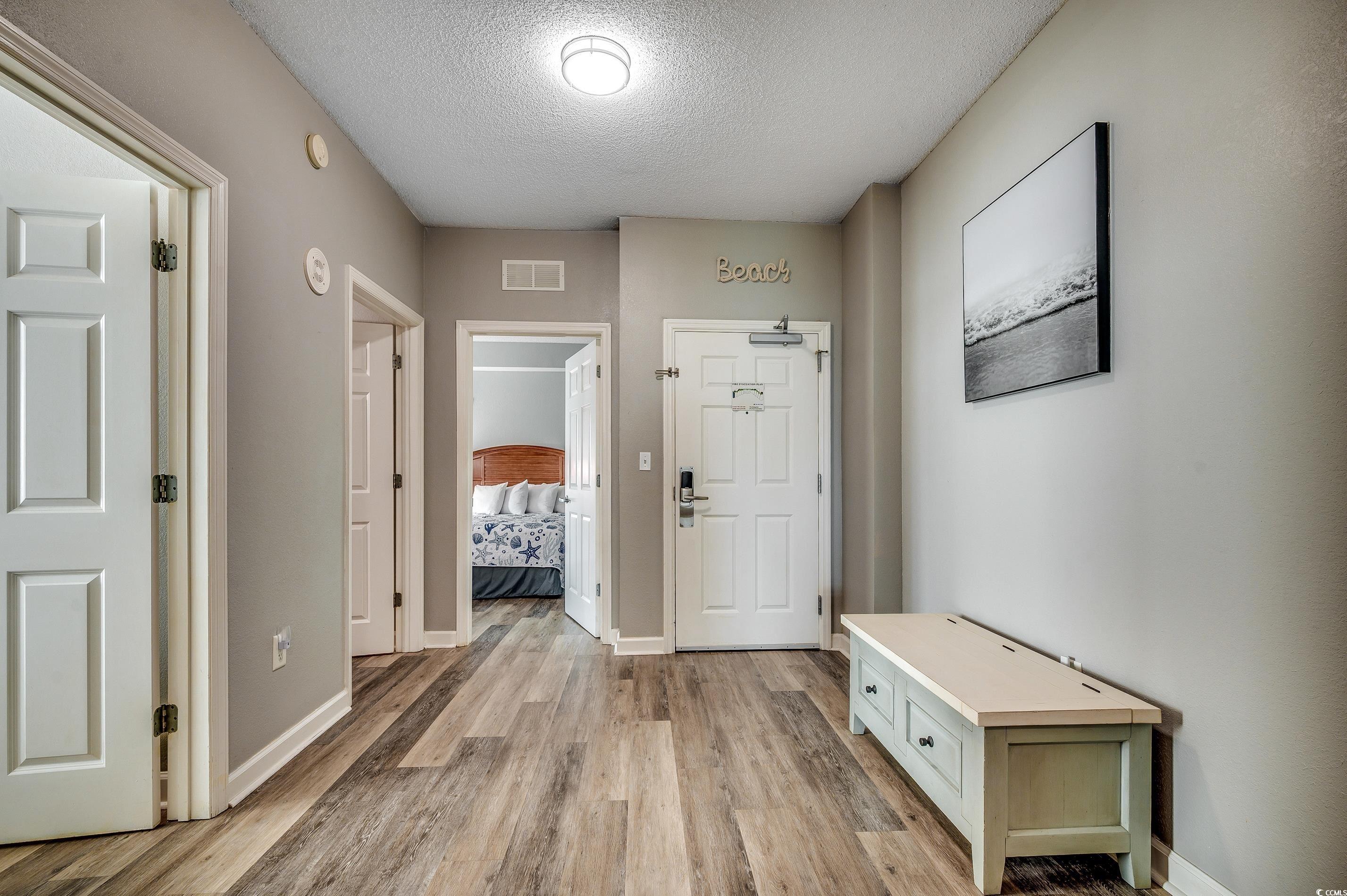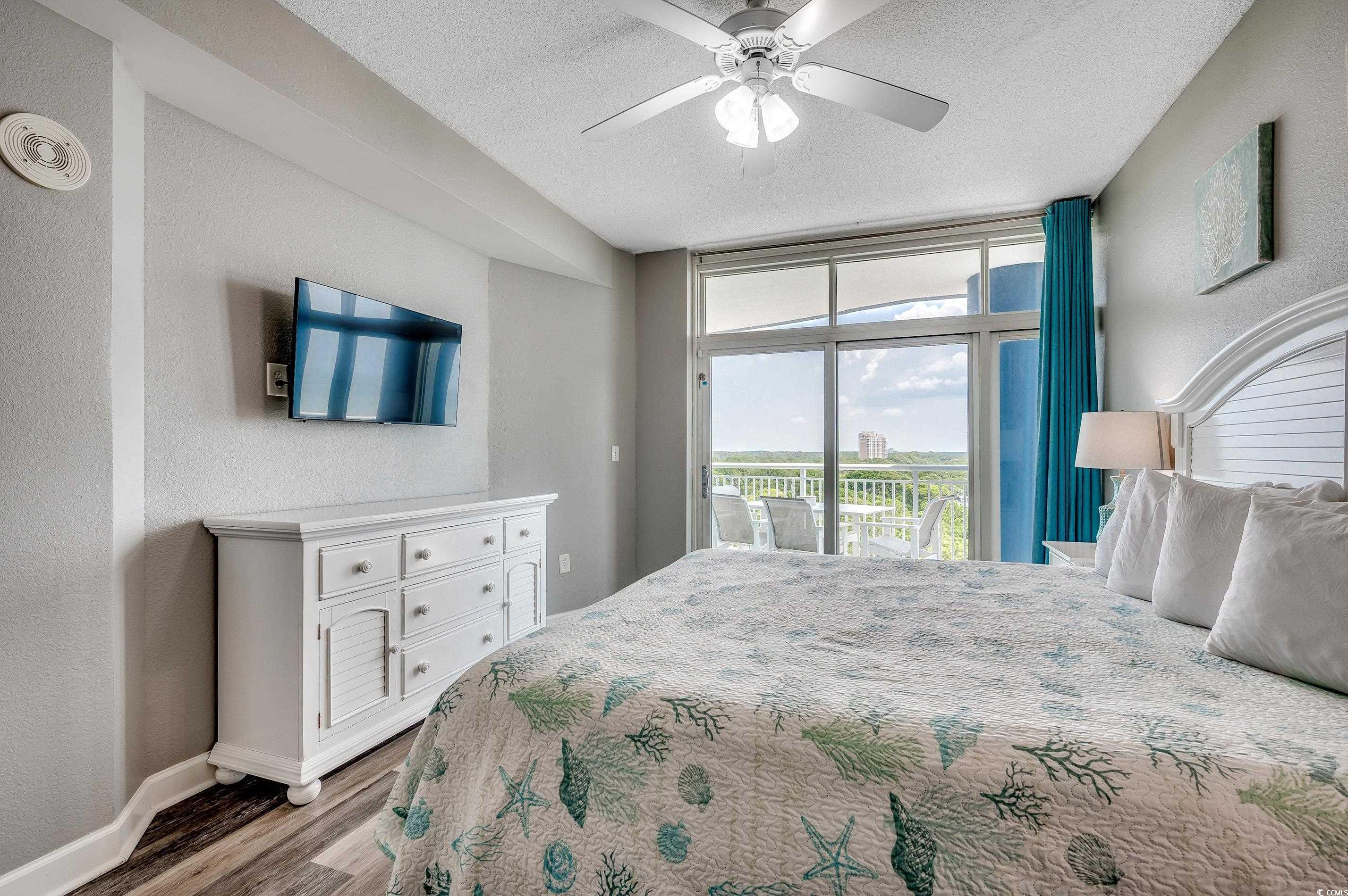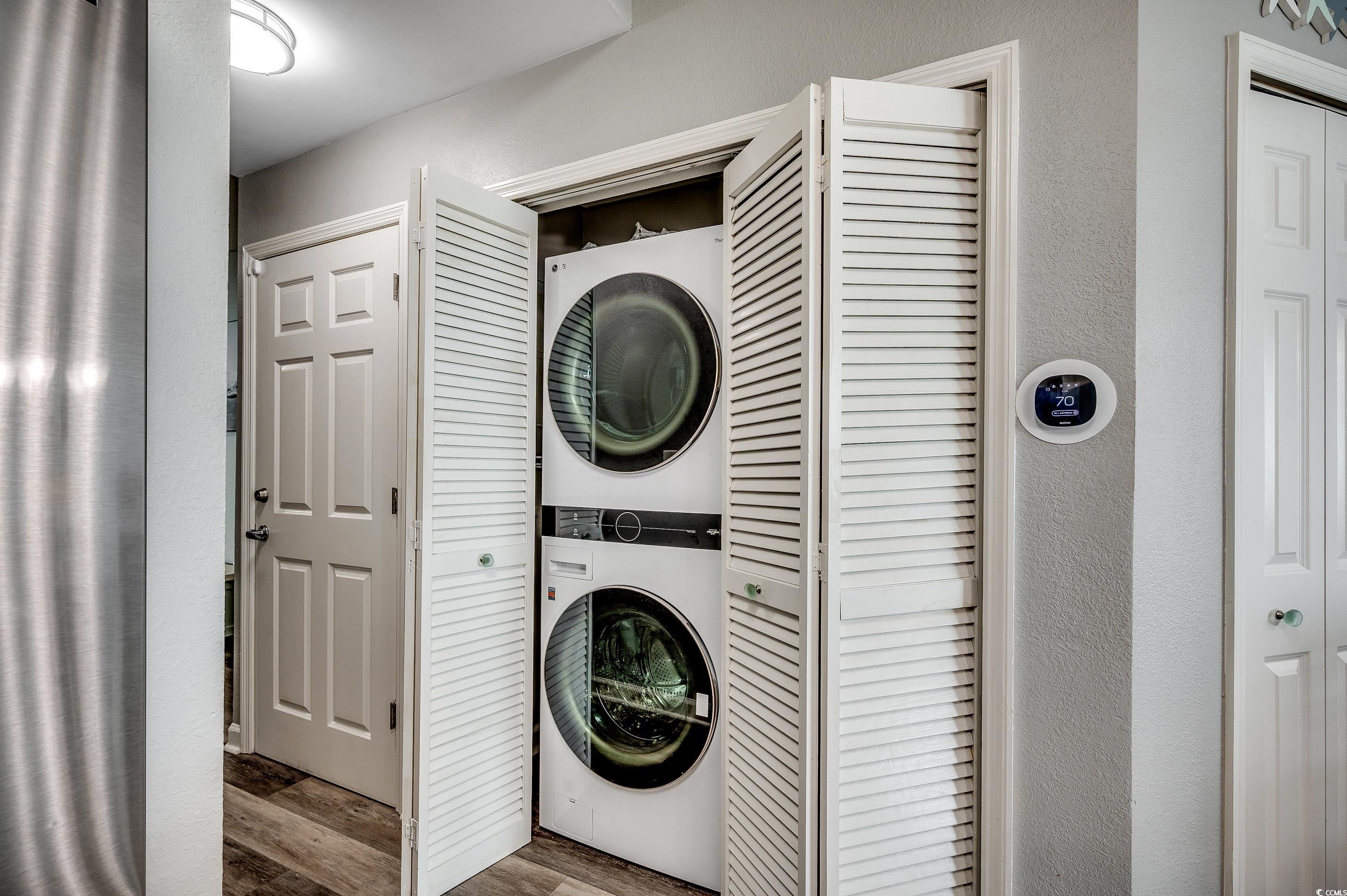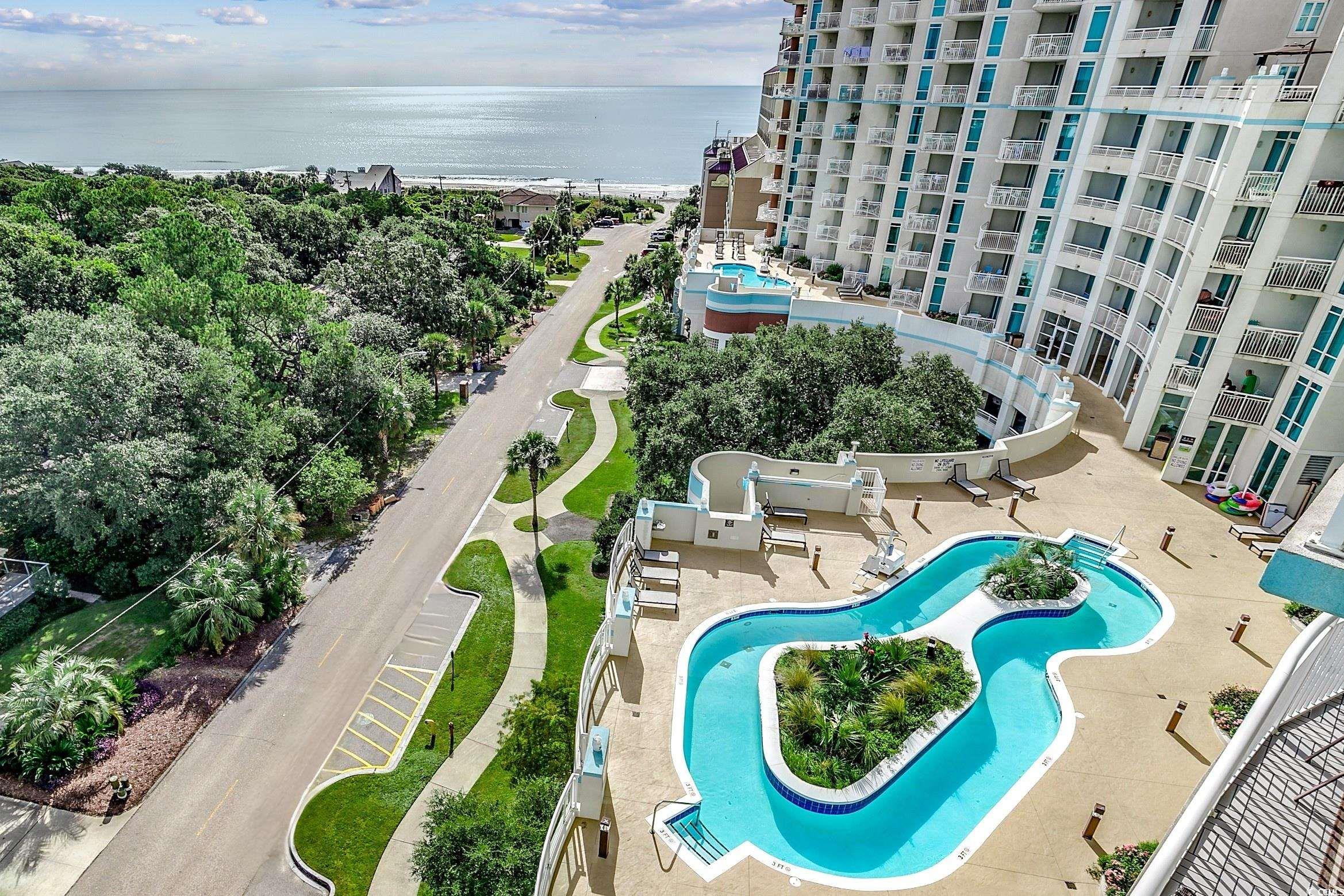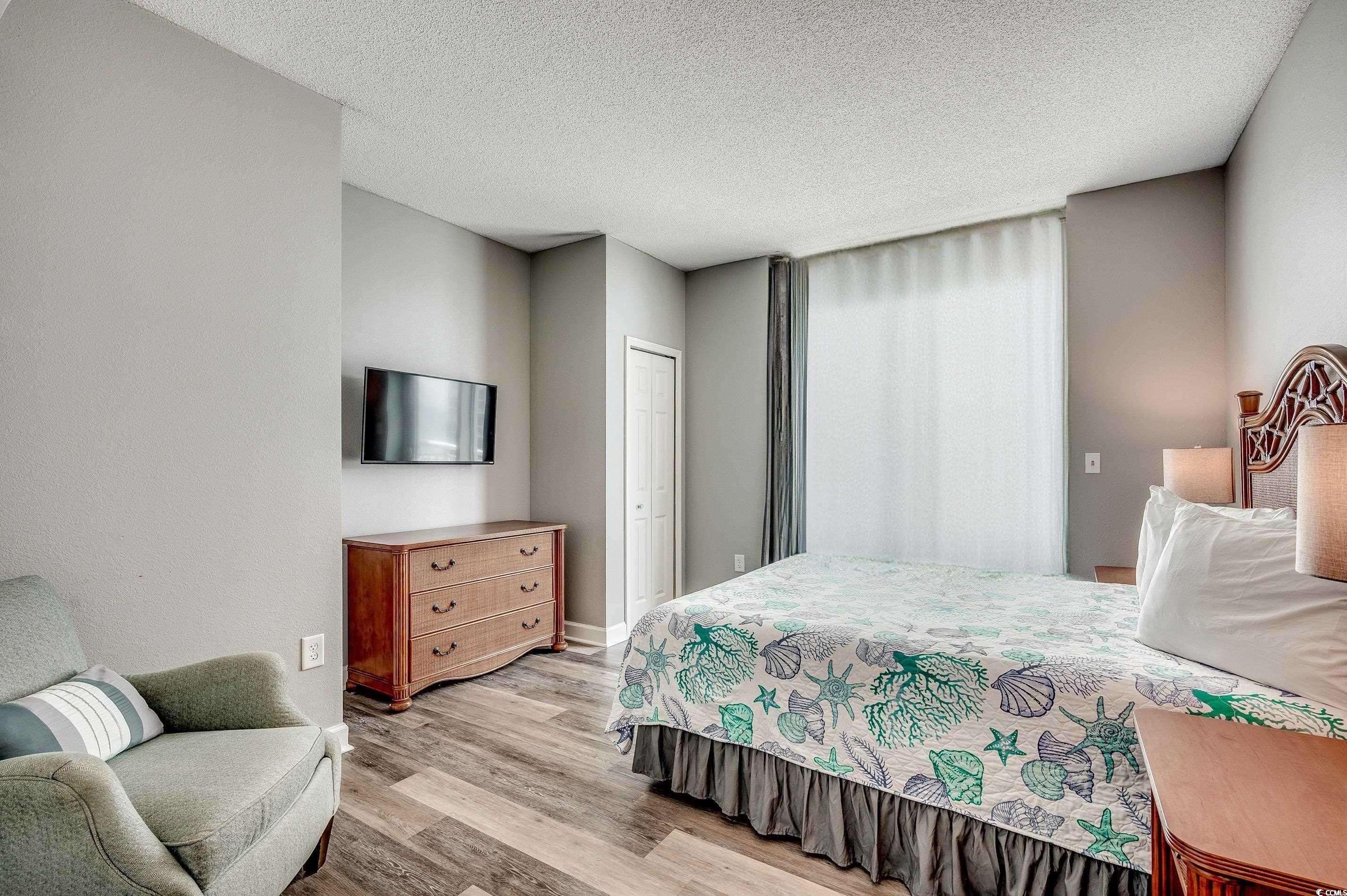 Experience all-inclusive coastal luxury in the Golden Mile area! Discover the perfect blend of style, comfort, and ocean views in this beautifully upgraded, fully furnished 3-bedroom, 2-bath corner end unit at The Horizon on 77th North. Perched on the 5th floor, this condo offers breathtaking views of both the ocean and lush trees from two spacious private balconies—perfect for enjoying morning sunrises, evening stargazing, or simply listening to the soothing waves from your bed. Step inside to a fresh, modern interior featuring upscale LVP flooring, crown molding, and a kitchen with stylish cabinets, quartz countertops, chic backsplash, and a stove with built-in air fryer. Recent appliance upgrades include a microwave (2024), washer/dryer (2024), and refrigerator, stove, and disposal (2021). Smart TVs in every room, bedside charging stations, and tasteful furnishings—including all kitchenware—make this property fully turn-key for a short-term rental investment, second home, or primary residence. The owner suite is a private retreat with its own balcony access, a luxury walk-in shower with stone detail, and serene ocean and tree views. Additional updates include a programmable Smart Ecobee thermostat with auto humidity shutoff, a Digital Lockly keypad entry, and the HVAC was replaced in (2021). This residence also boasts exceptional building features with a recently painted exterior (approx. 2 years ago) and clean, dry interior hallways—no need to walk through the rain. Large, gated parking garage with secure, keycard-access elevator. Overnight security for added peace of mind. Resort-style amenities including indoor/outdoor pools, lazy river, hot tub, fitness center, and rooftop terrace. Motorcycle and golf cart friendly for both owners and guests. HOA fees include: all building exterior/structure insurance, electricity inside the unit, water/sewer, cable, internet, trash pickup (with a convenient garbage chute), and more—covering nearly all of your monthly costs. Owners are also offering a 2-10 Home Warranty for added peace of mind. Location highlights: Short stroll to The Cypress Room—one of the best oceanfront restaurants in the area, Blueberries for a top-notch brunch, Crave for delicious Italian cuisine, PGA Tour golf at Dunes Club and Grande Dunes public course. Close to Barefoot Landing, boutique shopping, and live music. Oceanfront sidewalk with built-in exercise equipment for an active lifestyle. Beautifully upgraded, fully furnished, and ideally located, this ocean-view oasis is ready for you to move in or start generating rental income immediately. Schedule your private showing today and explore the virtual tour! Square footage is approximate and not guaranteed. Buyers responsible for verification.