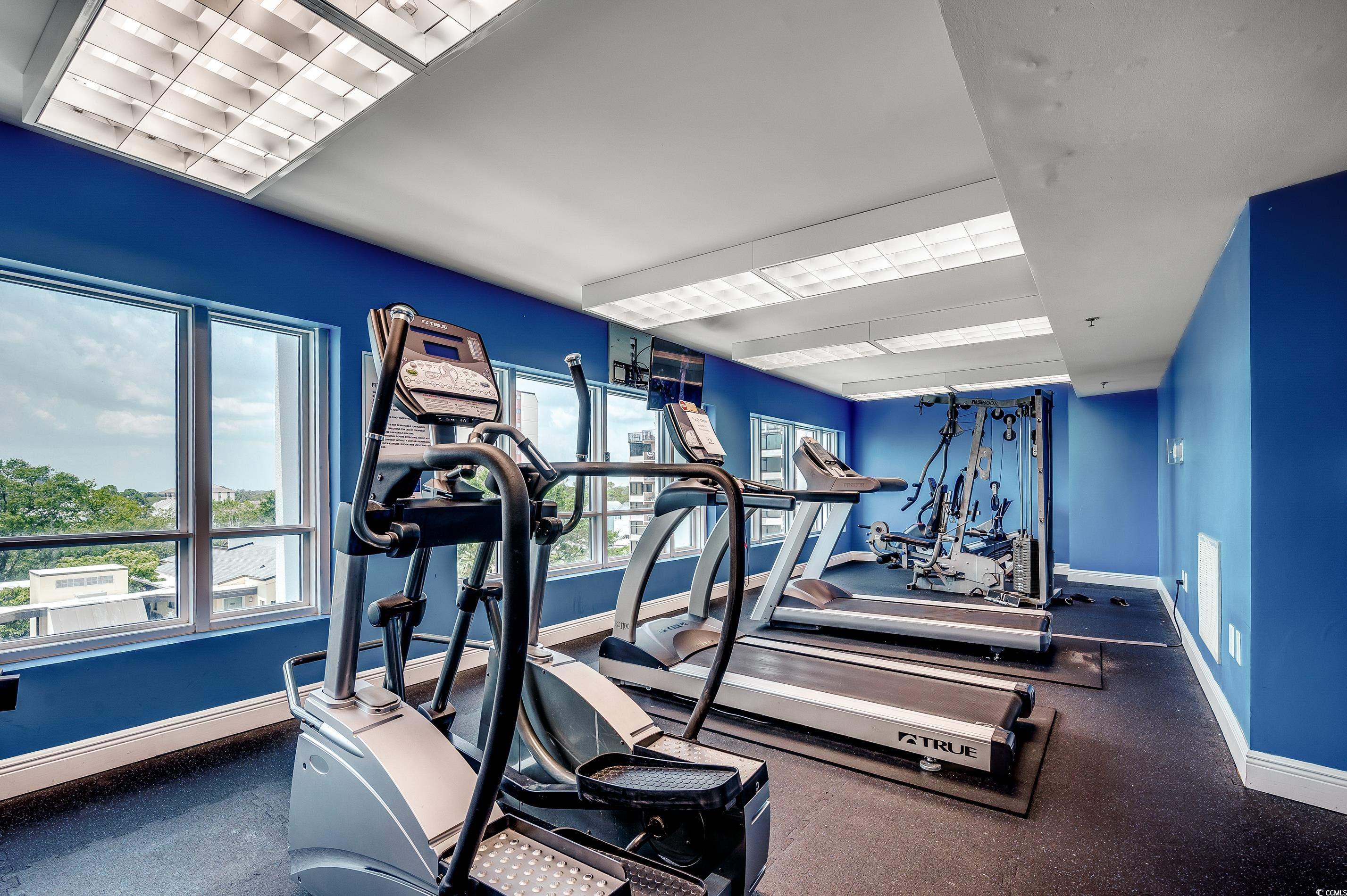 Large 2-bedroom ocean-view condominium at The Horizon at 77th, featuring the largest 2BR floor plan in the building and 9-foot ceilings—a feature available on only a few floors. The oversized balcony, accessible from both the living room and primary bedroom, offers an excellent ocean view over the treetops of a neighboring residential area. With four levels of parking beneath the residences, the elevation is comparable to being on the 9th floor. Well-suited as a primary residence, second home, or vacation rental. Interior features include granite countertops in the kitchen, stainless steel appliances, stylish furnishings, and high quality laminate flooring throughout the living areas and bedrooms, with tile in the kitchen and baths. Recent updates include a refrigerator and dishwasher, a washer/dryer replaced approximately four years ago, and a new HVAC system installed three years ago. The balcony features decking installed over the concrete surface. A private storage closet is conveniently located next to the entry door in the hallway. The Horizon offers resort-style amenities including enclosed, climate-controlled corridors; a parking garage beneath the building (no crossing the street to access your car); a rooftop sun deck; and a fitness room. Water amenities include indoor and outdoor pools, indoor and outdoor spas, and an outdoor lazy river. Located in an upscale area on the north end of Myrtle Beach, The Horizon is within walking distance of numerous shops and dozens of restaurants. Barefoot Landing, Broadway at the Beach, Restaurant Row, and the Myrtle Beach Boardwalk are all within a 15-minute drive. The HOA fee covers unit electric, water and sewer, cable TV, internet, phone, building insurance, exterior maintenance, and reserves. All information is deemed correct, but it is the responsibility of the buyer and buyer’s agent to verify all information.