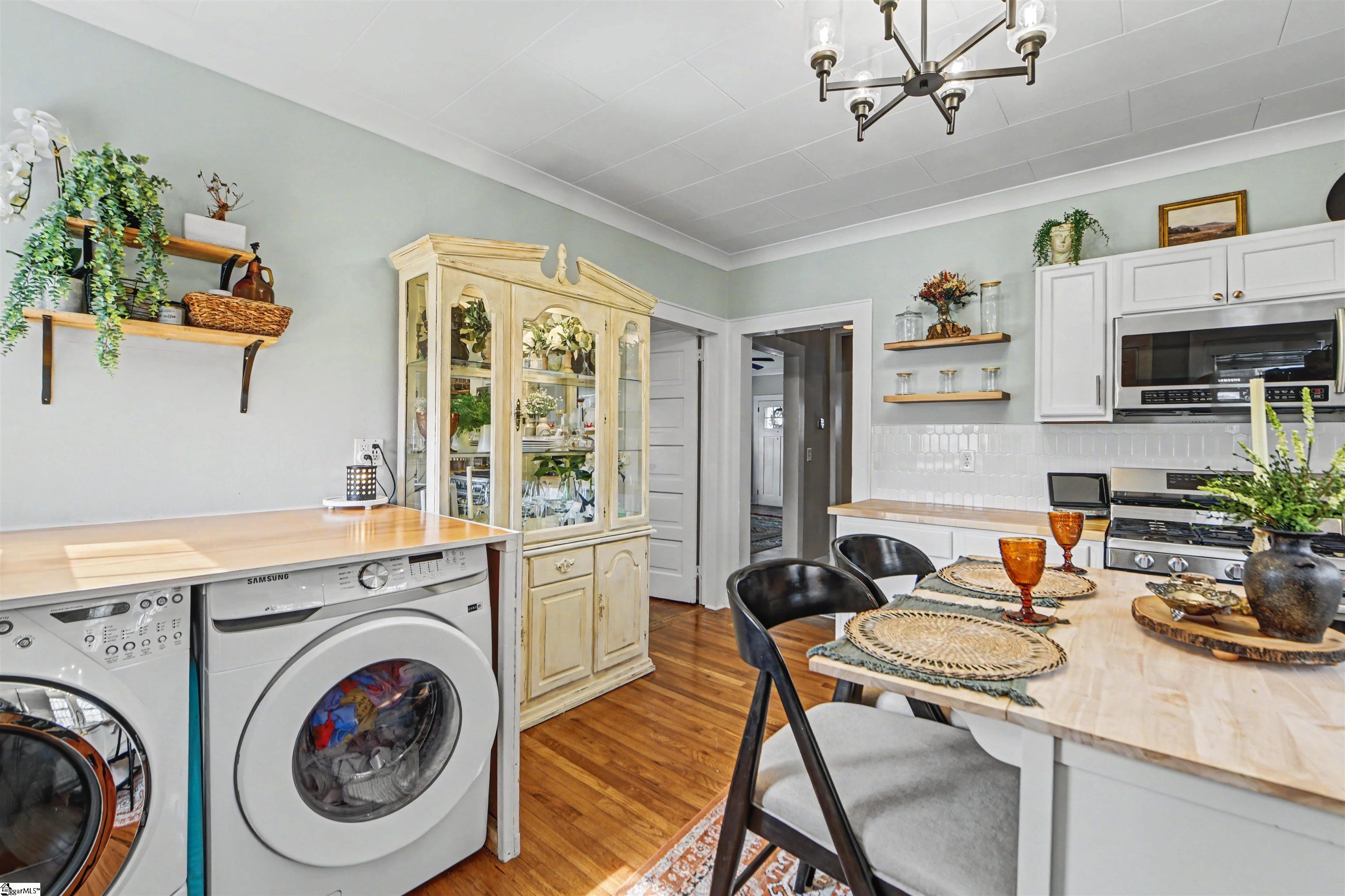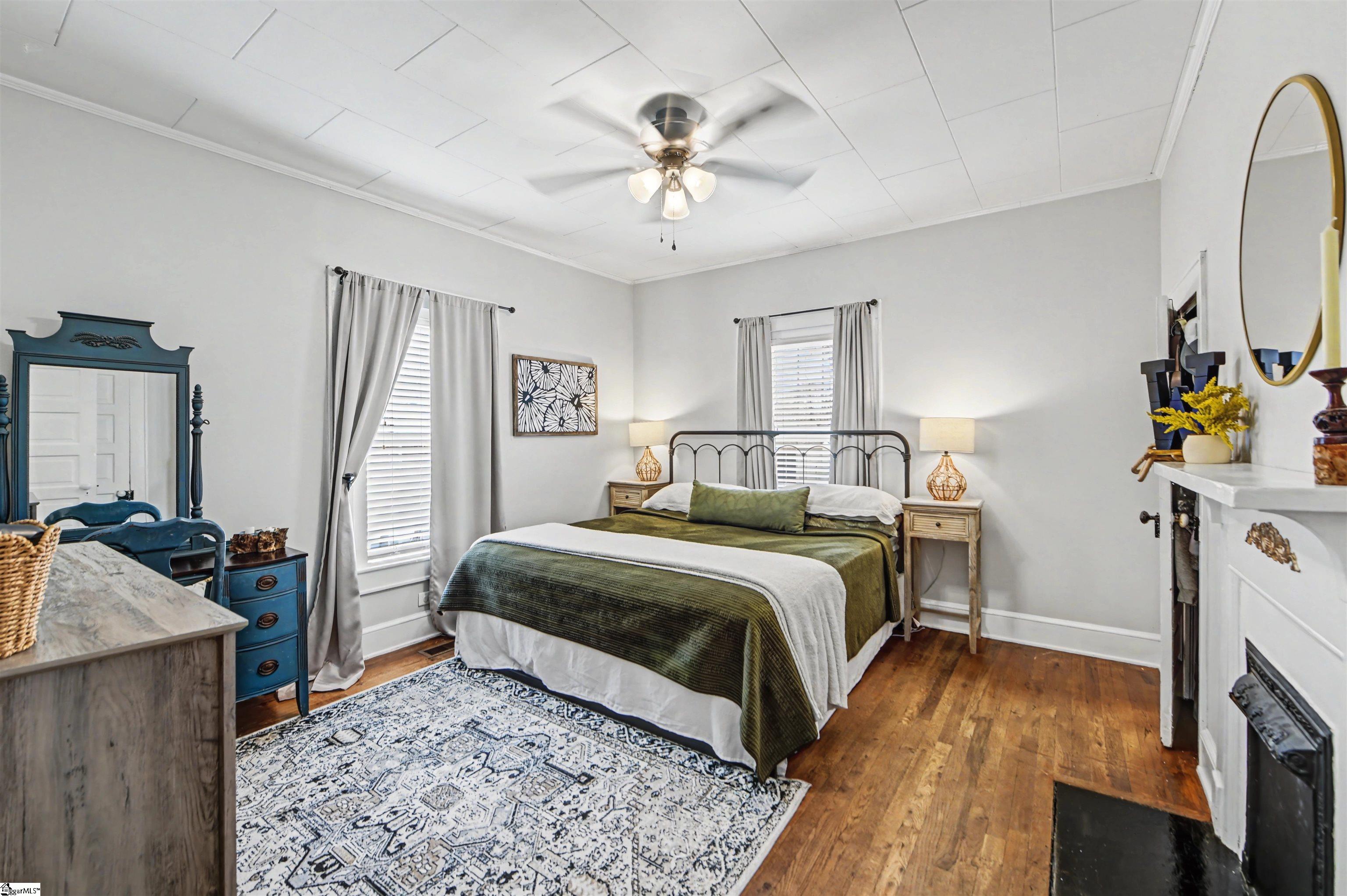 OPEN HOUSE SUNDAY 3/1/26 10AM-1PM! STOP THE CAR!! This Southern beauty is a quick walk down tree lined sidewalks to all the fun in the thriving downtown Simpsonville!! From the rocking chair front porch, step inside to be greeted by beautiful hardwood floors and a gas log fireplace. (note fireplaces convey as-is) The lovely colors and abundance of light in this cheery home create a wonderful place to call home. The beautifully updated kitchen boasts stainless steel appliances including a gas range, butcher block countertops, and updated fixtures. The laundry is conveniently located here as well to ease daily living. The lovely primary bedroom overlooks the fully fenced backyard and is adjacent to the kitchen. A flawless fully updated bathroom with subway tile standup shower and a newer vanity is positioned between the second bedroom. Enjoy the huge upstairs flex space that the owners have finished out that can be another bedroom (minus closet) or great hobby/office/relaxation space! Outside you will cherish the flat, fenced yard with storage unit and a separate she-shed/man cave for additional fun PLUS the extended gated driveway with extra pad! This sweet bungalow is your turnkey opportunity to live in one of the hottest areas next to downtown Simpsonville and be less than a mile from access to I-385 into downtown Greenville! DO NOT DELAY!!!