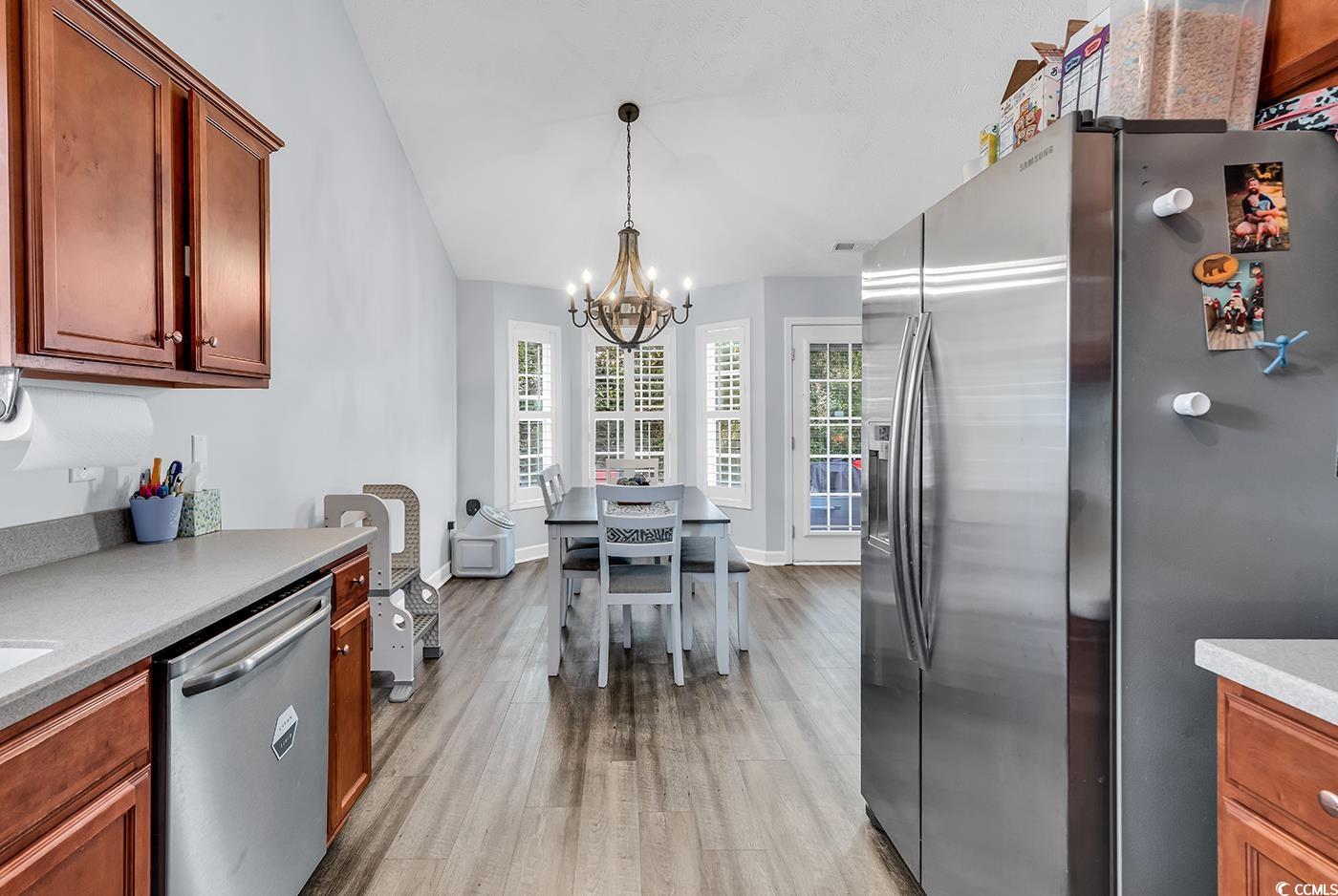 Welcome to this beautiful home located in the vibrant city of Conway, South Carolina! Perfectly situated just minutes from downtown Conway, you’ll enjoy fantastic dining, shopping, and the scenic Waccamaw River and Riverwalk, making this location ideal for both leisure and convenience. This charming residence features a beautiful open living room with a gas fireplace, a spacious kitchen with solid surface counter tops and a large primary bedroom suite. Enjoy cozy evenings in the one of the larger lots in the neighborhood. Walk to the beautiful Waccamaw River from the private walkway. Enjoy an outdoor fireplace by the community pool center or relax in the pool.