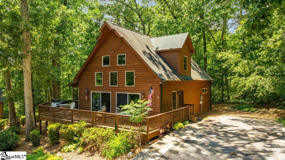 Spectacular Lake Keowee Living at it's best. Gorgeous views of Lake Keowee this beautiful retreat has it's own private 25x10 DEEDED BOAT SLIP within WALKING DISTANCE for close access to enjoy the Best Lake Keowee has to offer. This cozy cabin features 3 bedrooms and 2.5 bathrooms making it ideal for family gatherings or to use for guest. An Open Vaulted ceiling greets you as you enter into the great room with a showcase of windows to see all nature has to offer, along with a gas log stone fireplace. There's a special rustic charm that comes with owning your own cabin including Knotty Pinewalls and impressive cathedral ceilings. The updated stainless steel kitchen includes stainless appliances, granite countertops, and lots of cabinet space. There's also extra storage space throughout the home with large closets. The primary bedroom has a custom oversized walk in tile shower and has a large spacious closet. Step outside to enjoy the wonderful screened porch and decking perfect for entertaining and cookouts. With easy access to the community dock and boat ramp, with your own deeded slip just a short walk from home.