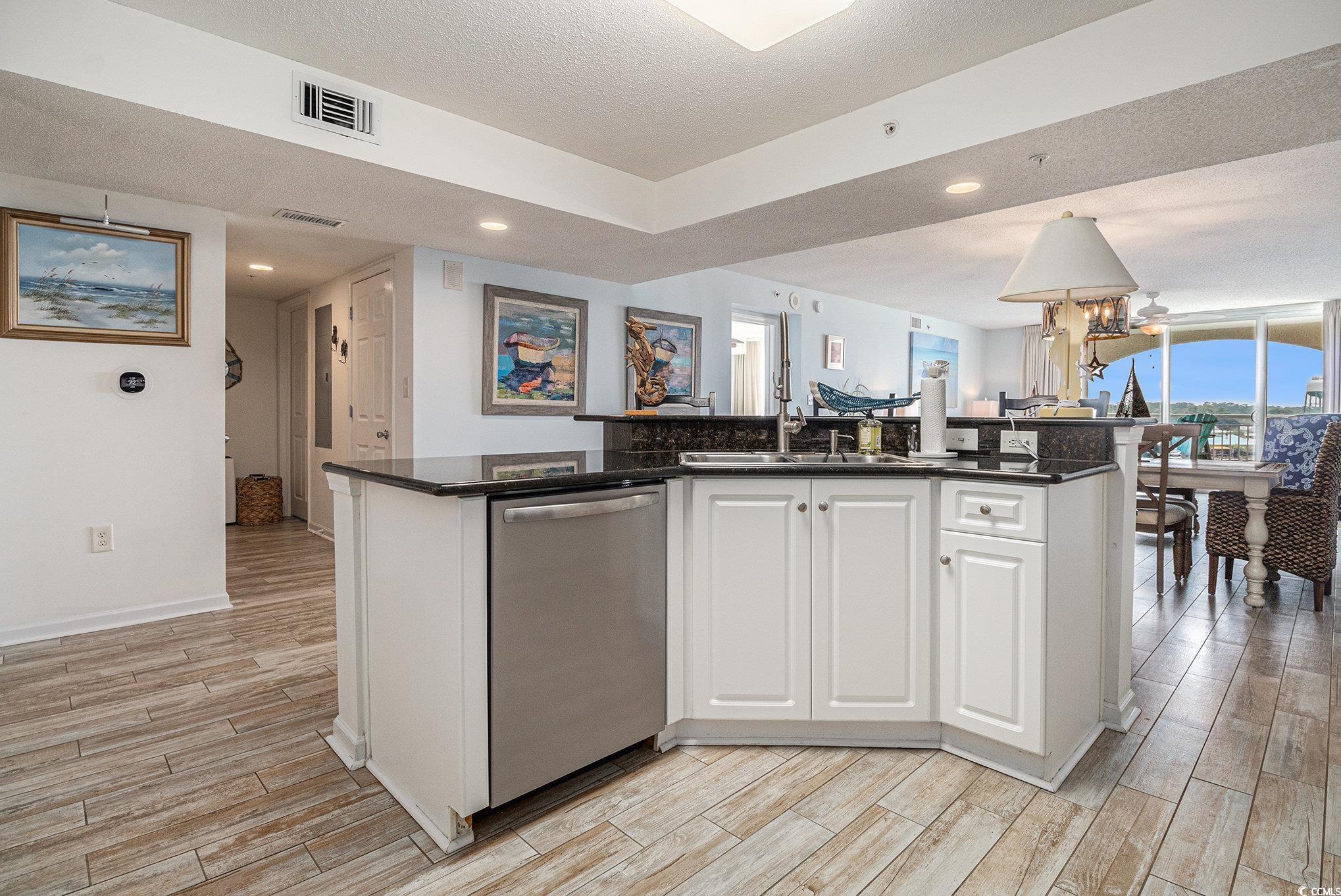 Experience breathtaking Intracoastal waterfront views from this stunning 3-bedroom, 3-bathroom condo perched on the 6th floor of Yacht Club Villas in the prestigious Barefoot Resort. This meticulously maintained residence has been recently upgraded, offering a perfect blend of luxury and comfort. High-end LVP flooring flows seamlessly through the main living areas, while plush new carpeting enhances the warmth and comfort of each bedroom. The open-concept kitchen is a chef's dream, featuring stainless steel appliances, ample cabinetry, and a spacious island ideal for food prep and casual dining. Light floods the expansive living and dining area, creating a bright, airy atmosphere perfect for relaxing or entertaining. Step into the primary suite, where you'll find direct access to the private balcony, a large en-suite bathroom, and generous closet space. Each of the two additional bedrooms are generously sized and includes its own private full bathroom, making this layout ideal for guests or family. The large balcony offers panoramic water views and is the perfect spot for morning coffee or evening sunsets. Whether you're looking for a full-time residence, vacation getaway, or investment property, this condo checks every box. Barefoot Resort is known for its exceptional amenities, including championship golf courses, pools, a marina, and more. You're just minutes from world-class shopping, fine dining, entertainment venues, and the area's beautiful beaches. Enjoy maintenance-free living with all the upscale features you desire. The building is equipped with elevators and offers secure access for added peace of mind. Yacht Club Villas is one of the most sought-after communities in North Myrtle Beach. Don't miss this rare opportunity to own a slice of coastal paradise with unmatched views. Schedule your private showing today!
