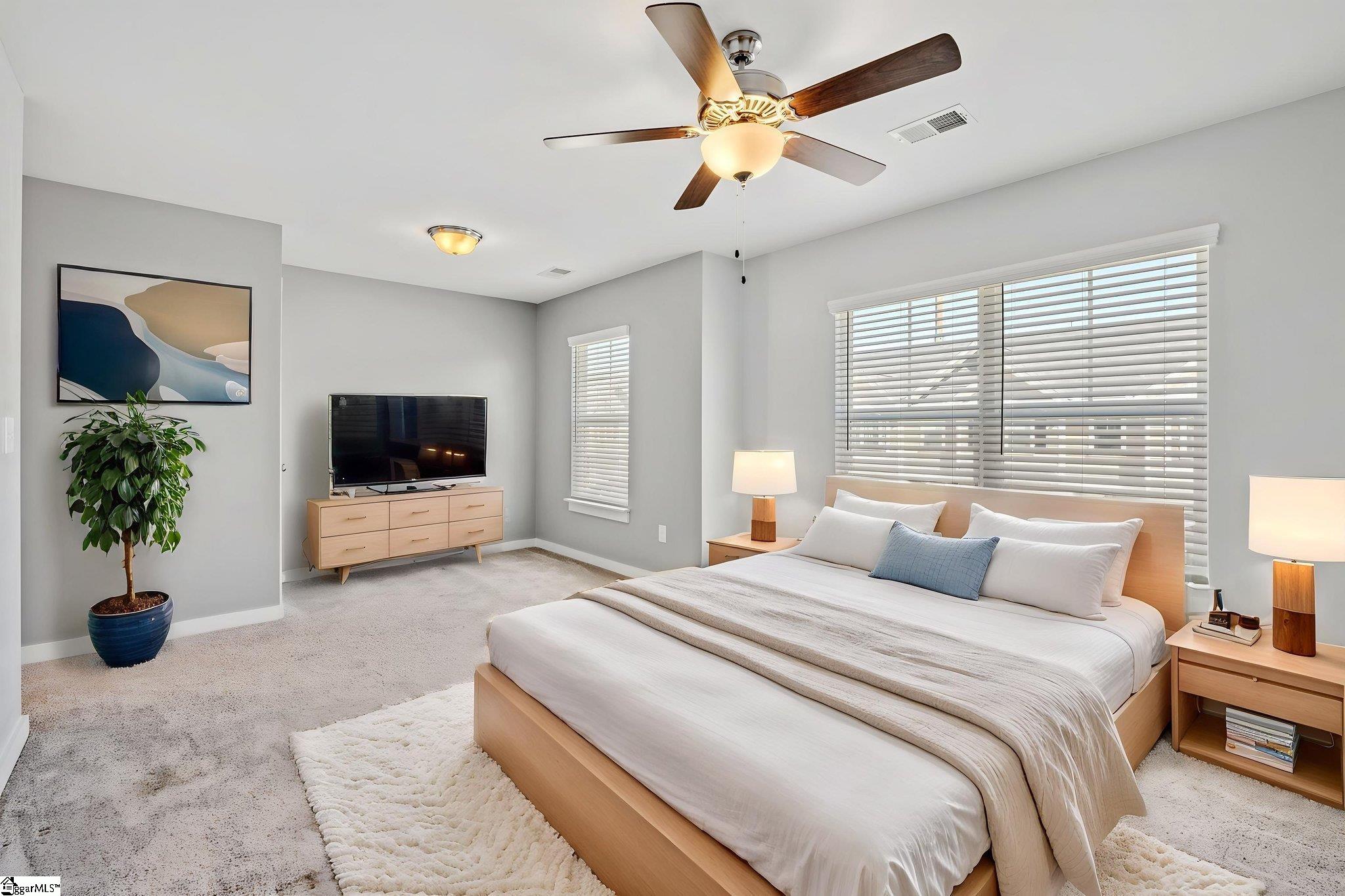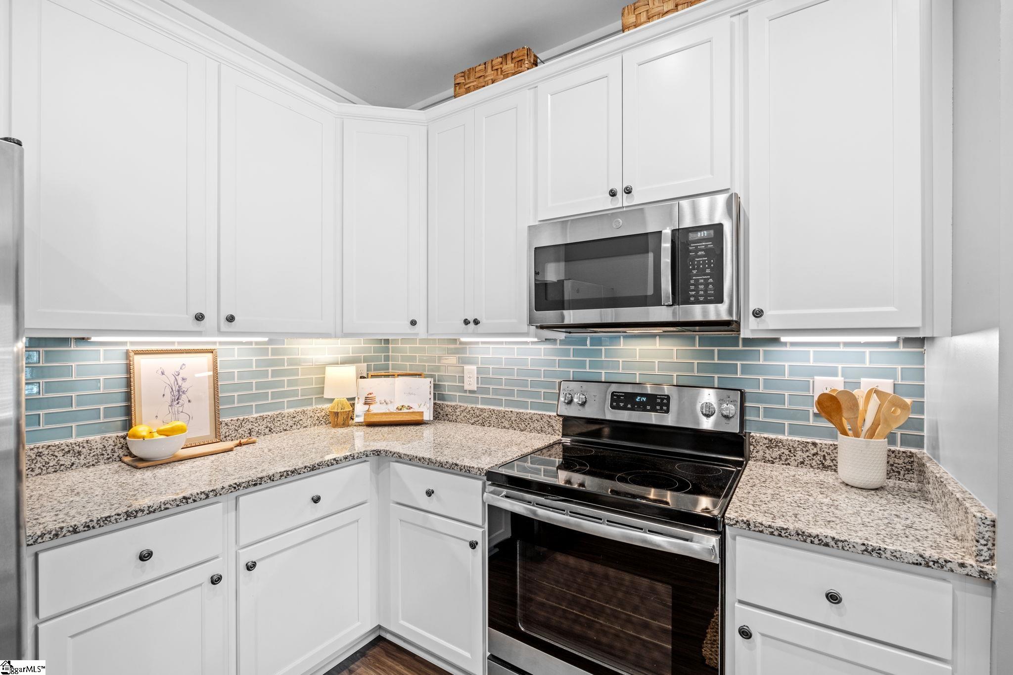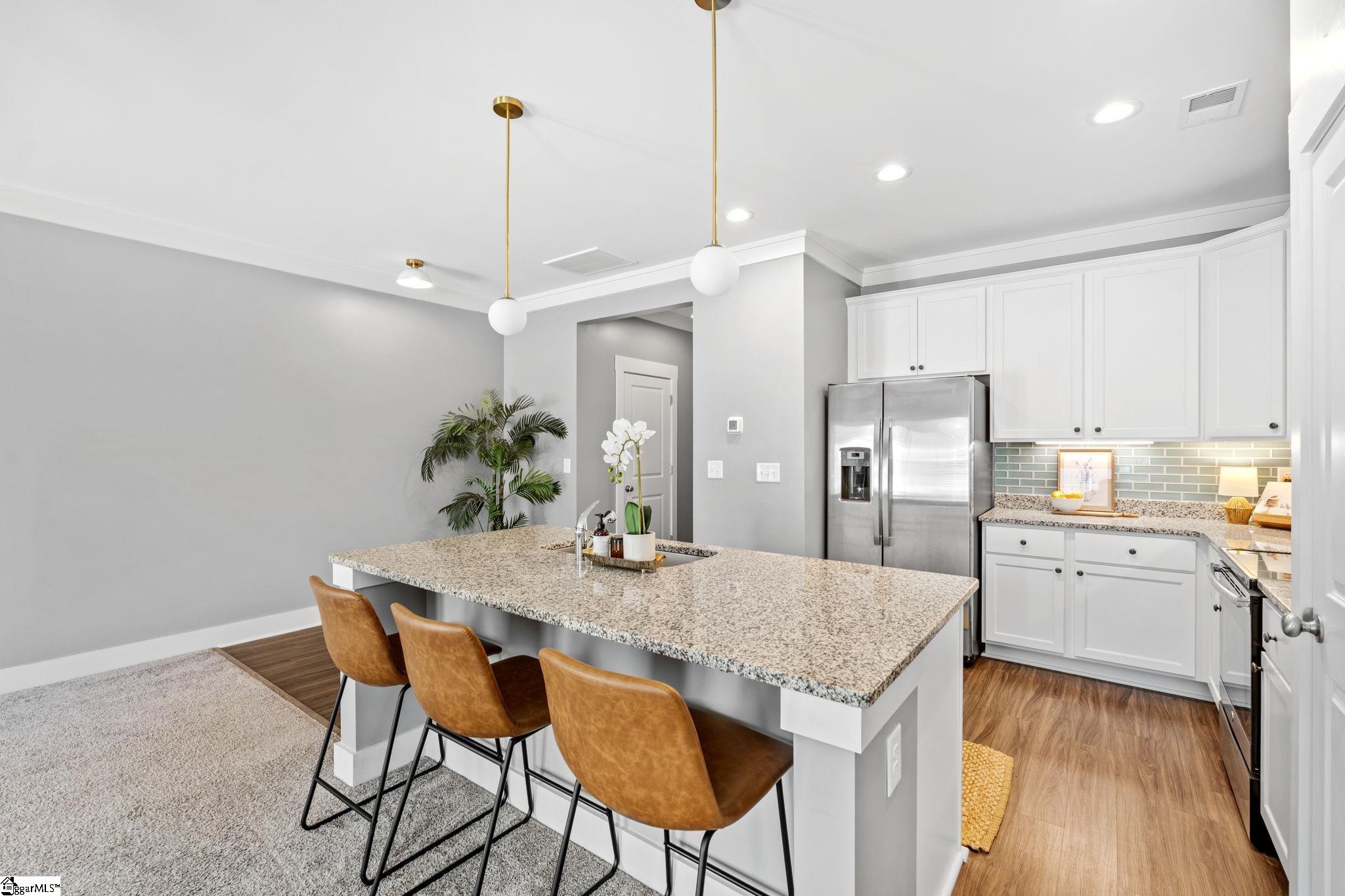 *LUXURY Living on the EASTSIDE | Near BOTANY WOODS* TOP RATED Schools. Better than new. Immediate move in. (no construction delays, no upgrade packages needed). Almost 1600 sq ft- Prime location in the center of Greenville: 10 min to downtown Greenville, Haywood Mall, 385, and Wade Hampton Blvd. Experience high-end style meets "lock-and-leave" convenience. This stunning OPEN-CONCEPT townhome impresses with 9' ceilings, DESIGNER lighting, and a gourmet kitchen anchored by a massive social ISLAND. The chef’s workspace features GRANITE countertops, under cabinet lighting, spacious PANTRY, glass tile backsplash, and premium stainless appliances (all included!). Retreat to a primary suite designed for WELLNESS, boasting a private sitting area, a SPA-GARDEN tub, separate shower and a generous WALK-IN closet. French doors lead to an open air PATIO with professionally landscaped elevation. Rare, private GARAGE with a DOUBLE driveway and 32 sqft. of bonus overhead STORAGE. 2" blinds and curtain rods convey (A HUGE VALUE). HOA covers exterior maintenance, neighborhood landscaping, trash service, sidewalks, mailboxes, well lit common areas for added security, and exterior pest.