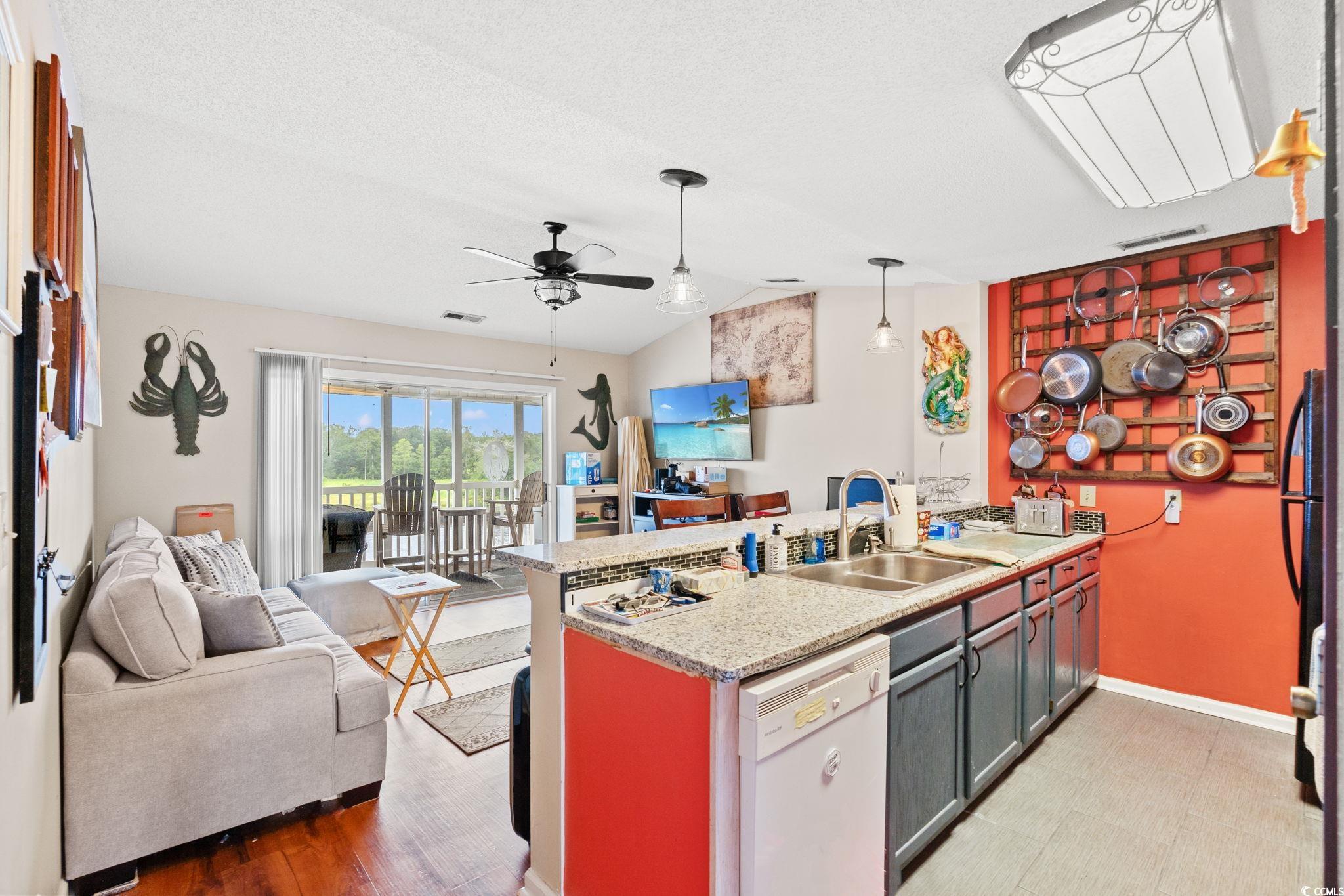Welcome to Waterway Landing—your chance to own a piece of paradise right on the Intracoastal Waterway in the heart of North Myrtle Beach! This beautifully maintained 1-bedroom, 1-bath condo is tucked inside a gated community that offers both privacy and convenience, just steps from the shops, restaurants, and attractions of downtown North Myrtle Beach and only minutes from the sandy shoreline. Step inside to a bright and inviting space where vaulted ceilings immediately create an airy, open feel. The floor plan is designed with both comfort and functionality in mind—the kitchen overlooks the spacious main living area, making entertaining easy and enjoyable. With plenty of cabinetry, there’s no shortage of storage. The living room flows seamlessly to the screened-in balcony, where you’ll love relaxing while watching boats glide by on the waterway or enjoying the cool coastal breeze. The bedroom is generously sized, offering room for a king or queen bed, a large closet for storage, and direct access to the full bath. The bathroom features a tub/shower combo and an updated vanity for a touch of modern style. Every corner of this condo has been well cared for and maintained, giving you peace of mind and a truly move-in ready property. Beyond the condo itself, Waterway Landing offers fantastic community amenities. Take a dip in the sparkling community pool, stroll along the beautifully kept grounds, or simply enjoy the sense of security that comes with a gated neighborhood. With low HOA dues that cover essentials and amenities, you can focus more on living and less on upkeep. And let’s not forget the location—this is truly prime real estate. Situated right in downtown North Myrtle Beach, you’ll be moments from world-class dining, shopping, golf courses, and entertainment venues. Best of all, the beach is just a short drive away, making it easy to spend your mornings on the Intracoastal and your afternoons by the ocean. Condos like this rarely come available in Waterway Landing—especially with these stunning views, updates, and location. Don’t miss your chance to enjoy the perfect blend of waterfront living and coastal convenience. Schedule your private showing today!