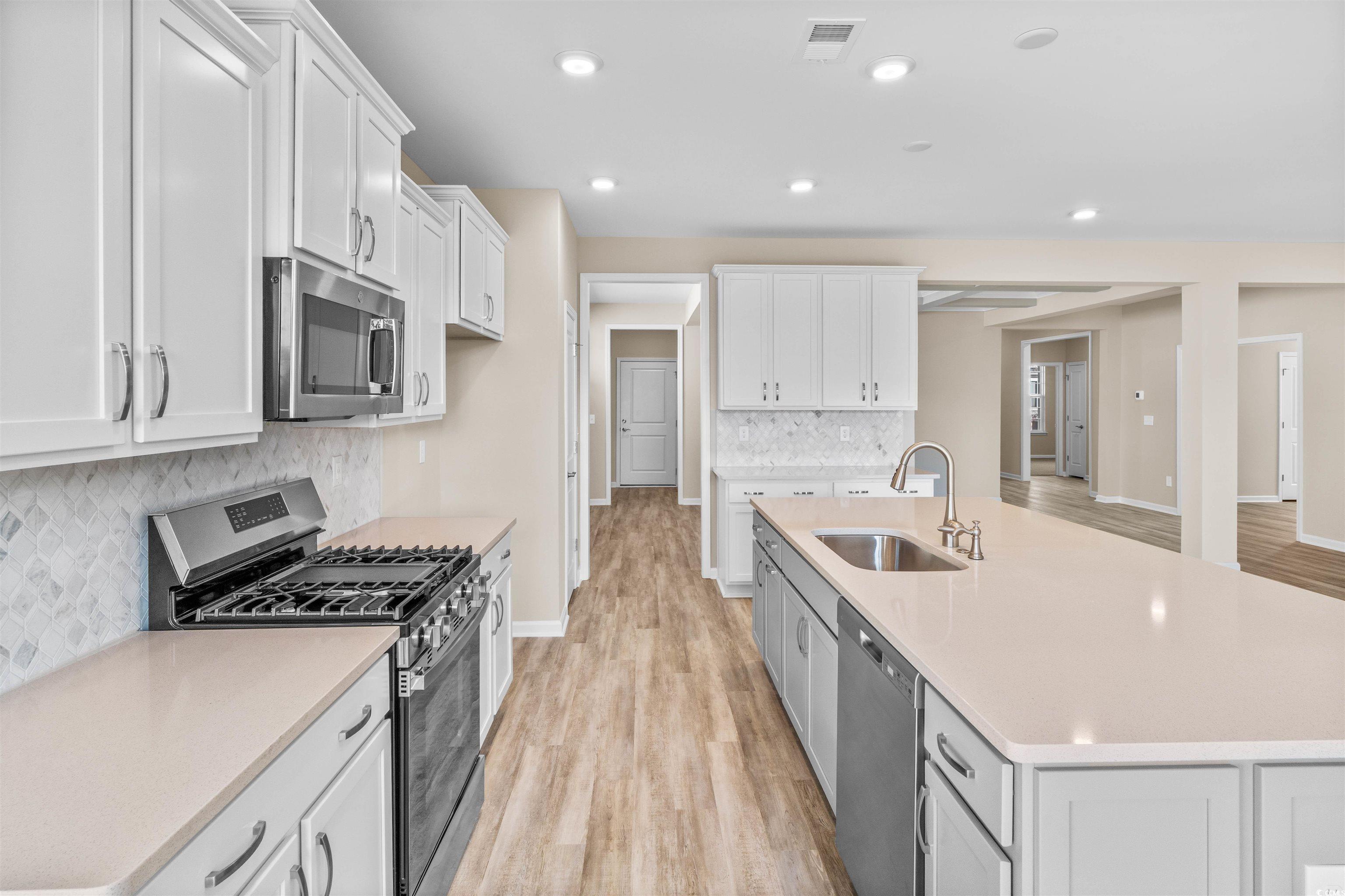 Stroll into the Boardwalk with nearly 2189 heated square feet of first-floor coastal-inspired features. Upon entering from a large covered front porch, discover a foyer with an optional tray ceiling leading to a spacious drop zone area. Two bedrooms with large closets and a full bath are located on the left with an open dining area showcasing a intricate coffer ceiling. A large, gourmet island in the kitchen offers additional seating and a surplus of counter space for large dinner parties or cooking large meals in this gorgeous kitchen. Enjoy smaller meals with an extended breakfast area looking out onto the beautiful view of your backyard. From the great room, breeze through sliding glass doors onto a large covered porch. The Boardwalk’s owner's suite offers an enormous walk-in closet accompanied by a beautiful master bath with a deluxe shower with seated bench, tiled wall and hinged shower door. Make the Boardwalk the model you call “home” today!