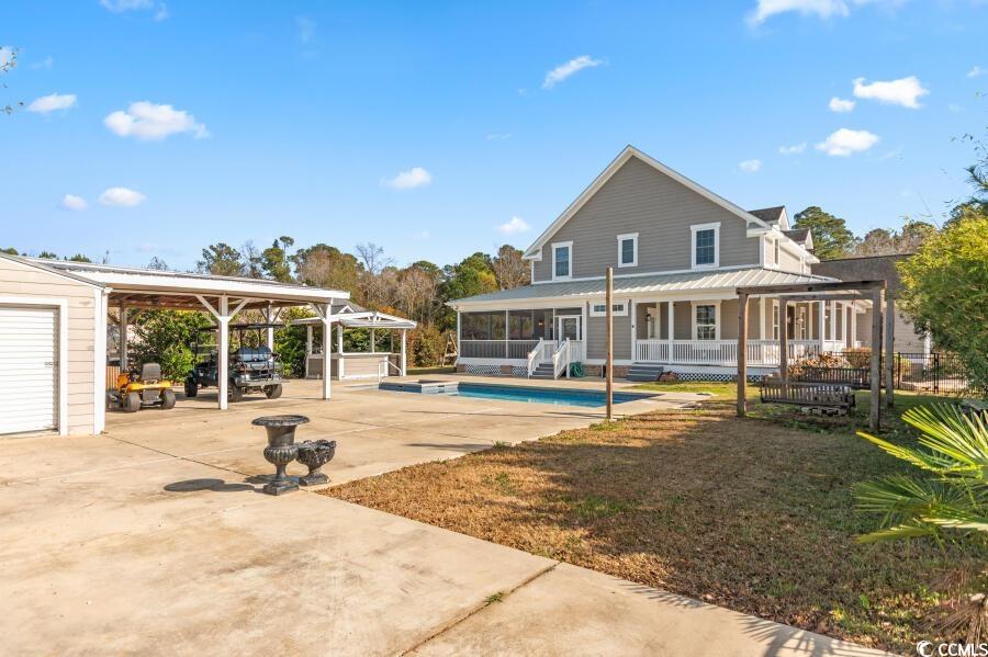 Southern charm meets resort living on this private half-acre estate. 3,500 SF of heated space plus 900 SF of covered porches — including a wrap-around front porch spanning three sides. Not a flip, not a rental: meticulously maintained by original owner since 2016 with in upgrades. BACKYARD RESORT: Heated saltwater pool • 6-person hot tub • Covered outdoor kitchen with pergola • Screened porch • Firepit • Fully fenced with 4’ metal with professional landscaping MAIN-FLOOR LIVING: Primary suite with private deck • Dedicated office with French doors • Open kitchen/living with 9 ft ceilings • Chef's kitchen: granite island, double ovens, 6-burner gas range, walk-in pantry • Game room UPSTAIRS: 6 spacious bedrooms • Multiple full baths BUILT TO LAST: Standing-seam metal roof • 4x6 construction • Central vacuum • Dual 80-gallon water heaters • Security camera pre-wire • Whole-home professional lighting LOCATION: St. James Schools (highly rated) • 10 min beach • 10 min shopping • 20 min MYR airport • NO RESTRICTIONS — park your boat, RV, work Clear title, move-in ready • Can close before year-end