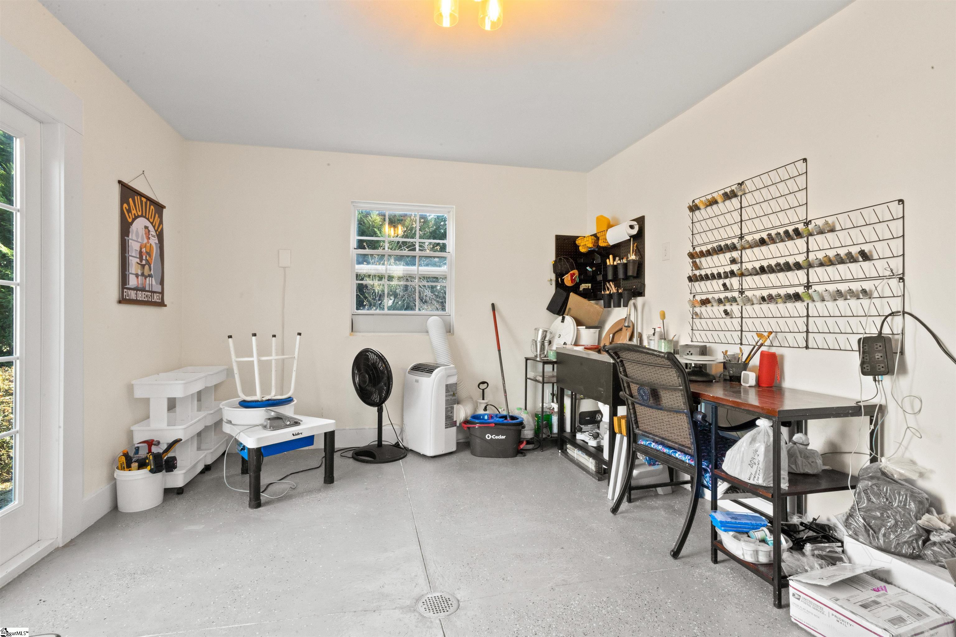 Custom-built Craftsman home on approximately 0.69 acres in the highly regarded Stoneledges community, offering a rare combination of thoughtful updates, outdoor living, and neighborhood amenities. This 4-bedroom, 2.5-bath home features a primary suite on the main level and flexible living space upstairs, including a loft, bonus room, and additional bedrooms. A major highlight is the professionally designed and permitted 20’x20’ screened porch with vaulted ceiling, built by Archadeck, creating a true extension of the living space. The porch includes a newly added hot tub with dedicated 50-amp electrical service and disconnect. Outdoor living continues with a side paver patio for grilling, complete with a plumbed gas line, gravel walkways, rebuilt koi pond, and extensive native landscaping that blends beautifully with the wooded backdrop. The detached, stick-built workshop has been fully remodeled with insulation, drywall, lighting, and a dedicated 50-amp circuit, making it ideal as a studio, hobby space, or workshop. Inside, the lower level flooring has been replaced with luxury vinyl plank, bathrooms have been refreshed with updated fixtures, taller comfort-height toilets with pressure-assist flush, and a new powder room sink. Most of the interior has been freshly repainted, and exterior lighting has been updated throughout, including the front porch, garage, side entry, and screened porch, which also features new fixtures, outlets, and a ceiling fan. Stoneledges is a single-entrance community centered around Jordan Pond, offering a neighborhood lake, docks, and walking trails. Conveniently located on the north side of Taylors, with easy access to Greenville, Greer, Travelers Rest, and GSP International Airport. A rare opportunity to own a well-maintained home with meaningful upgrades in one of the area’s most scenic communities.