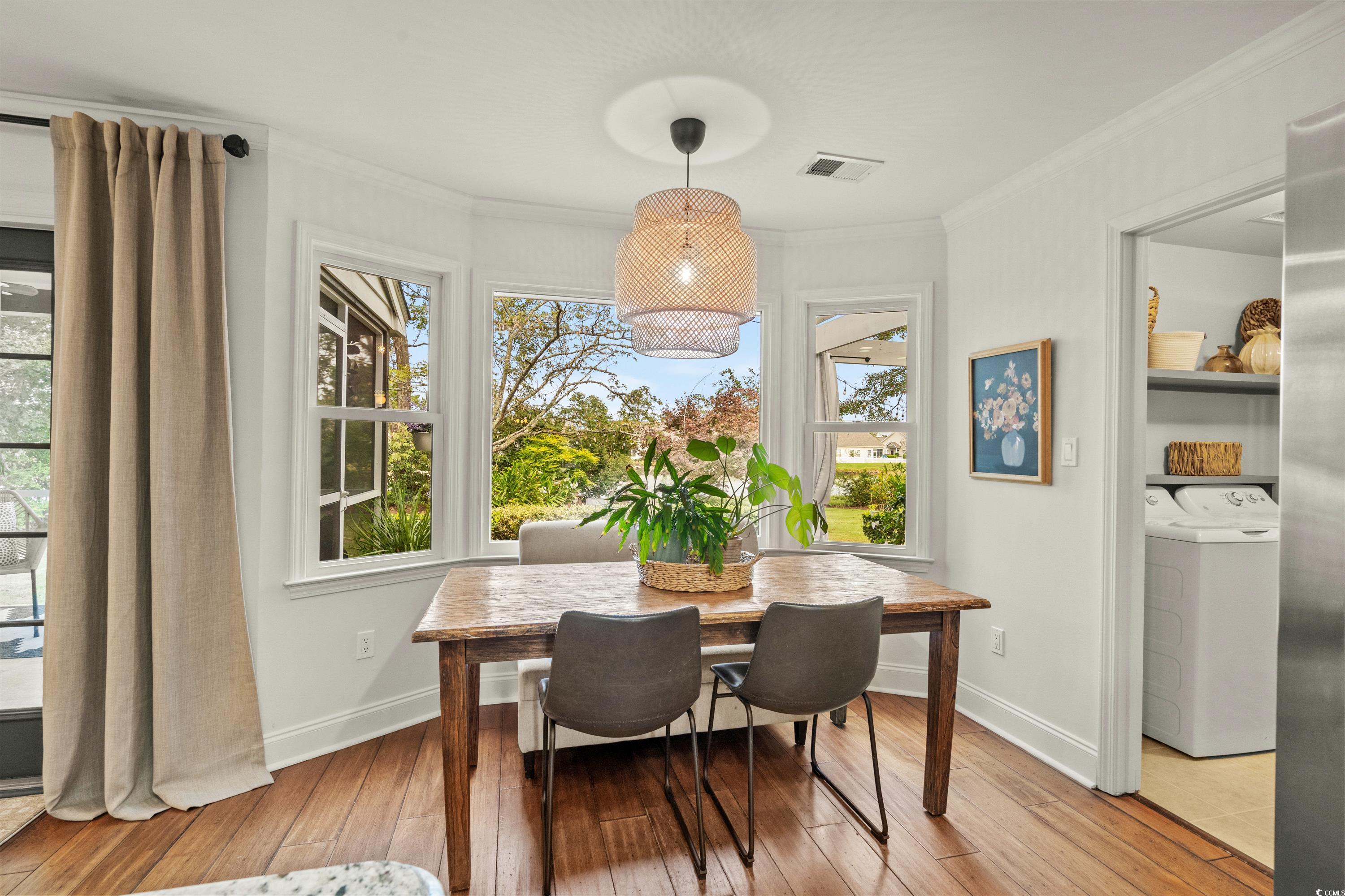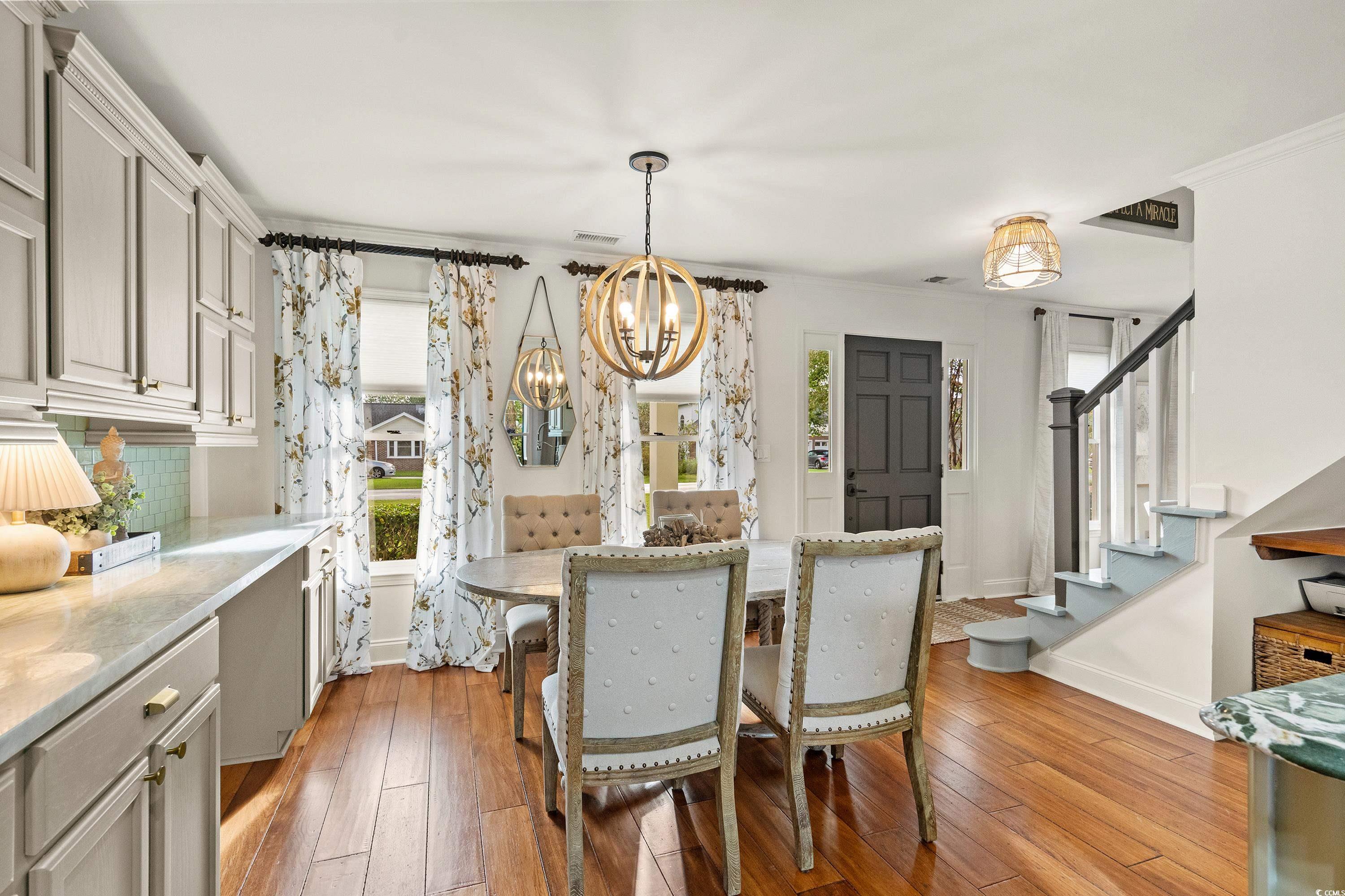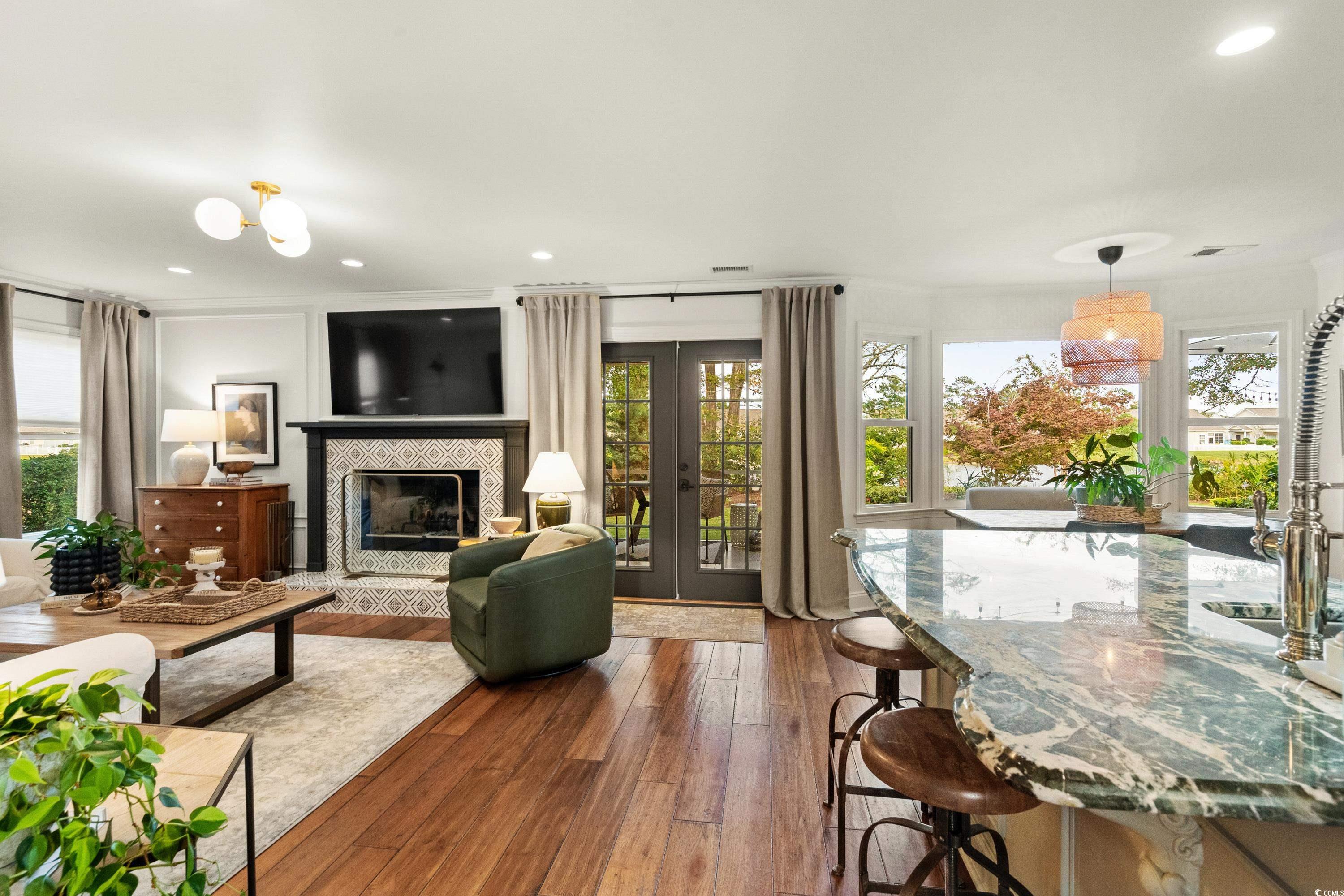 Showstopper: Beautifully Updated Two-Story Home with Water View and Pergola in Deerfield is nestled at the beginning of a serene cul-de-sac with end of road gate to prevent thru traffic Key Features: • Well-Appointed Design: Thoughtfully curated by a professional interior designer, this home features high-end finishes and an elegant aesthetic throughout. Furnishings will be considered at an additional cost, allowing you to enjoy a move-in ready space with style. • Spacious Living Areas: Enter into a bright, open-concept living and dining area featuring wall trim that adds interest and character. Large bay window frames stunning water views, while elegant hardwood floors on the first floor create a warm and inviting atmosphere, complemented by a cozy fireplace recently rebuilt and refinished for the perfect ambiance. • Gourmet Kitchen: The fully updated kitchen boasts exotic granite and quartzite countertops, expertly mixed, alongside stainless steel appliances and ample cabinetry. The large breakfast bar is perfect for casual dining, while a charming table in the bay window offers an inviting spot for morning coffee or family meals. • Luxurious Master Suite: The very large master bedroom features a cozy window seat, providing a perfect nook for relaxation. Enjoy a stunningly updated master bathroom, complete with freshly added beadboard trim, elegant wallpaper, frameless glass doors, and new antiqued gold plumbing fixtures. The spacious walk-in closet and an additional accessories closet offer ample storage. • Second Ensuite: The large second ensuite bedroom is perfect for guests or family members, featuring its own private bathroom for added convenience and comfort. • Stunning Views: One of the bedrooms boasts amazing views of the backyard, allowing you to wake up to serene sights and natural beauty every day. • Large Bedrooms: All bedrooms in the home are generously sized and feature large closets, providing plenty of space for comfort and storage. • Separate Den: A spacious separate den offers versatility for a family room, office, or playroom, perfect for all your needs. • Built-In Office Area: A thoughtfully designed built-in office area under the stairs provides a perfect workspace for managing daily tasks, remote work or homework! • Screened Porch: French doors separate the living room from a charming screened porch, ideal for enjoying your morning coffee or unwinding with a good book while overlooking the backyard. • Outdoor Oasis: Step outside to a large yard adorned with ornamental trees and mulched beds —perfect for entertaining or enjoying quiet evenings. The backyard also features a charming pergola, a paver patio for outdoor gatherings, and a cozy firepit area. • Sturdy and Stylish Exterior: The home features beautiful cedar siding, complemented by Hardie shake accents in the dormers, ensuring both durability and timeless charm. The raised slab foundation adds to the home's resilience and elegance. • Convenient 2-Car Garage: The attached two-car garage boasts painted walls and floors, large storage closets, and built-in shelving, ensuring plenty of room for all your tools and belongings. • Prime Location: Enjoy the convenience of golf cart rides to the beach and proximity to shopping, including a future Trader Joe's. Square footage is approximate and not guaranteed. Buyer is responsible for verification of all information. Listing Agent is Owner.